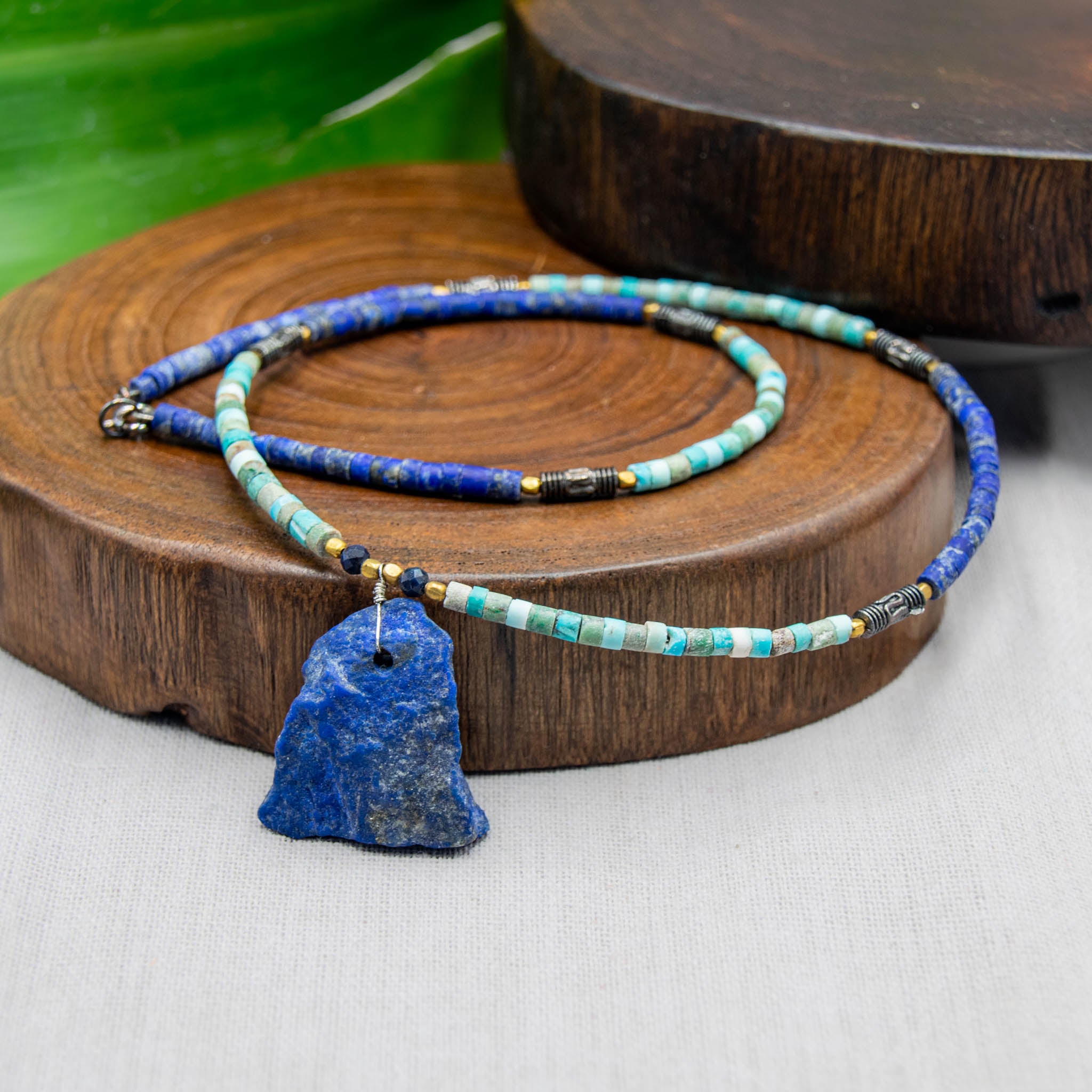 Big Raw Lapis Lazuli Stone Necklace With Beads