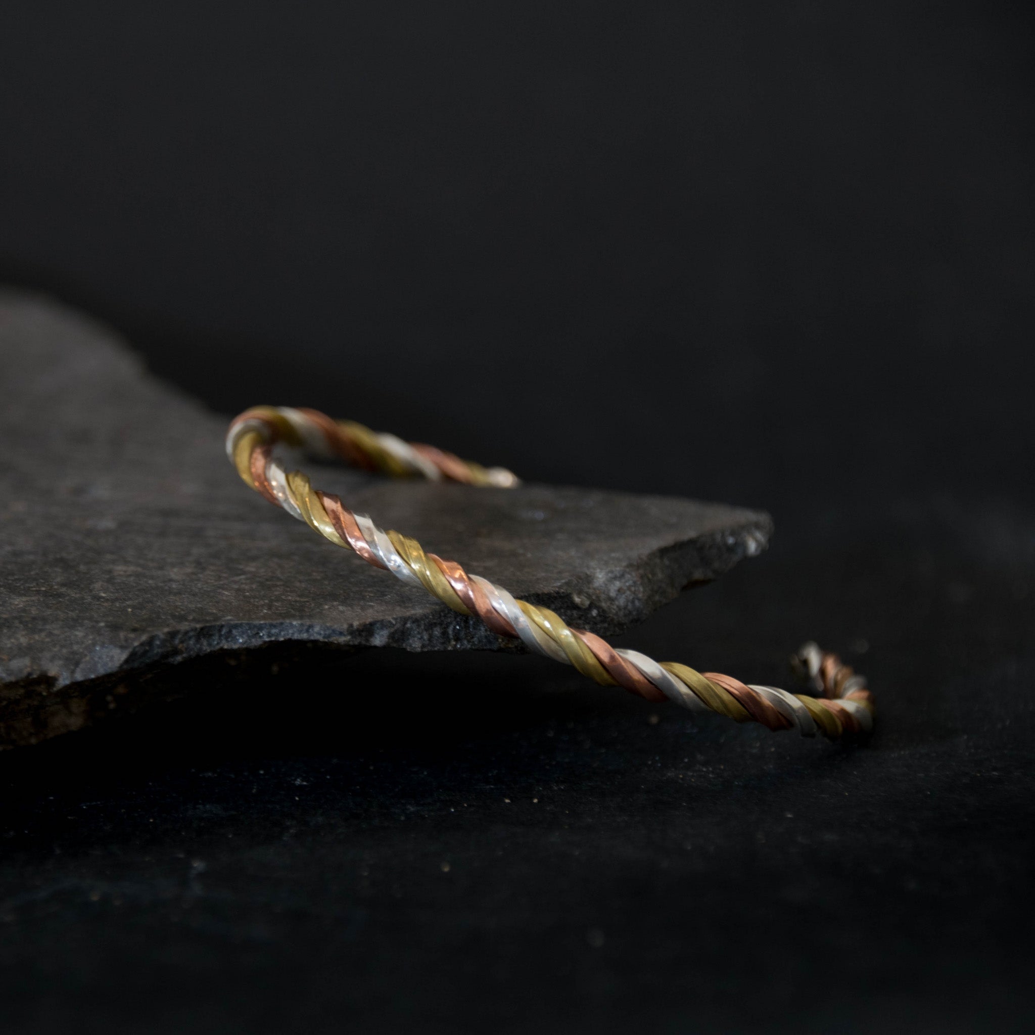 Copper, Silver, Brass Bracelet - 3 Metals Brided Design
