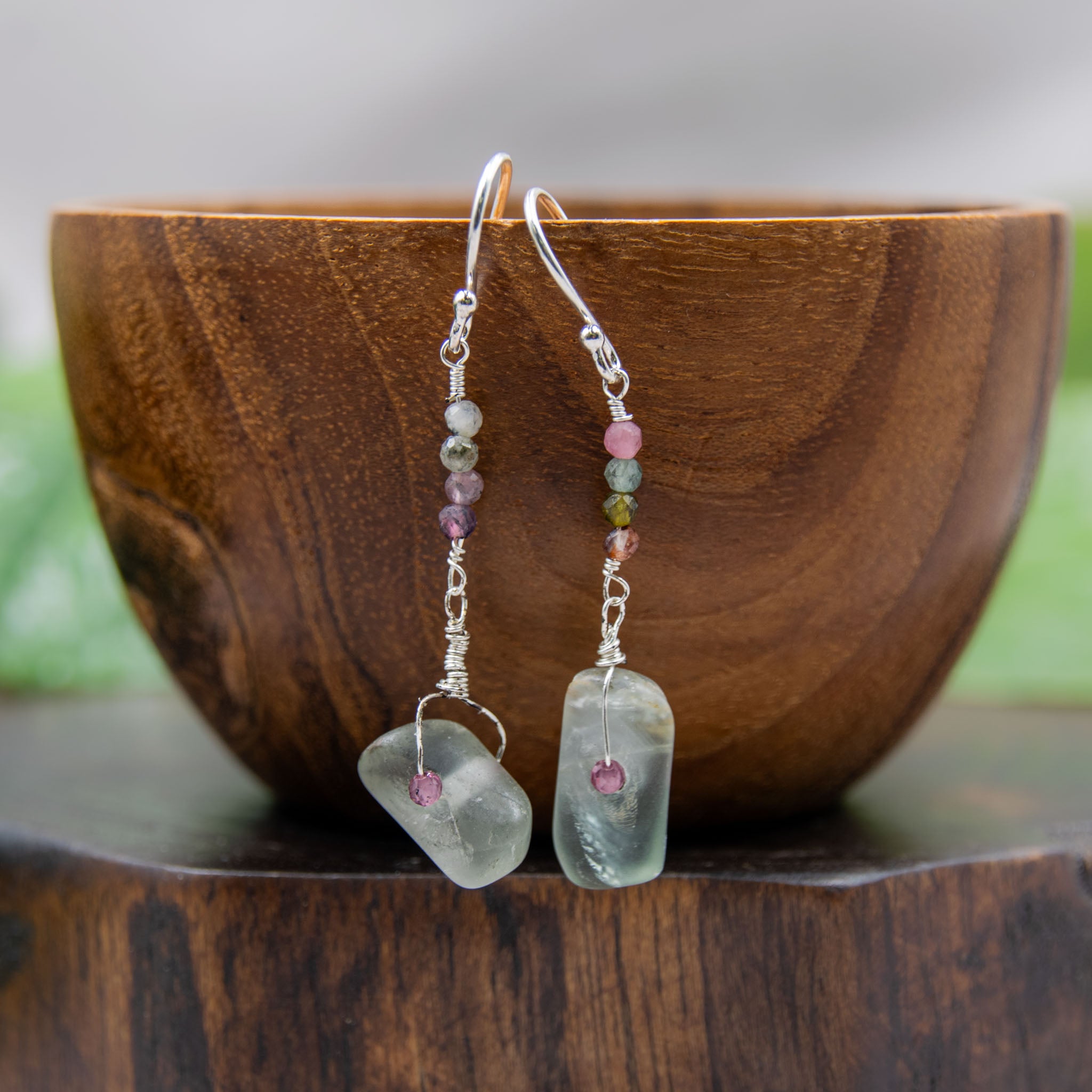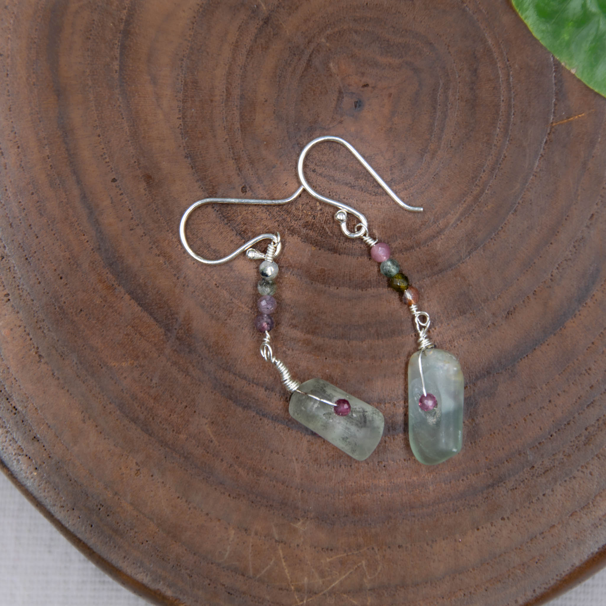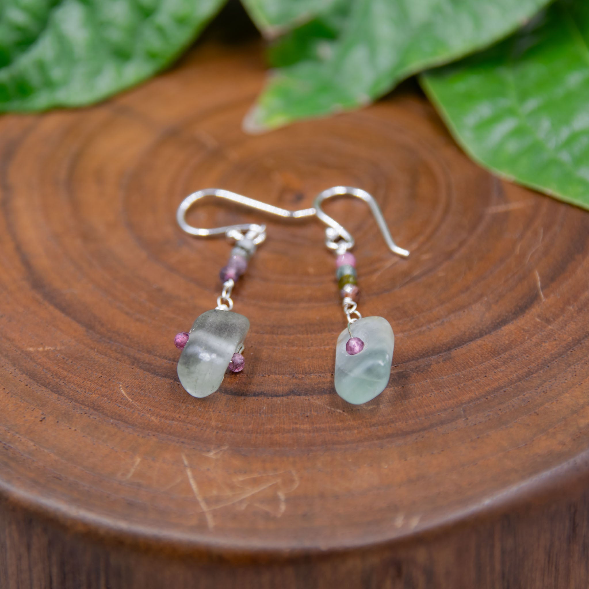 Handcrafted sterling silver earrings featuring authentic Fluorite gemstone beads known for their vibrant colors and natural beauty,