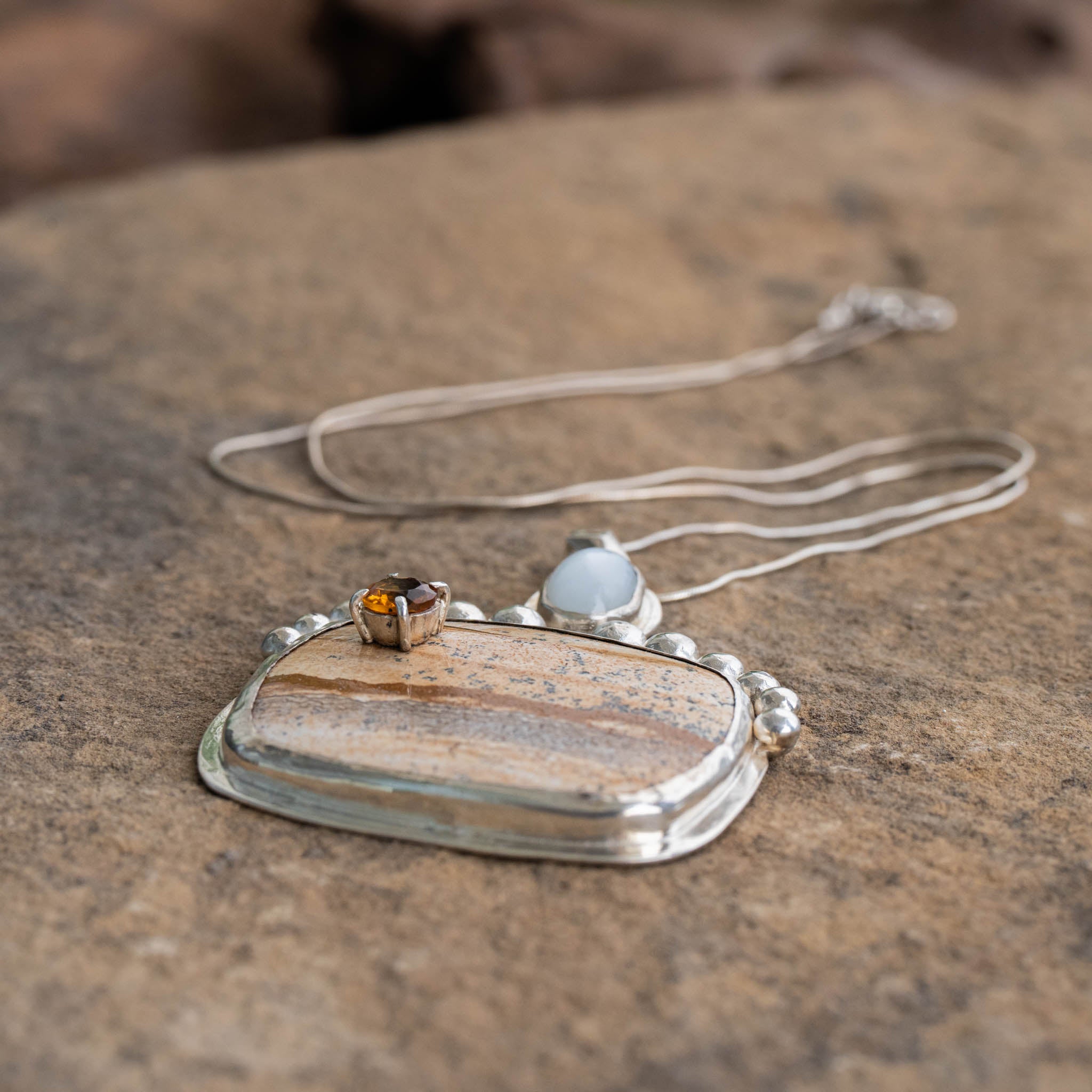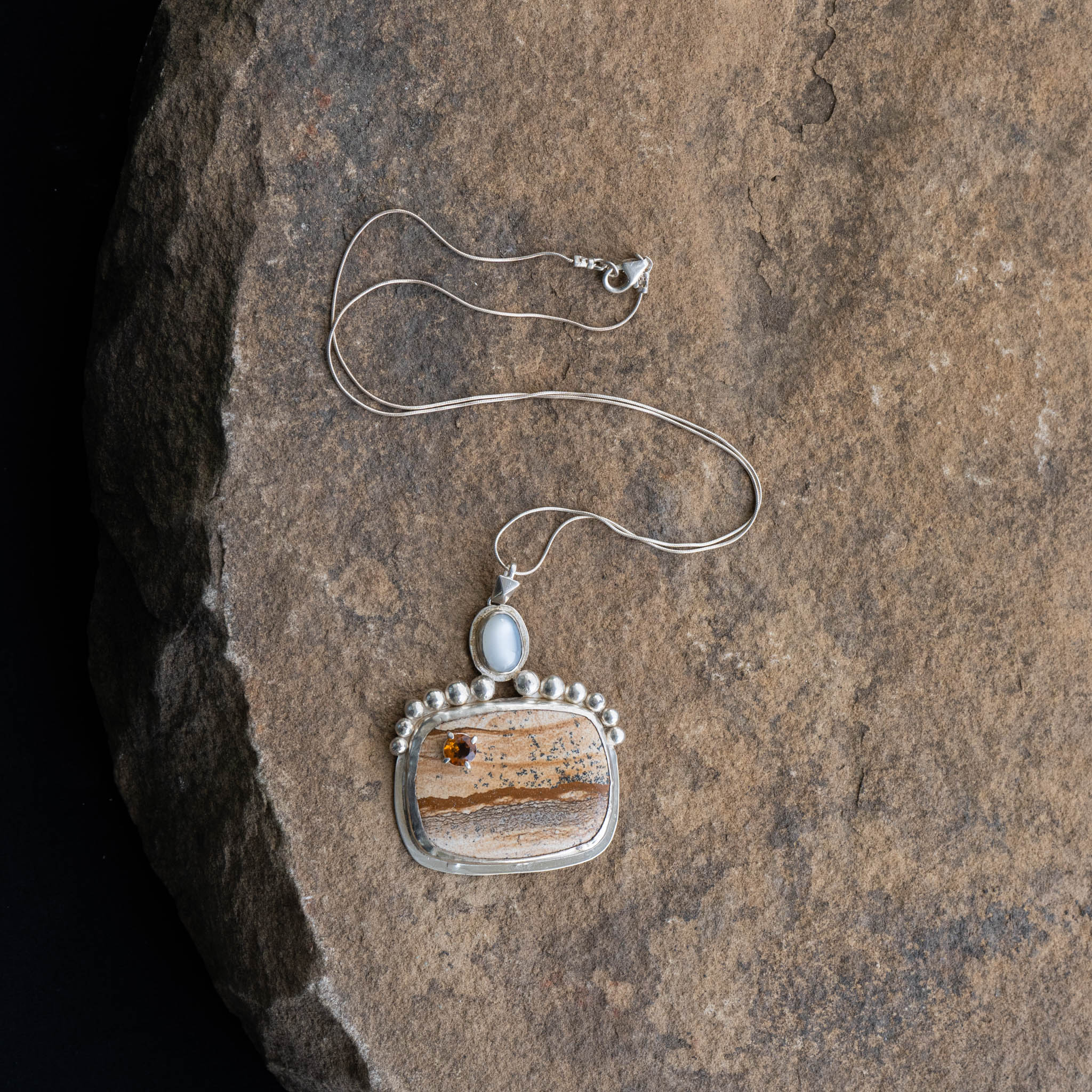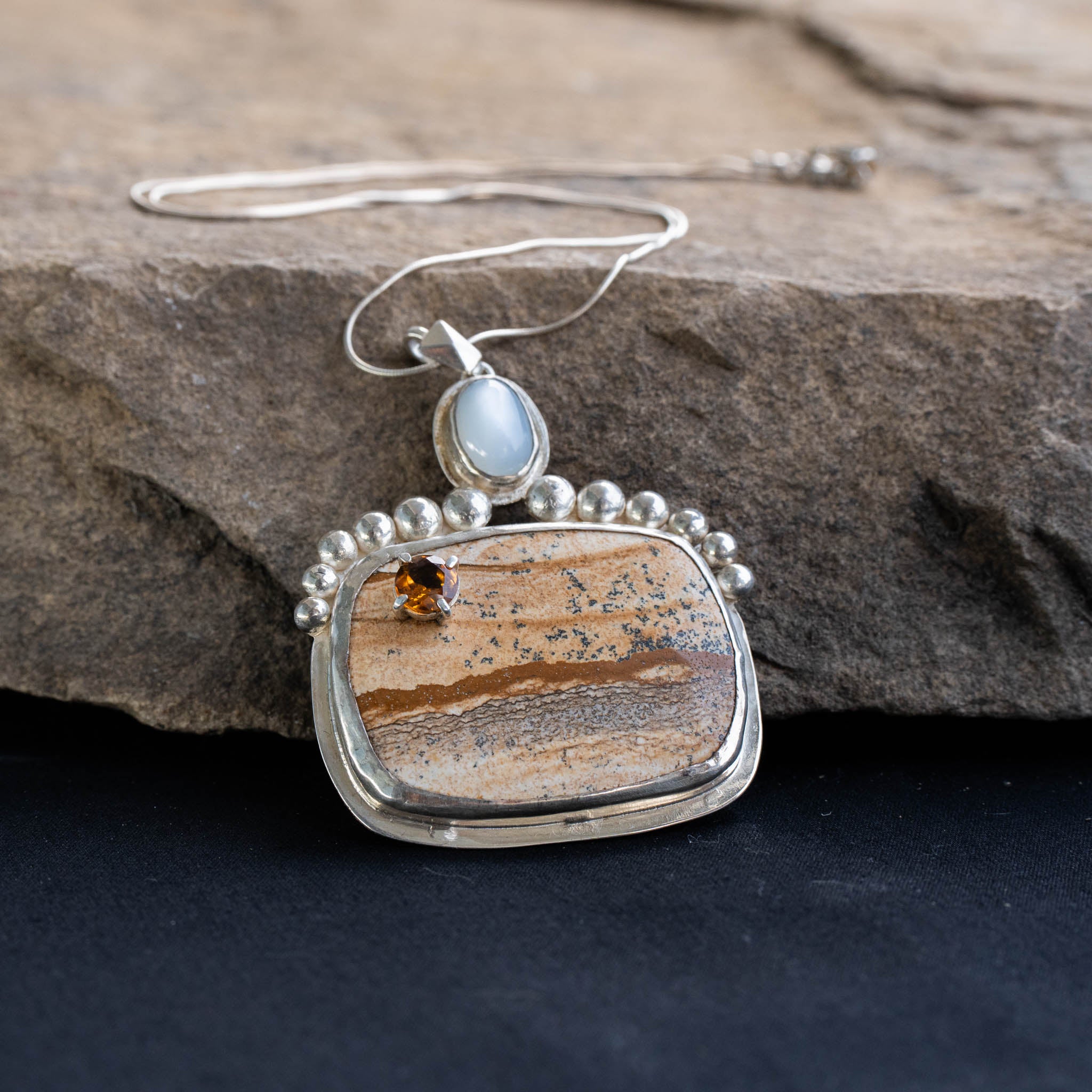 Jasper Picture, Citrine and Moonstone Unique Pendant