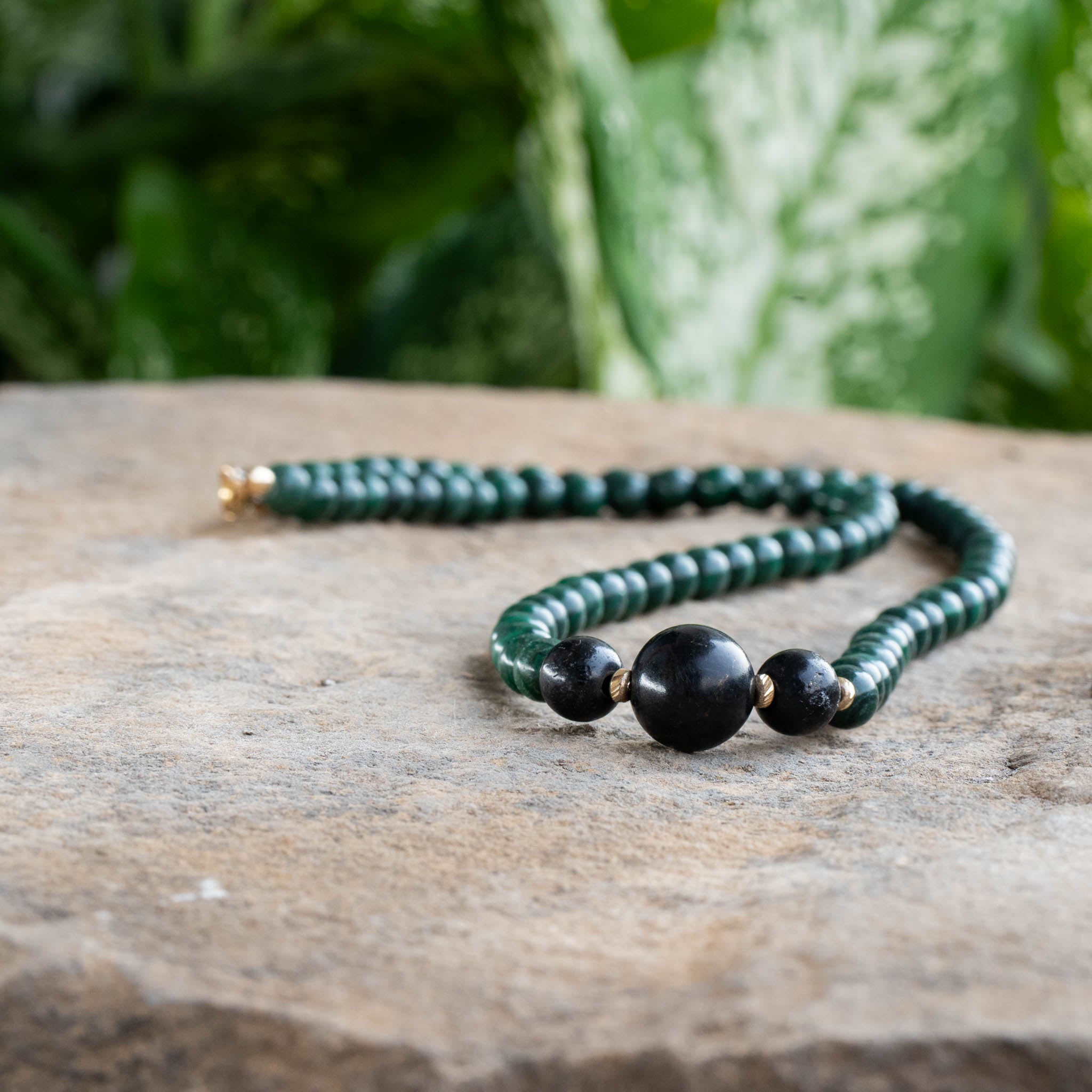 Embrace your inner goddess with our mesmerizing gemstone necklaces. Each piece, meticulously crafted, exudes elegance and individuality, empowering you to channel your inner divinity. Featuring the enchanting allure of Malachite and shungite gemstones