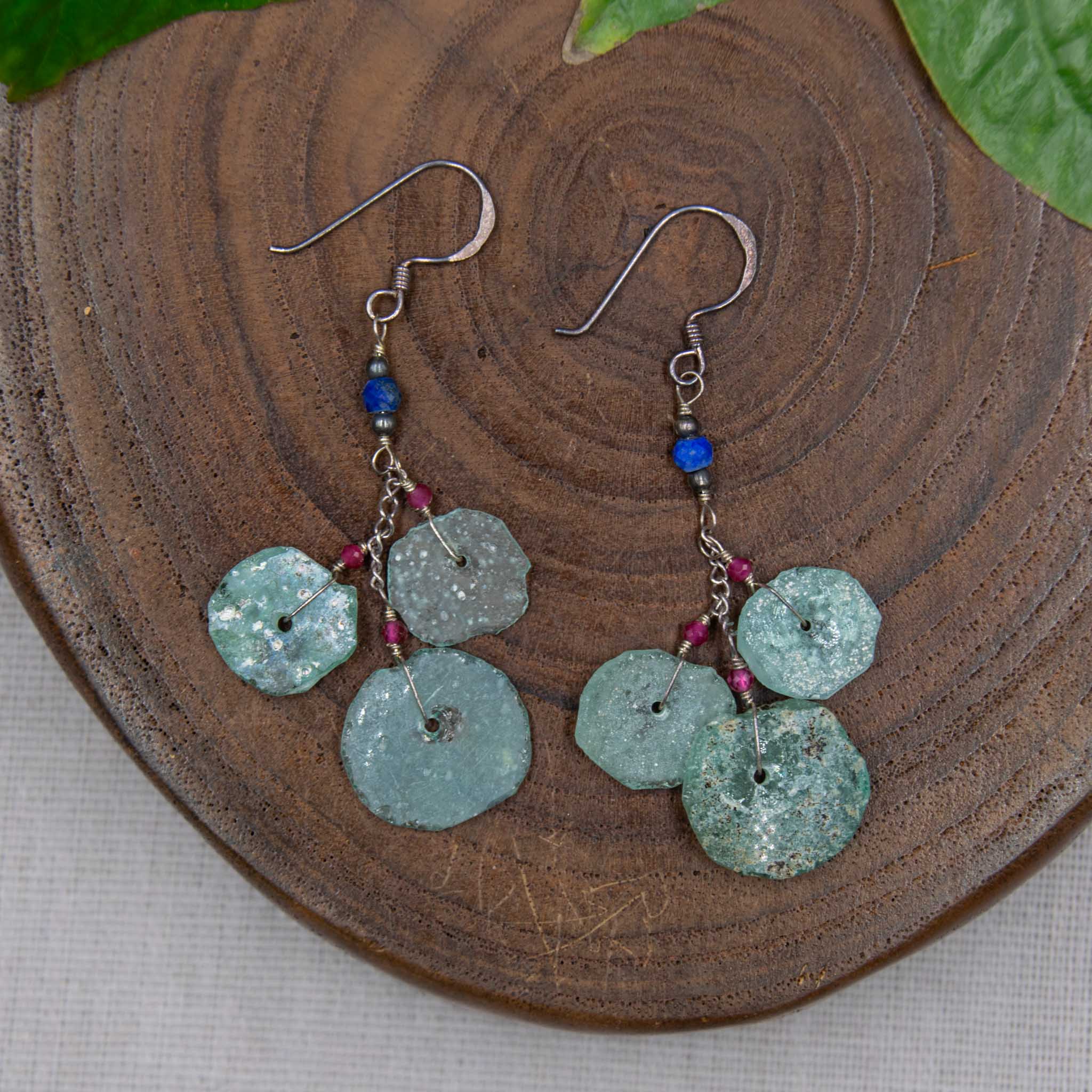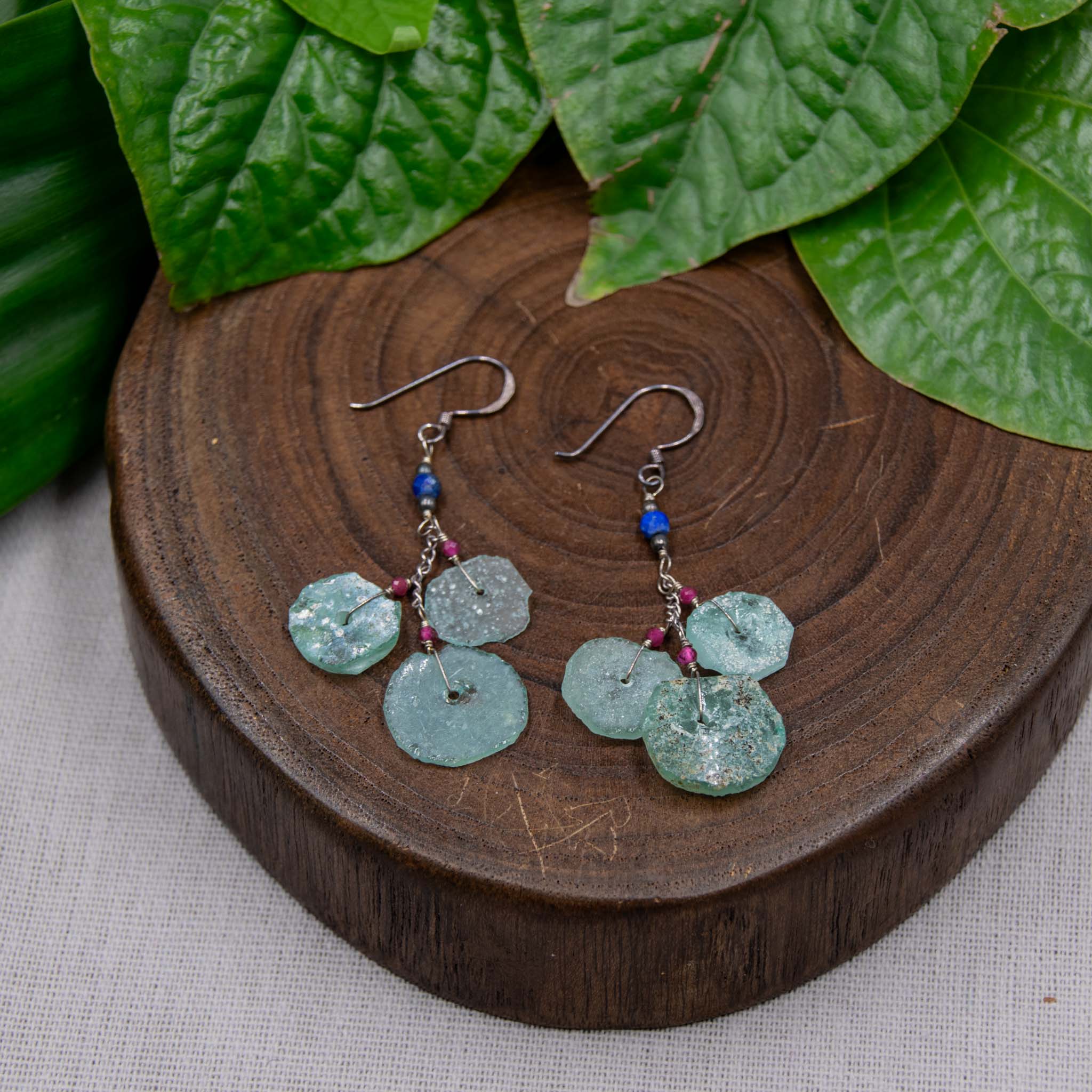 Handcrafted sterling silver earrings featuring authentic Roman glass beads that carry centuries of history and natural beauty.