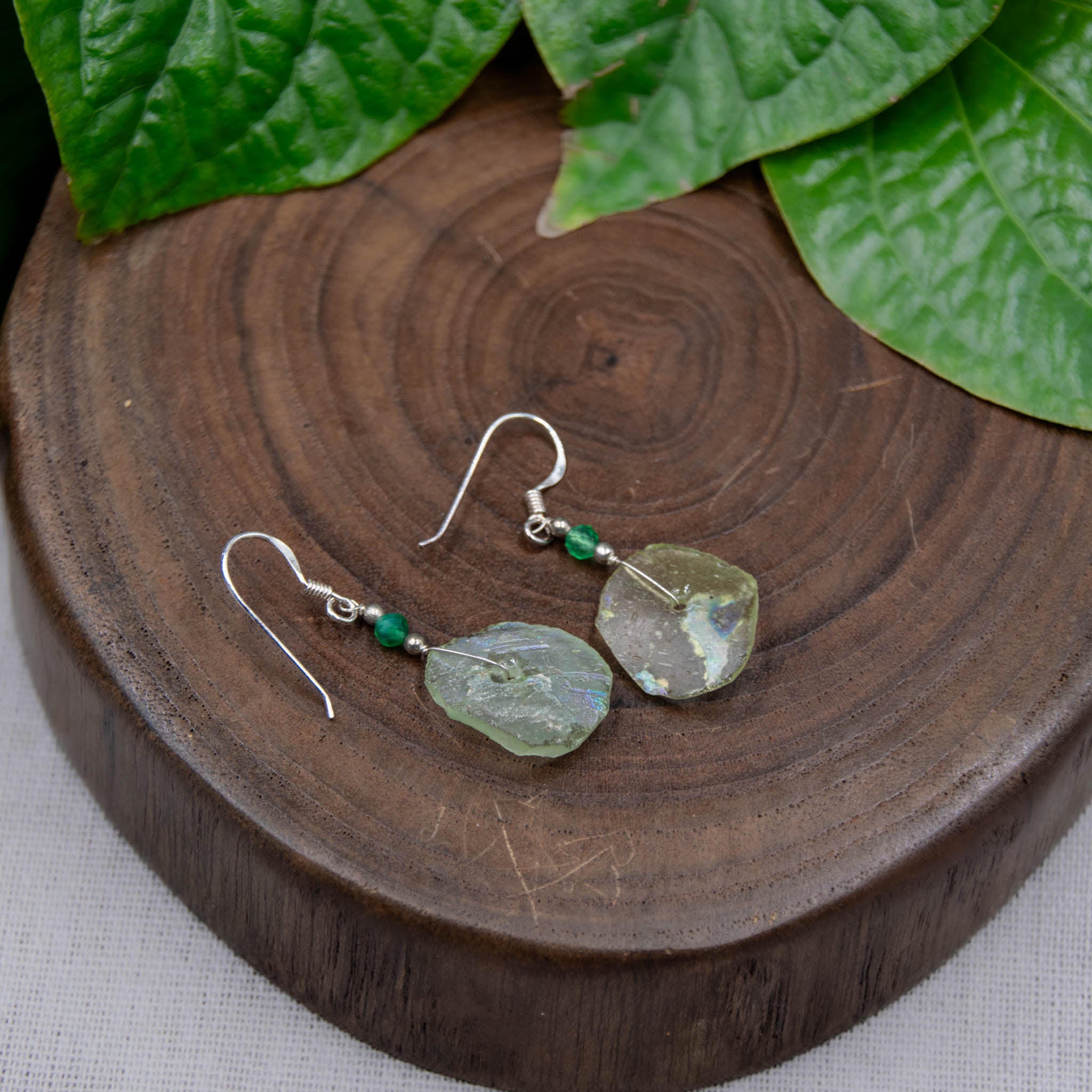 Handcrafted sterling silver earrings featuring authentic Roman glass beads that carry centuries of history and natural beauty.