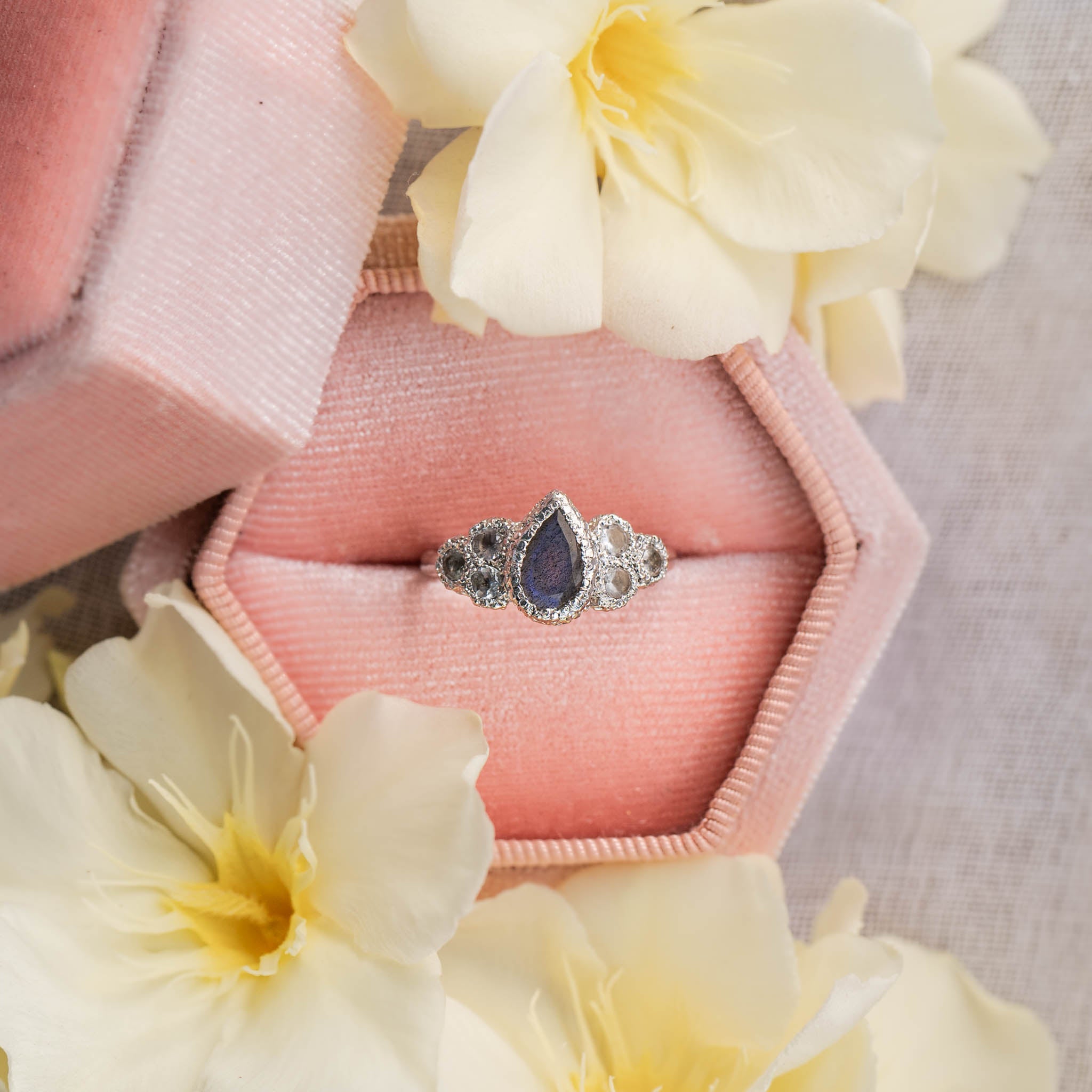GEMSTONE: Labradorite, Center stone size 9.5X5.5, Monstone 3mm
