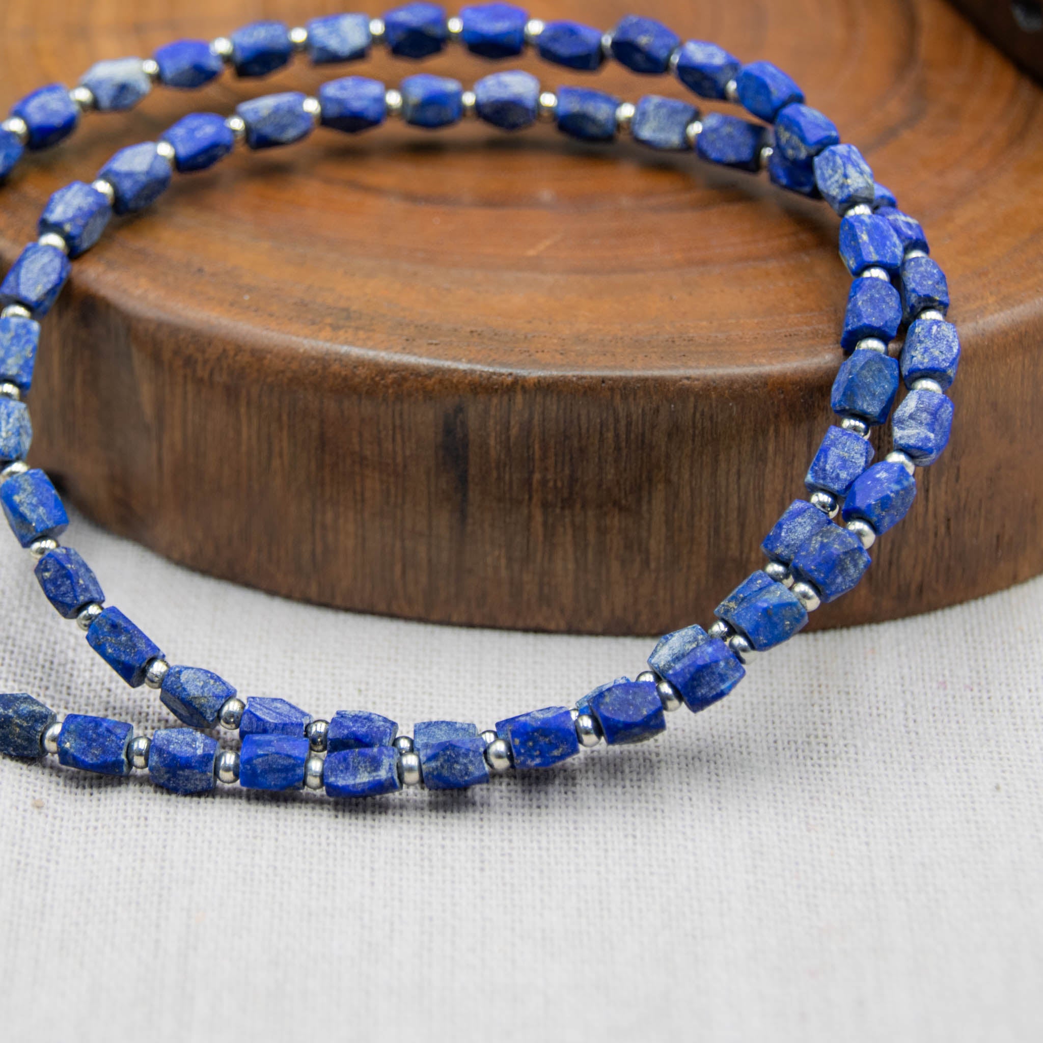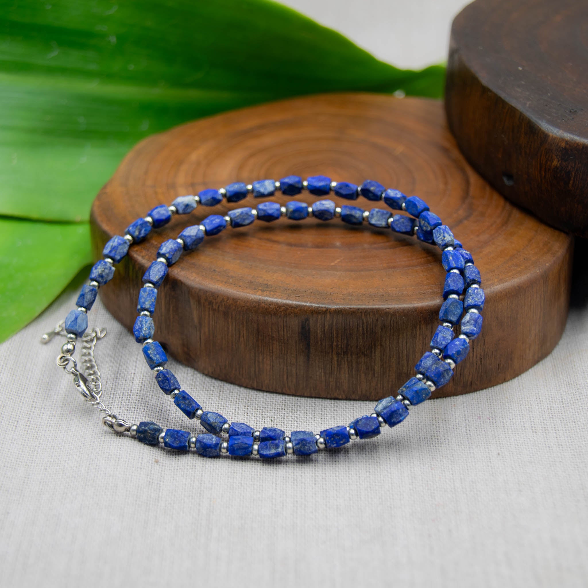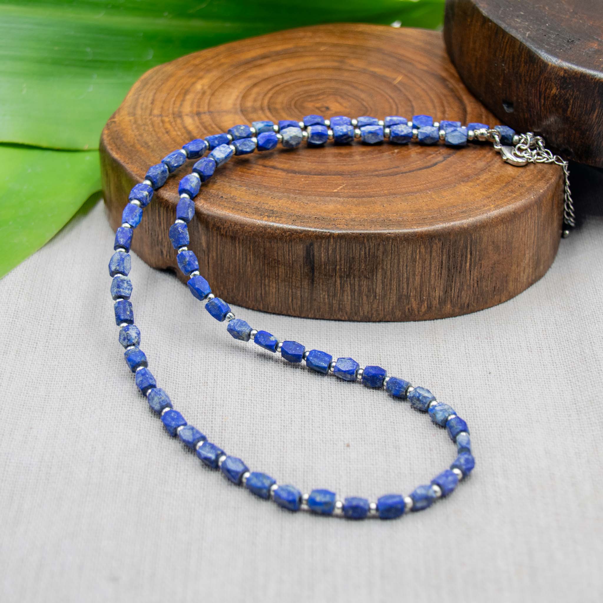 Big Raw Lapis Lazuli Stone Necklace With Beads