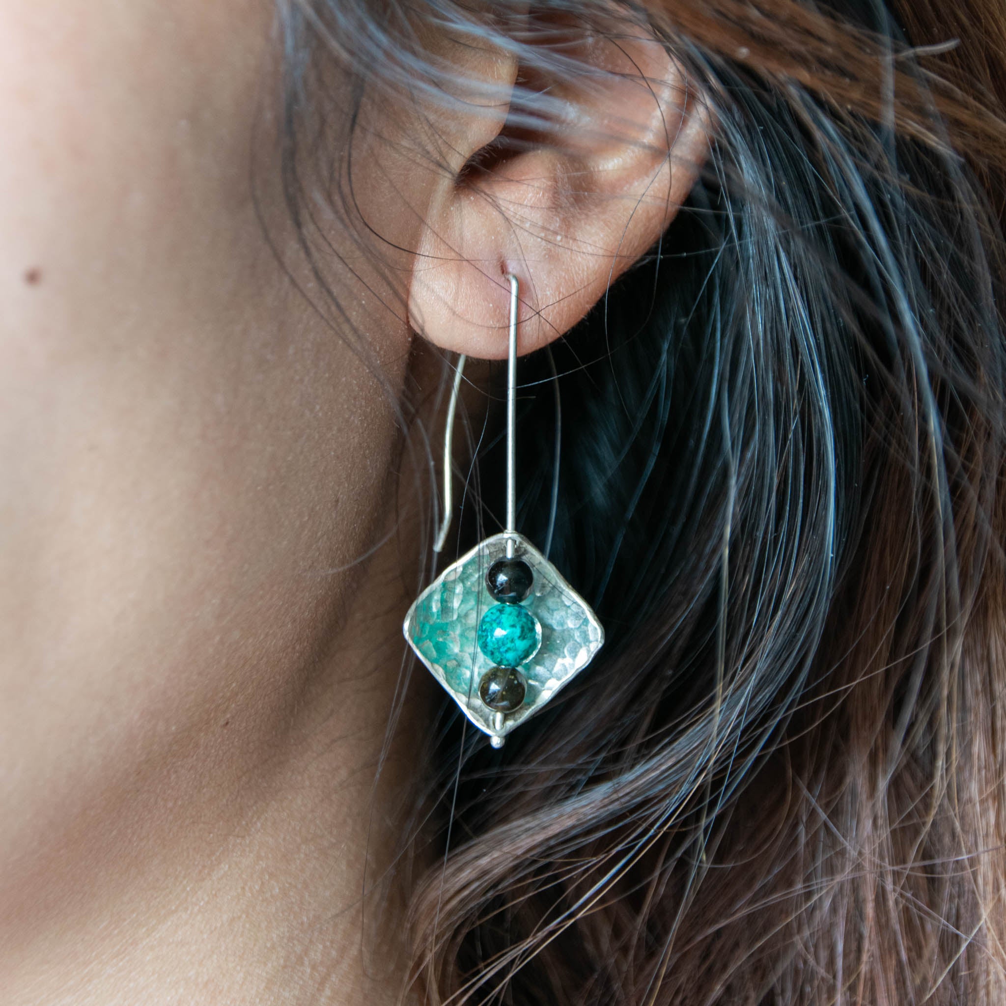 Dangle Silver Earrings Square With Chrysocolla