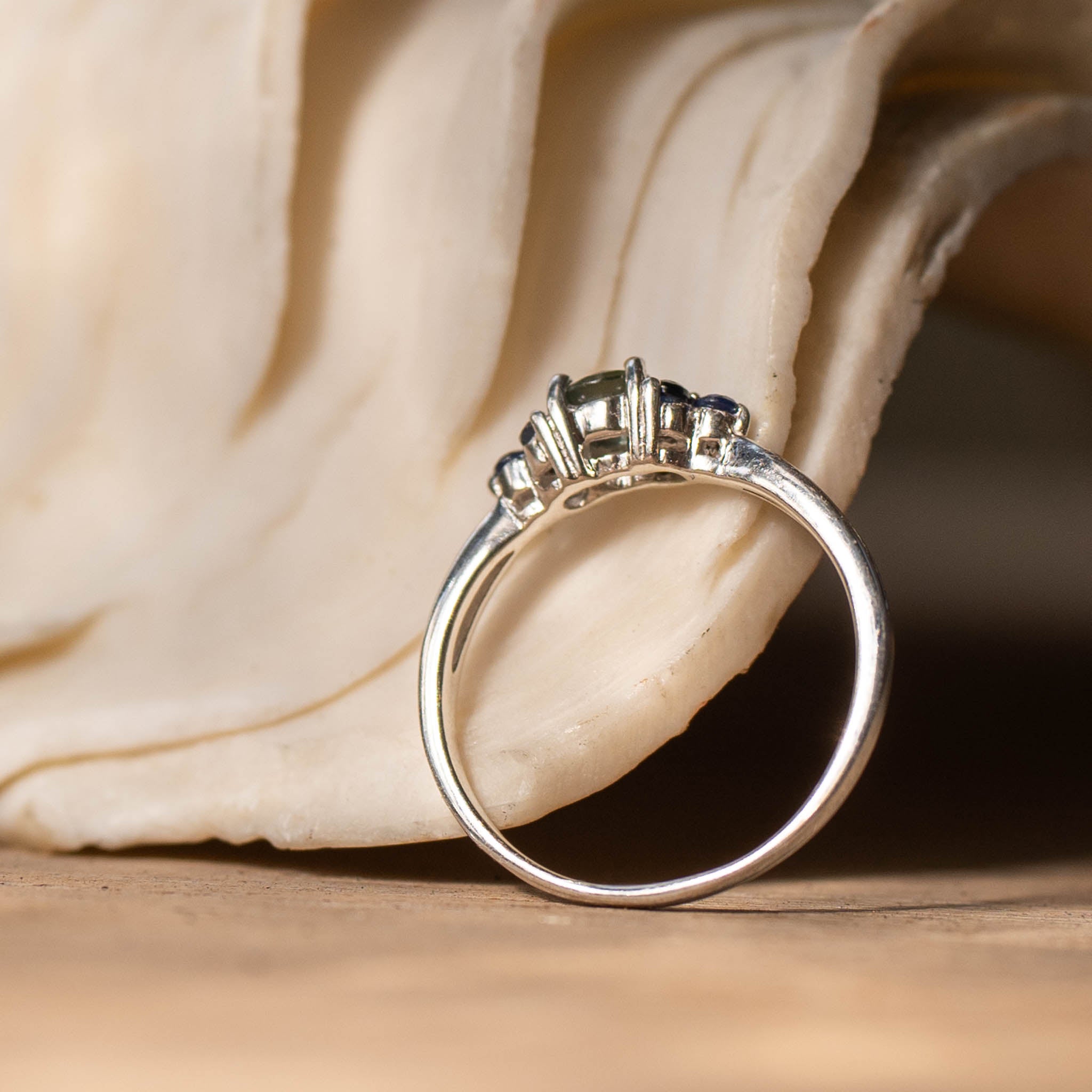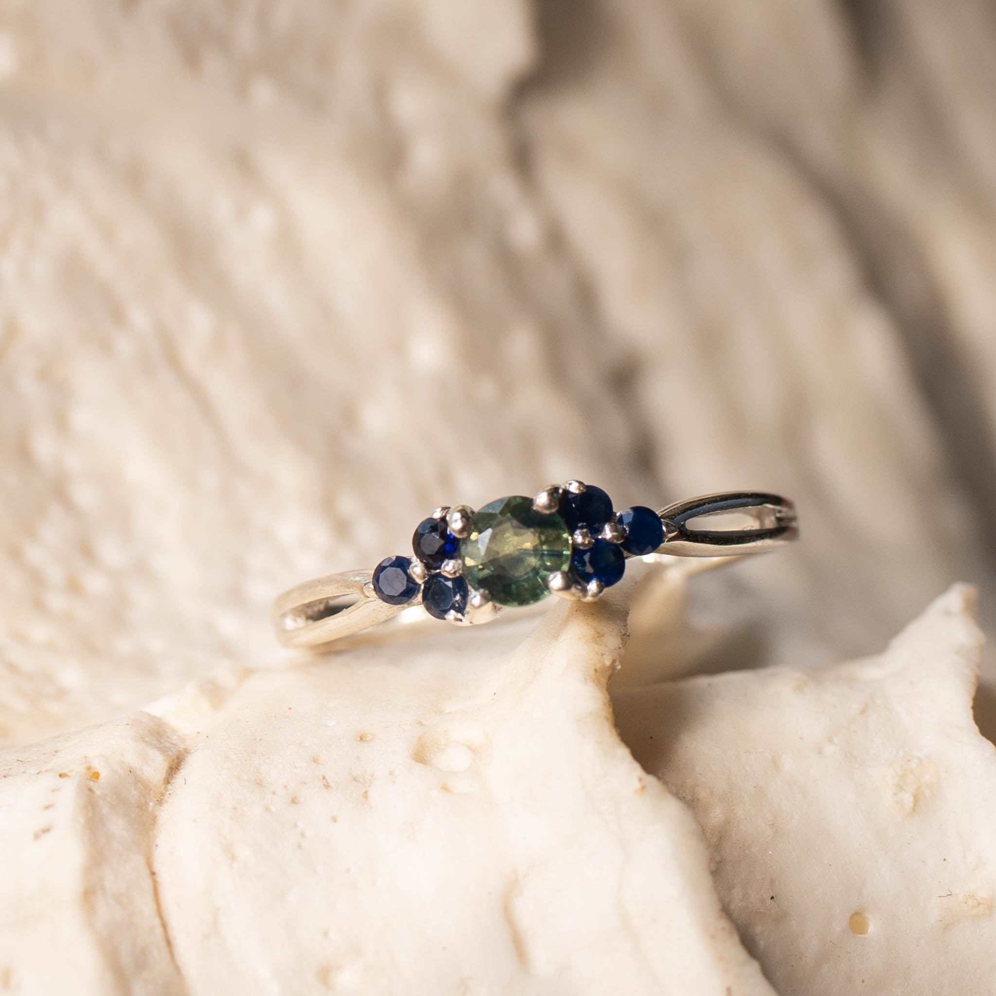 "OCEAN" Green Tourmaline And Blue Sapphire Gold Ring or Sterling Silver
