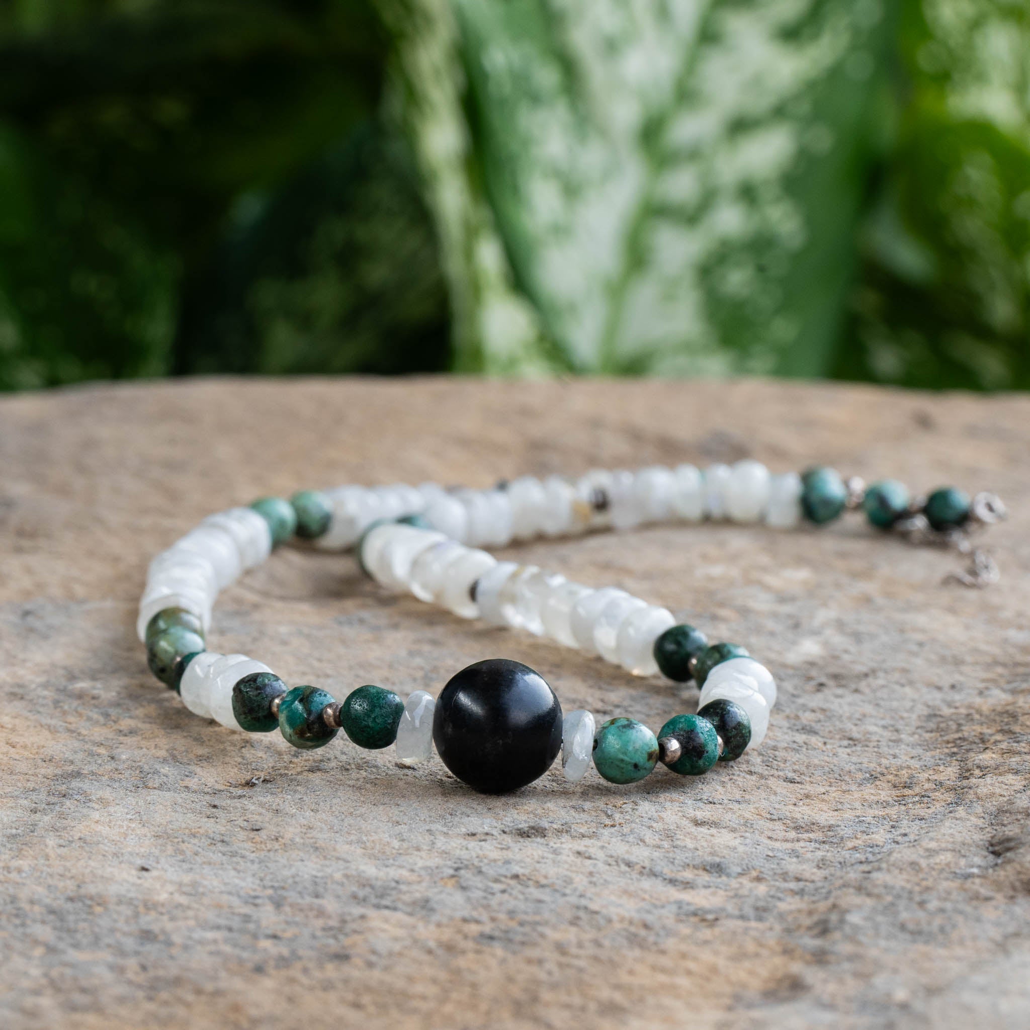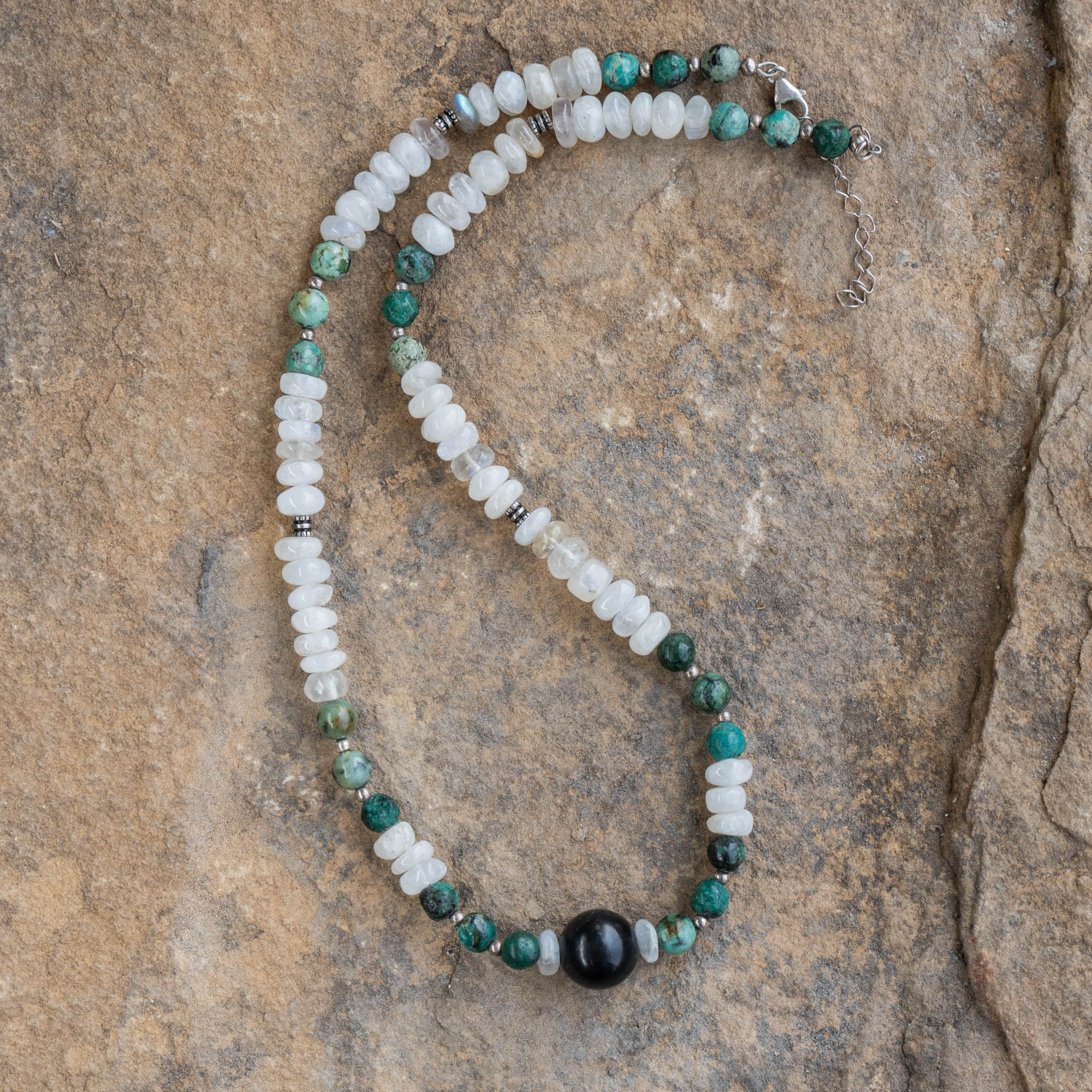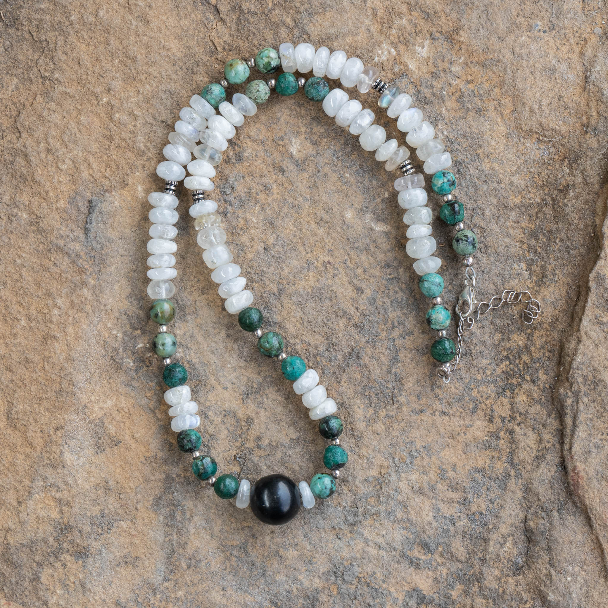 Shungite, Moonstone, Turquoise Necklace
