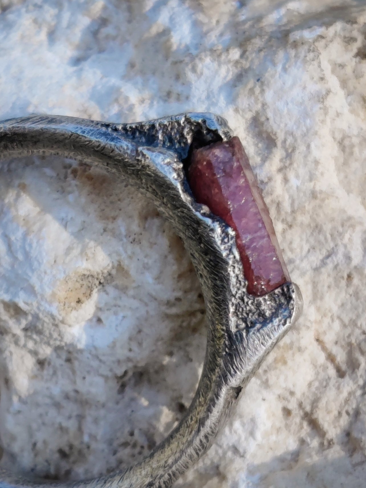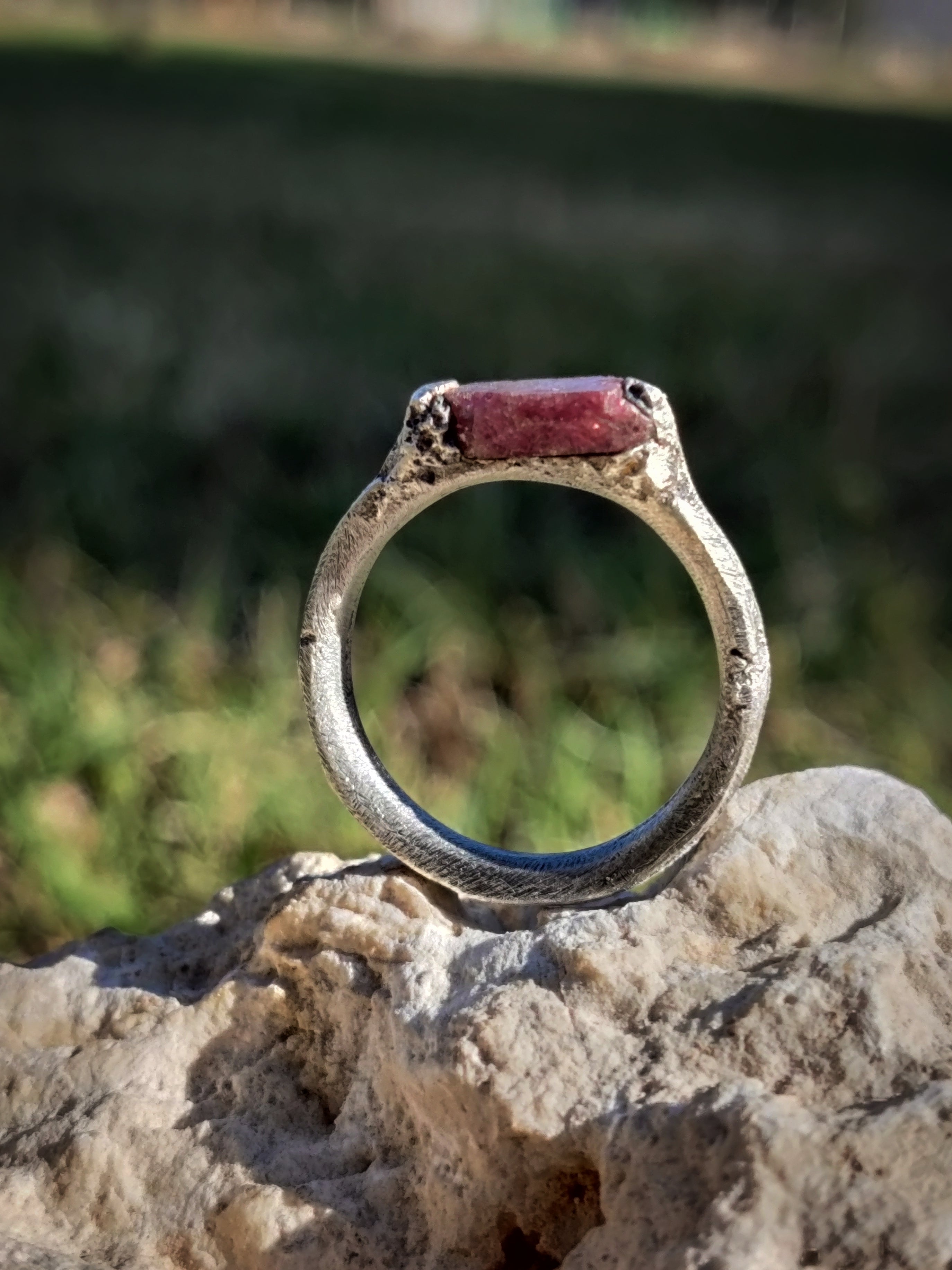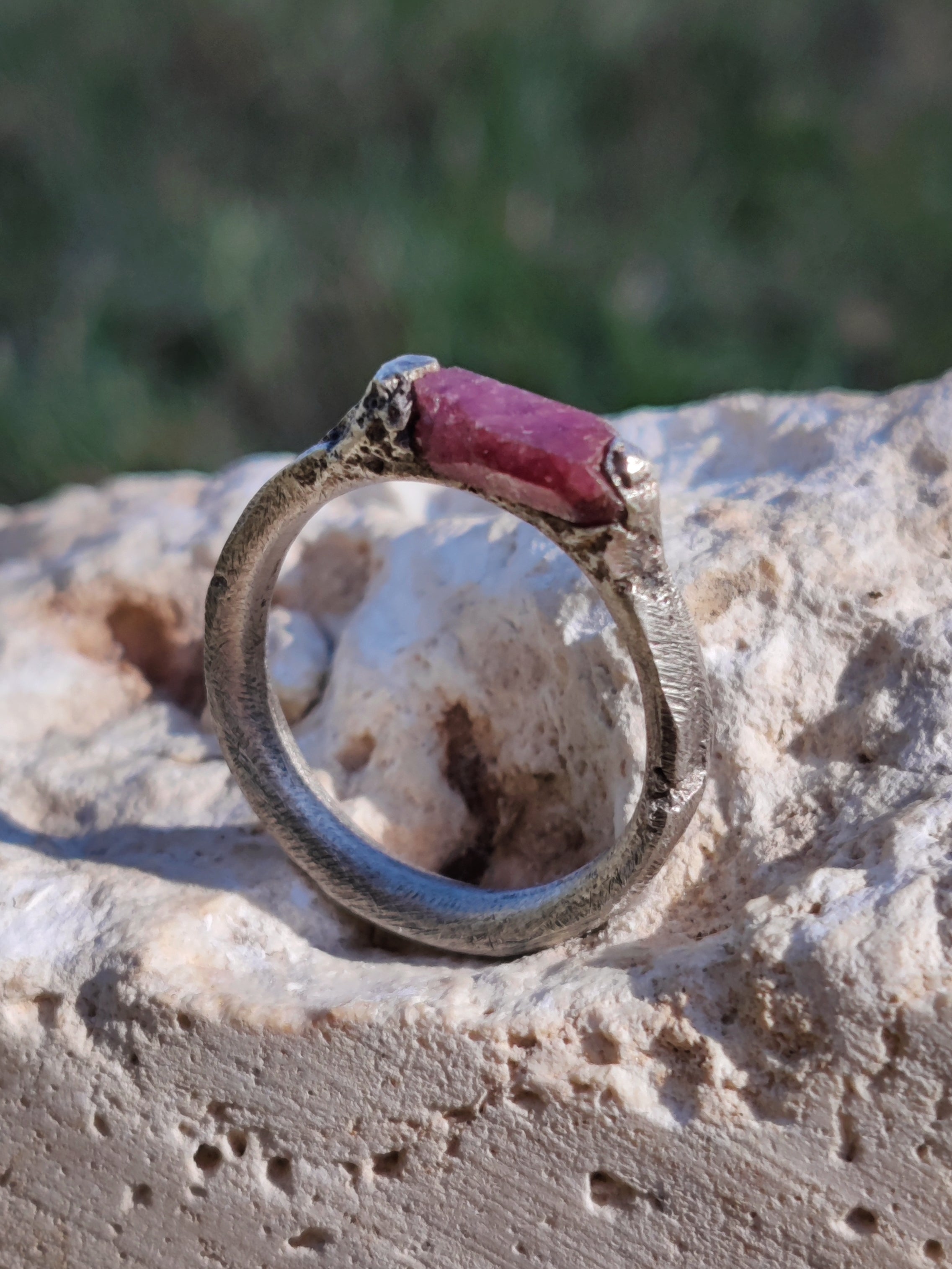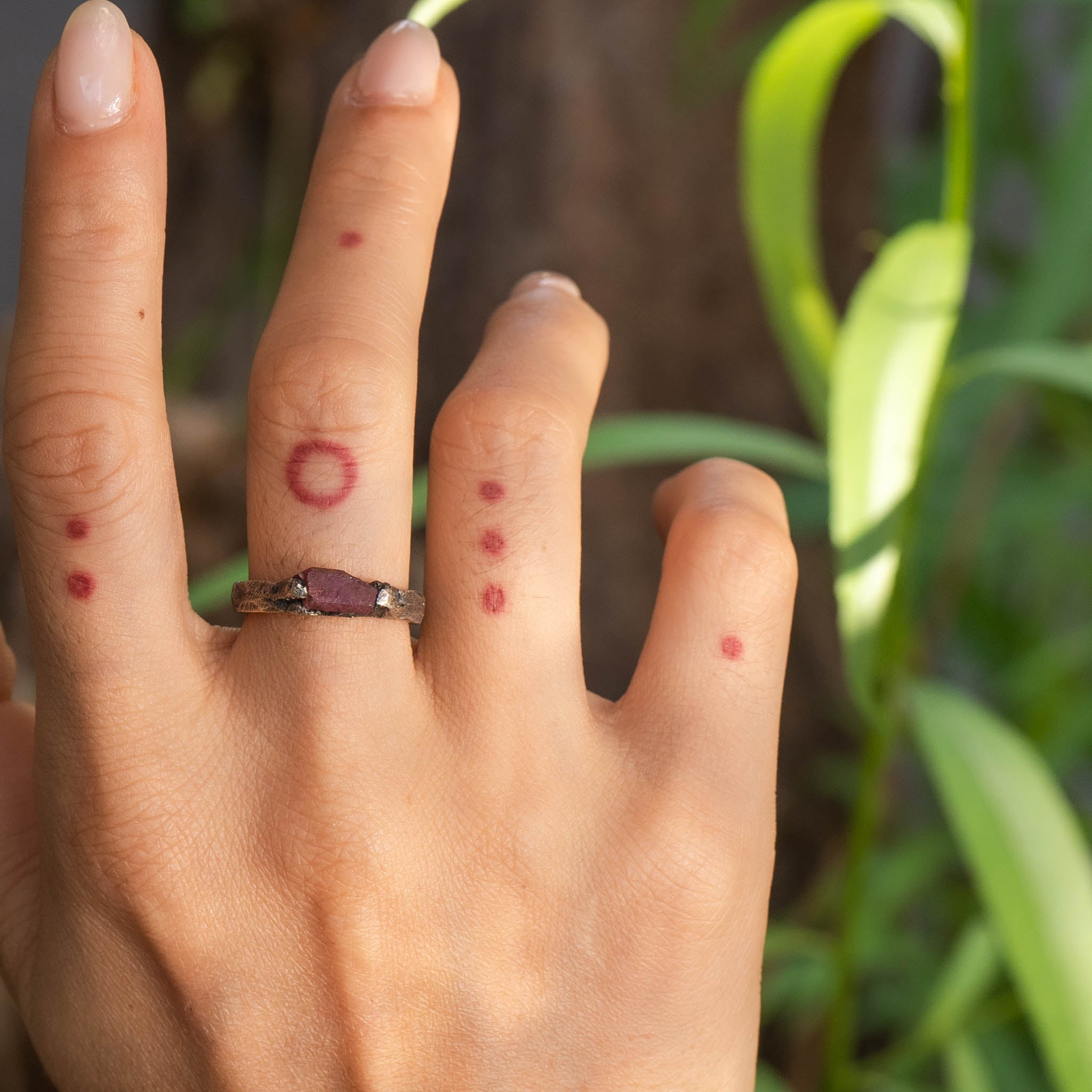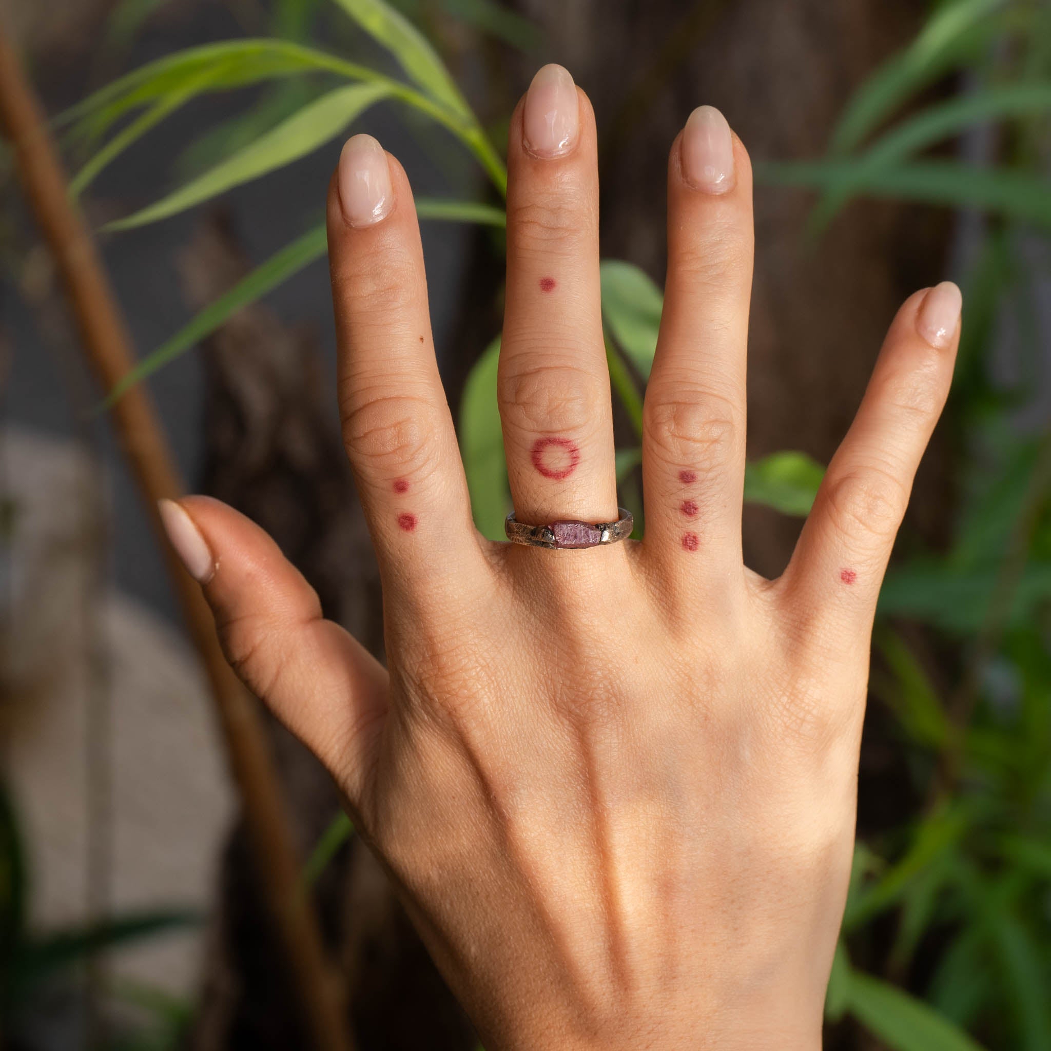 "STARS IN GOLD" Sandcasted Ring with Rubies And Sapphires
