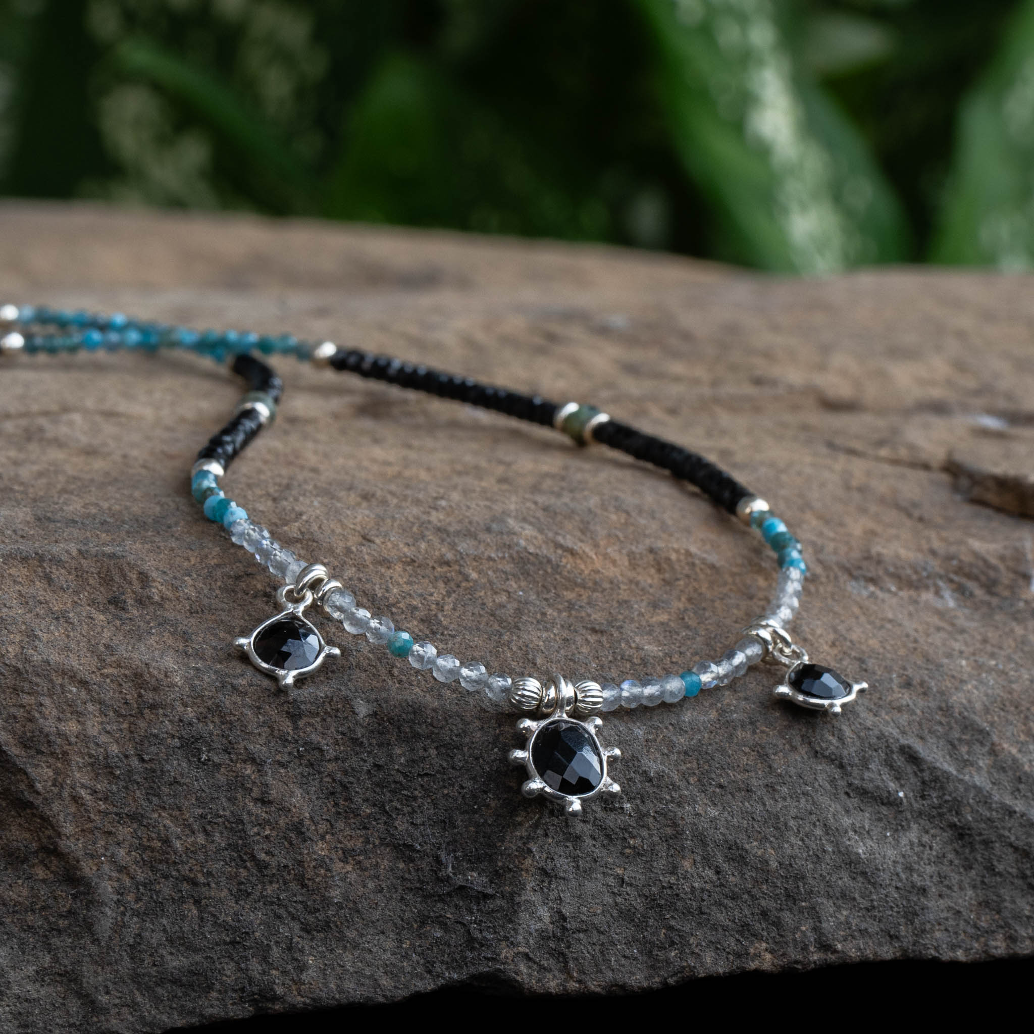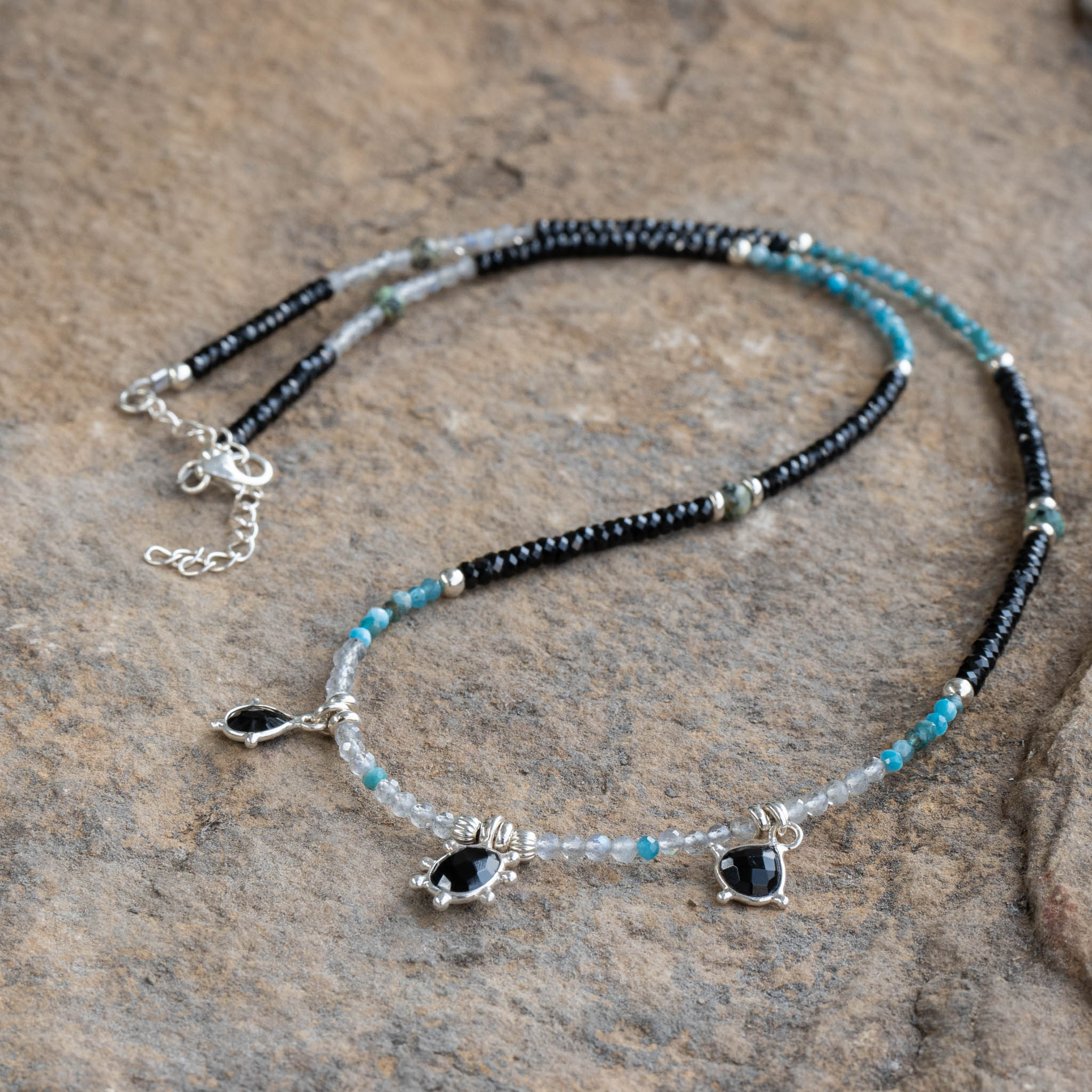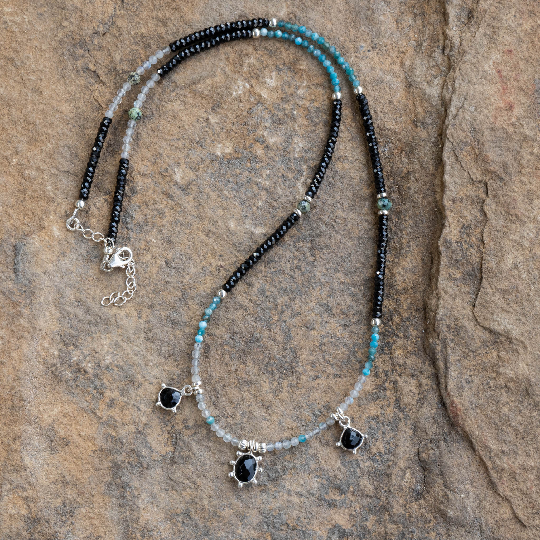 Black Tourmaline, Black Spinel, Turquoise, Labradorite and Apetite gemstones Necklace