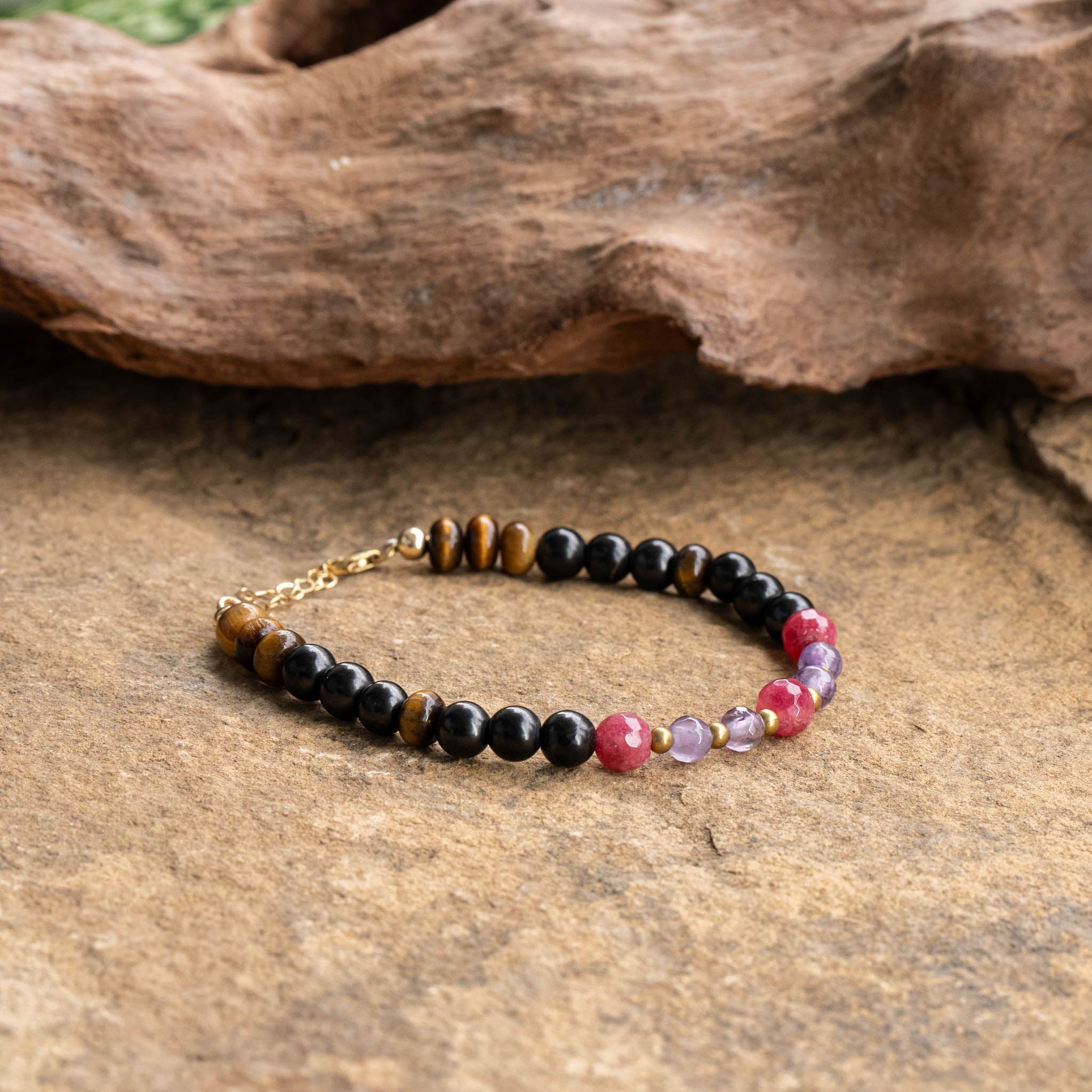 Shungite, Amethyst, Jade, Tiger Eye Bracelet With Chain