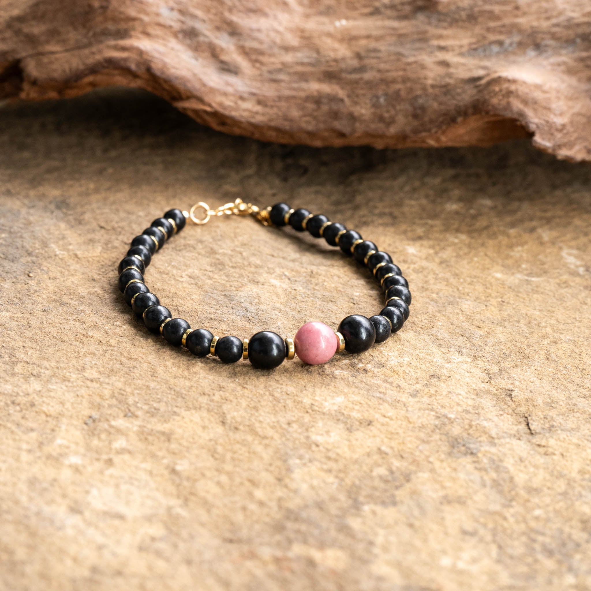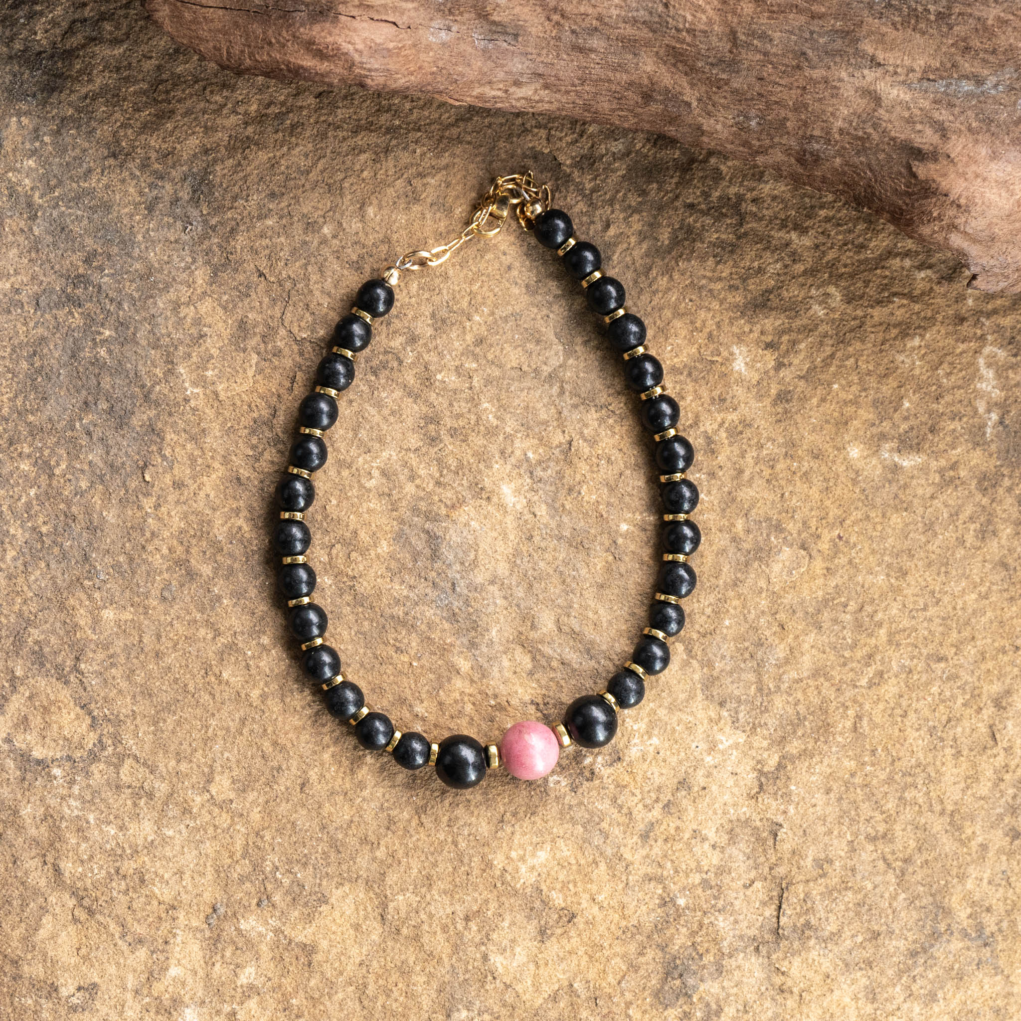 Shungite, Rhodonite, Hematite Bracelet With Chain
