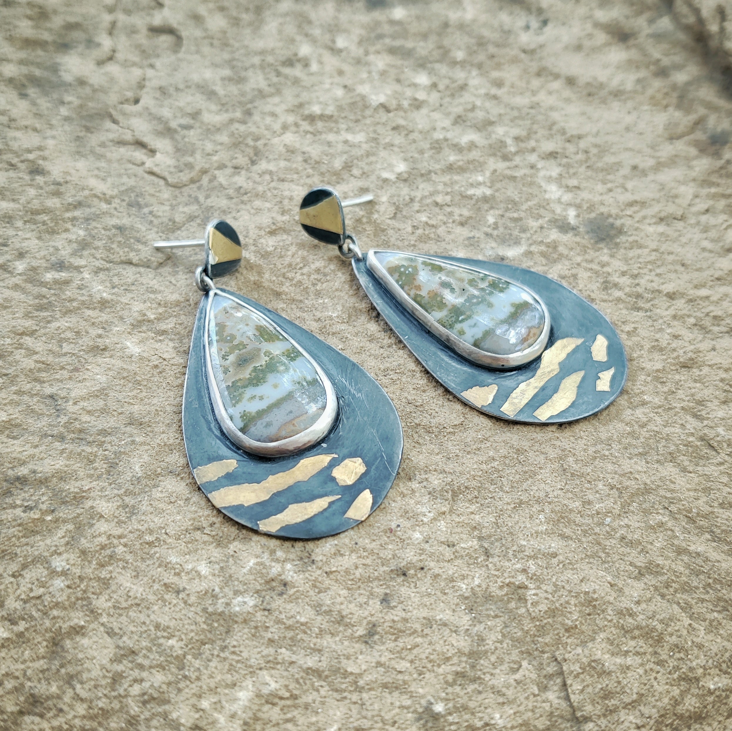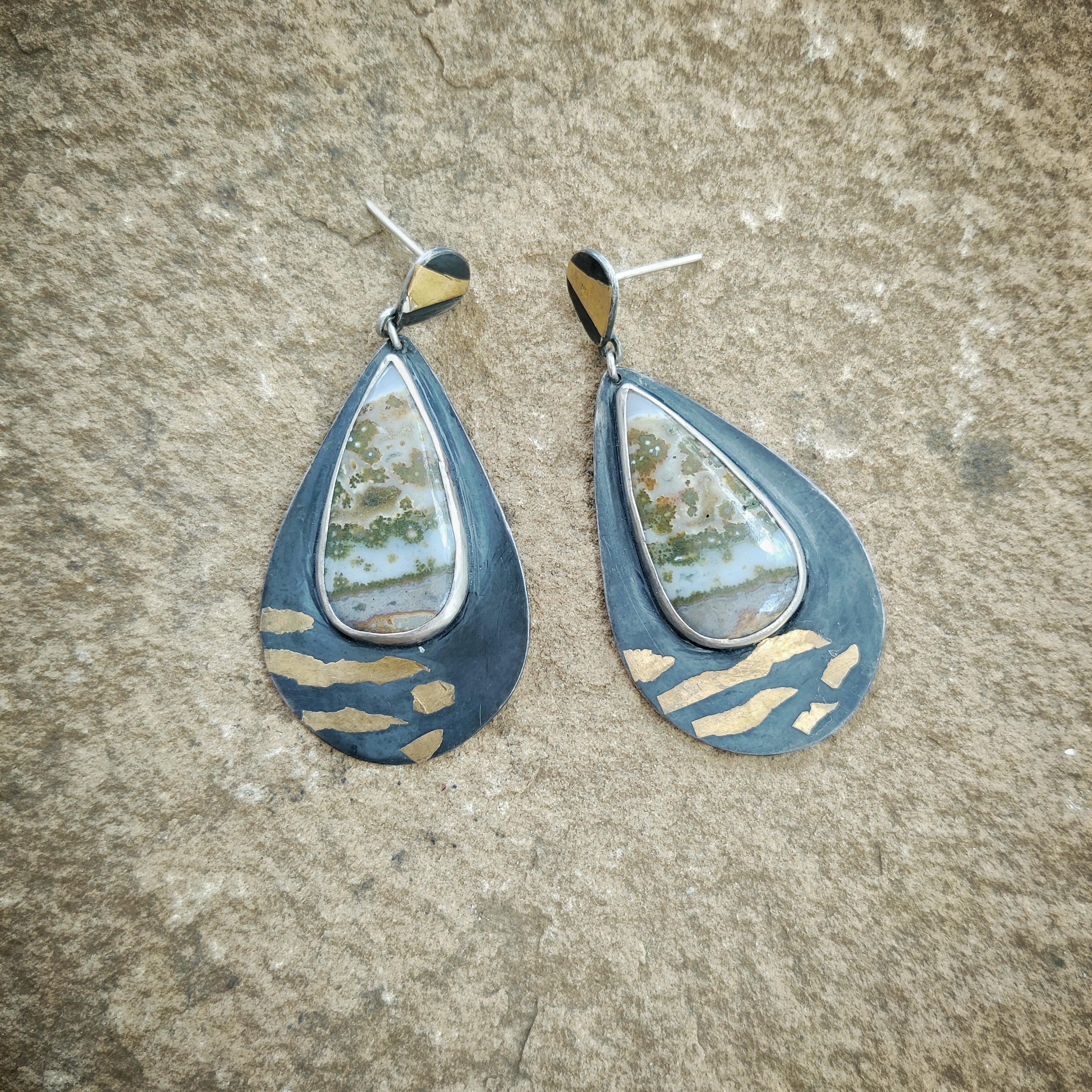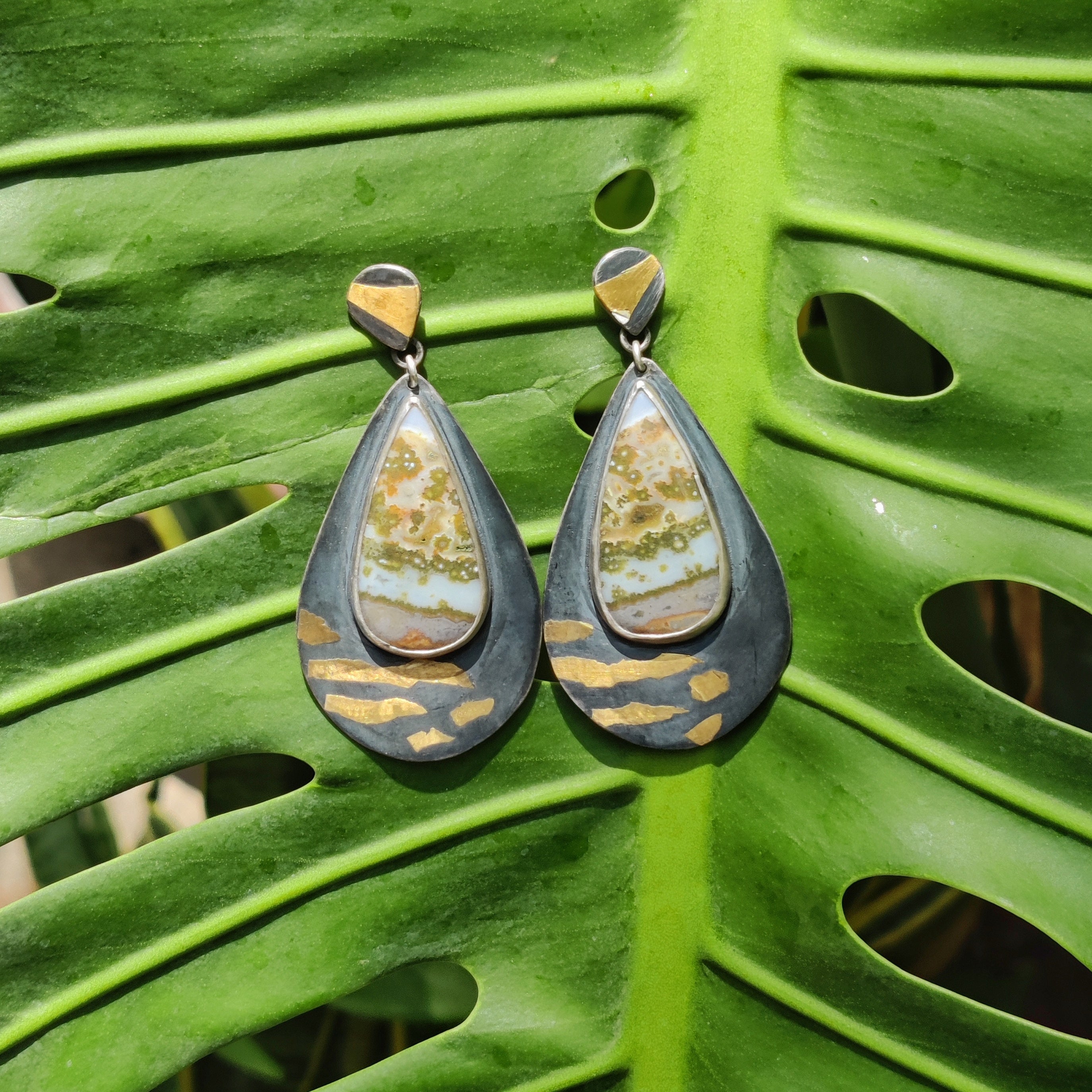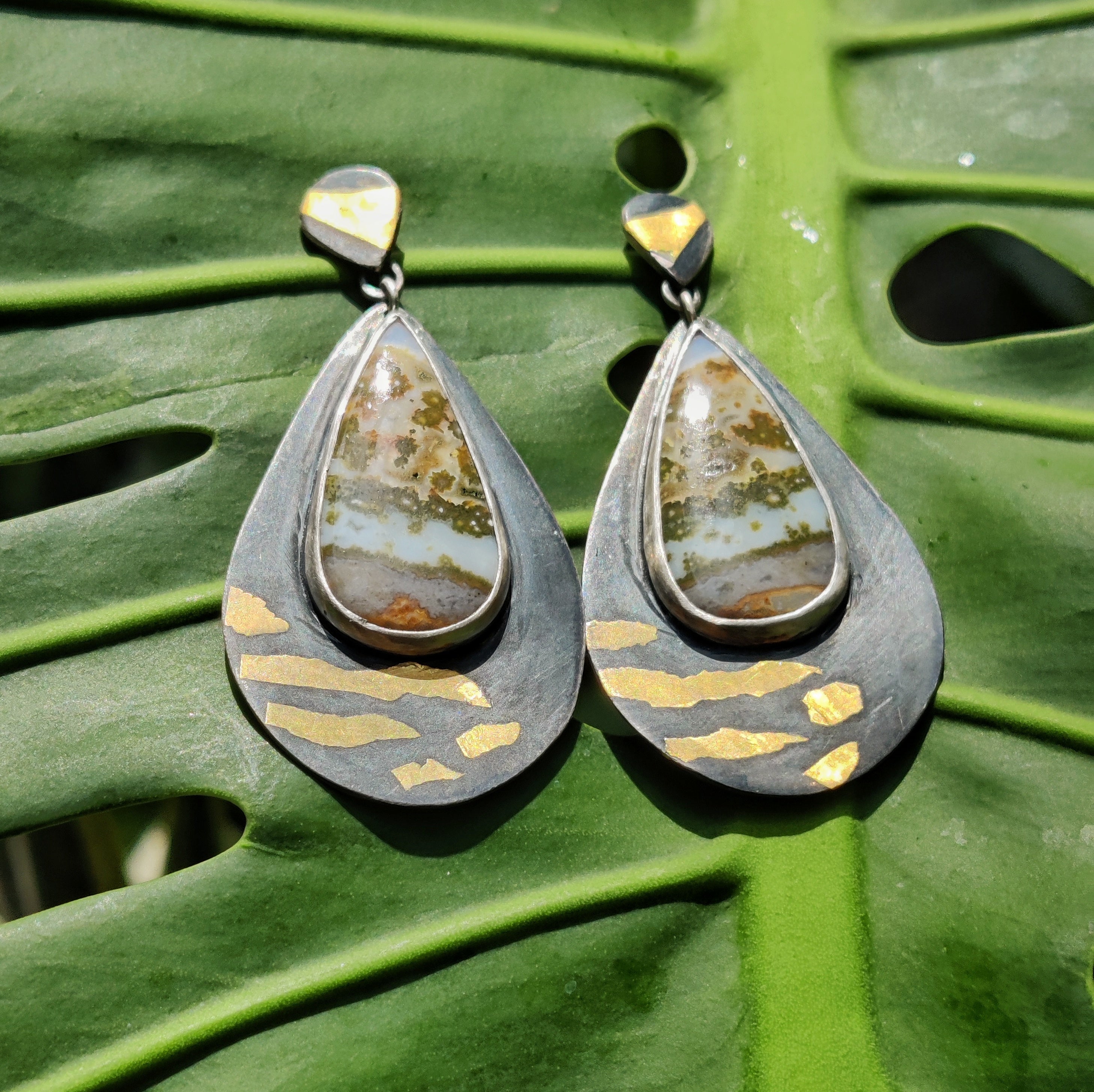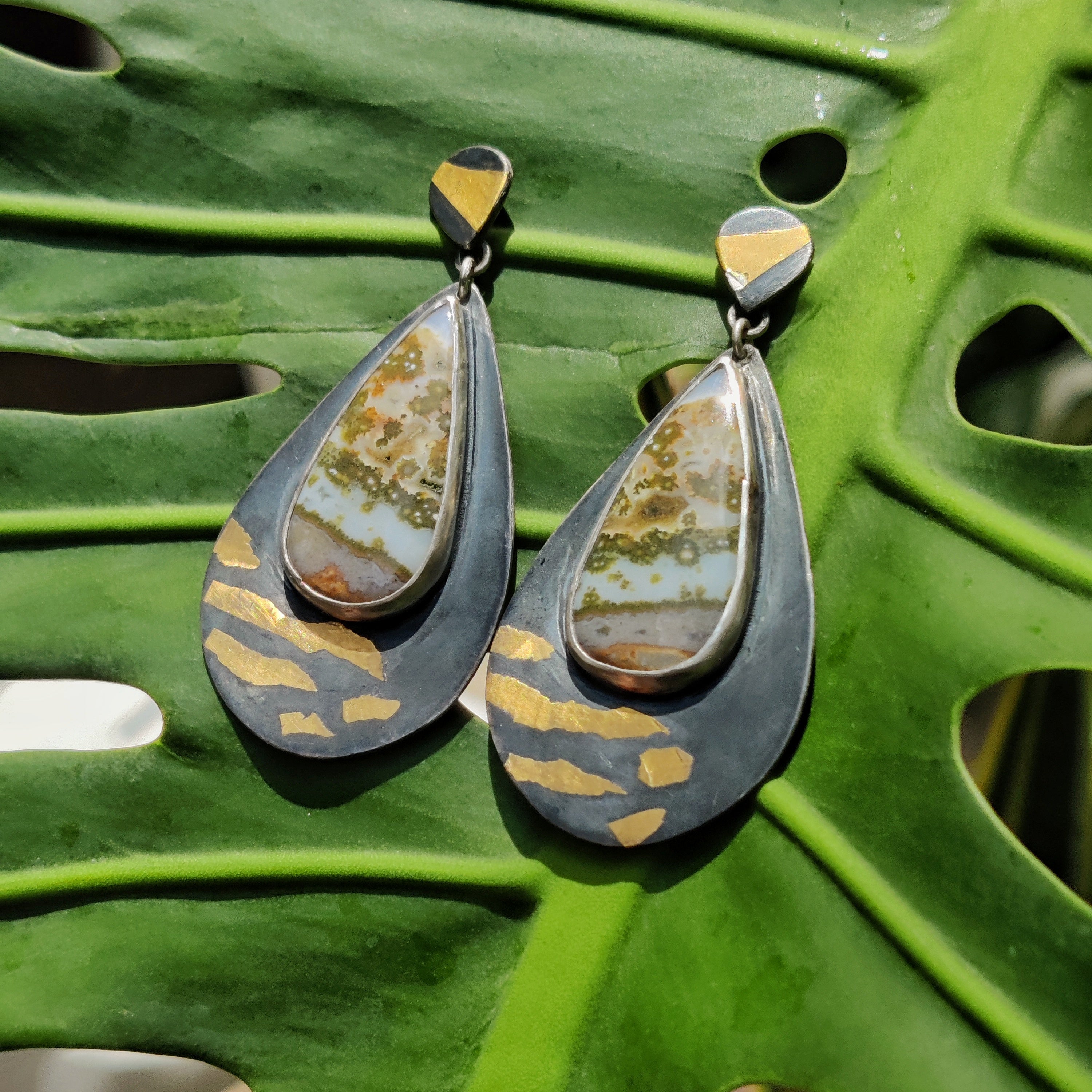 "GOLD ZEBRA" Necklace, Jasper Ocean, Pure Gold & Sterling Silver in Keum Boo