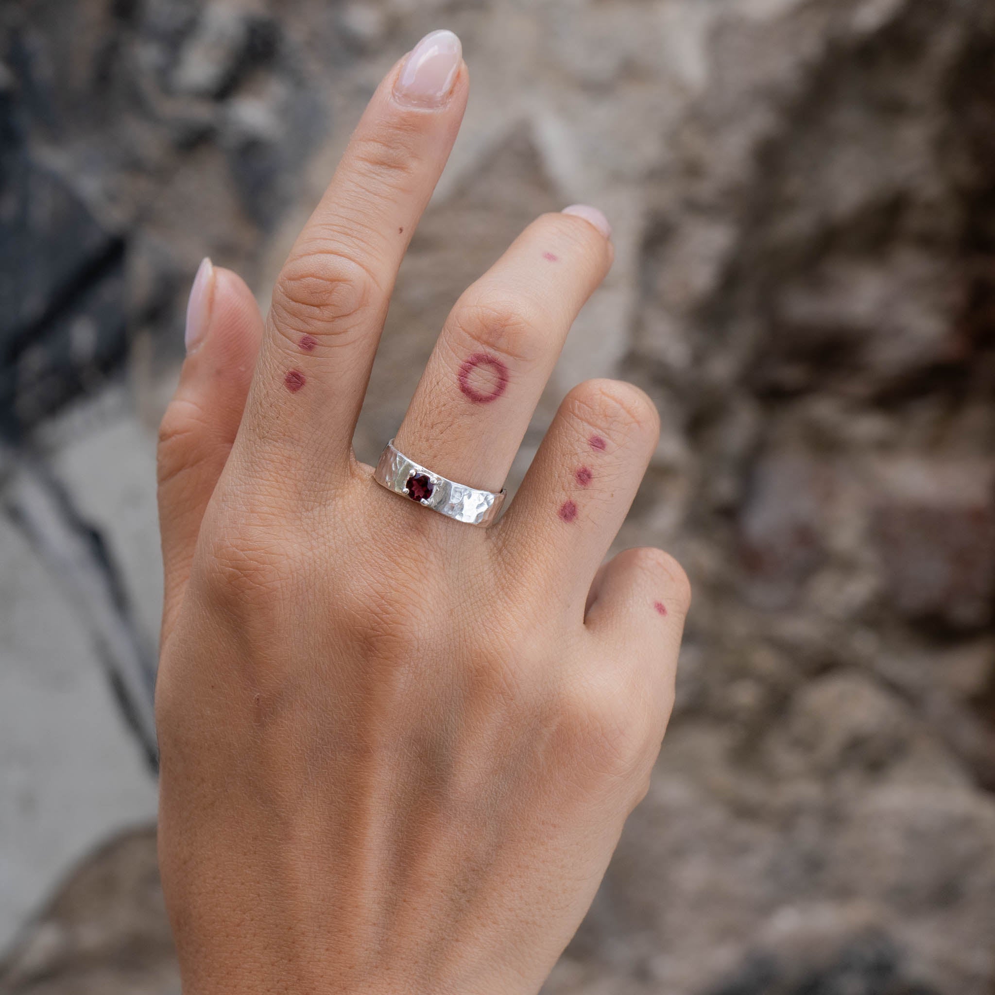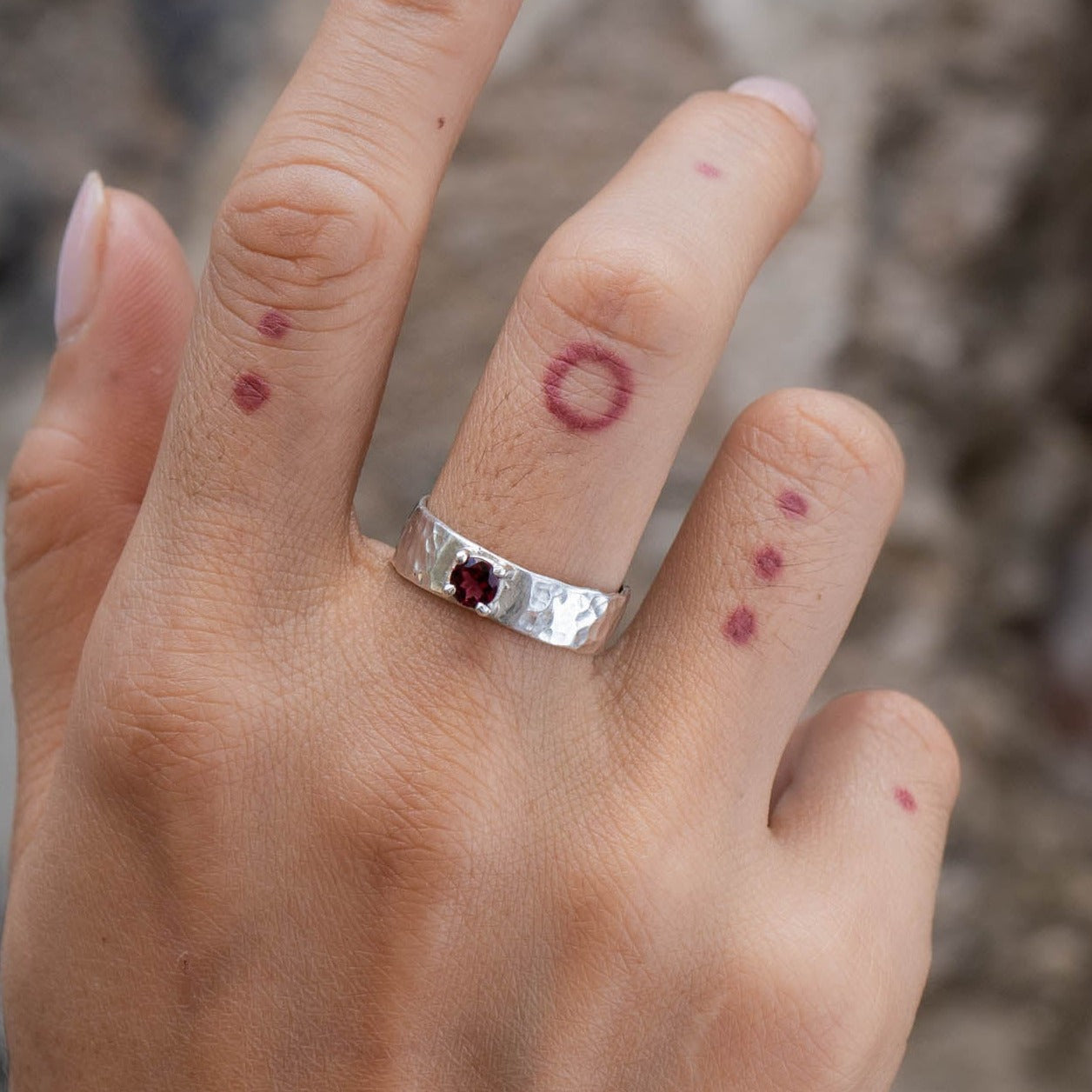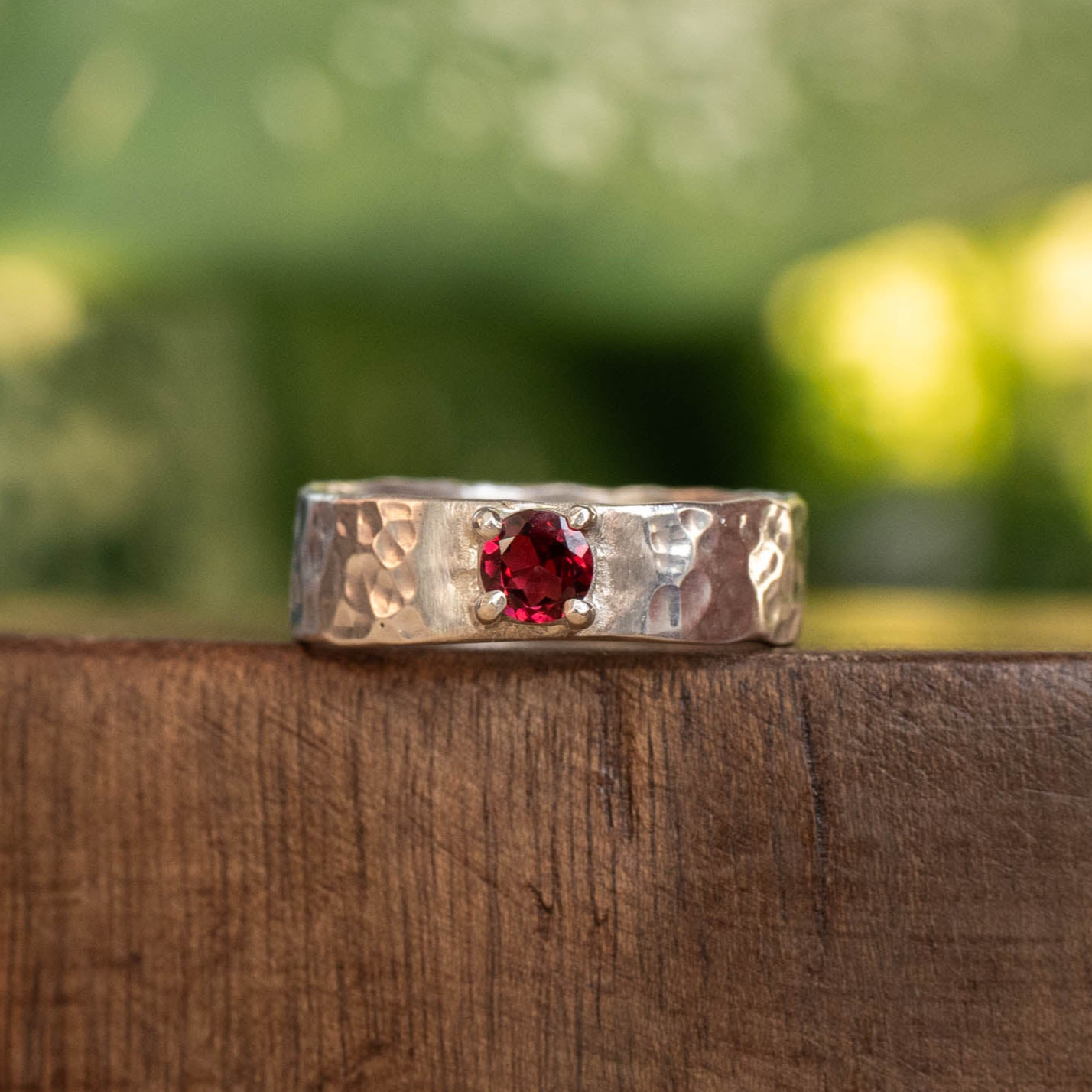 Wide Hammered Garnet Ring