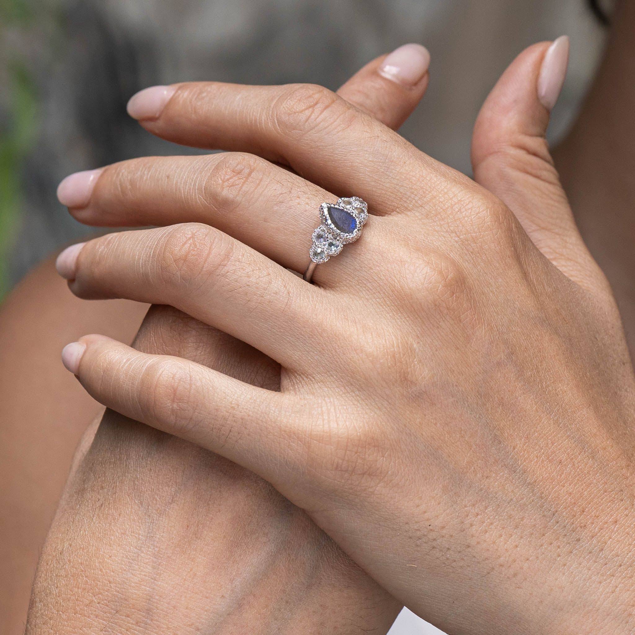 "NOFAR" Labradorite and Moonstone Gold Ring