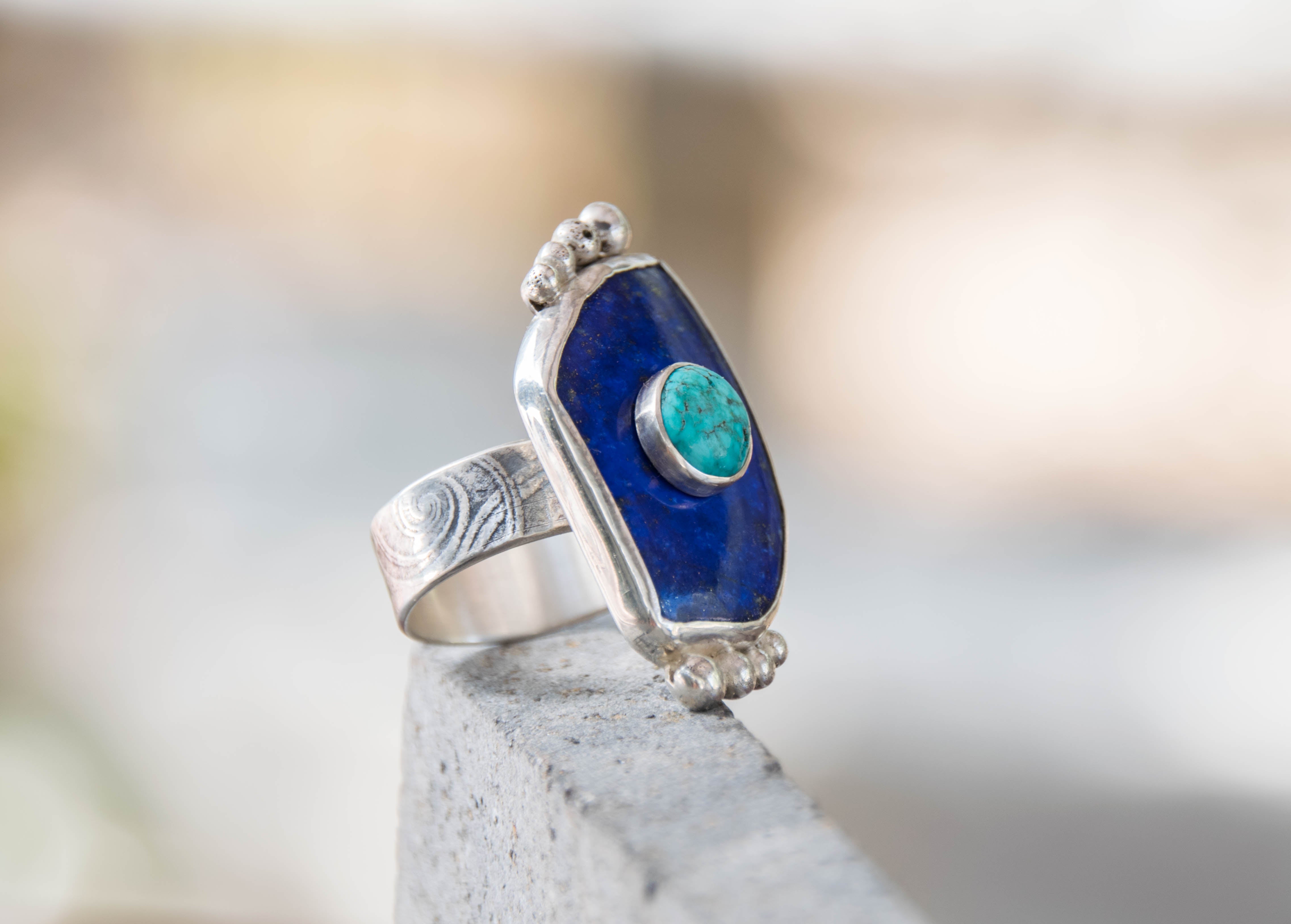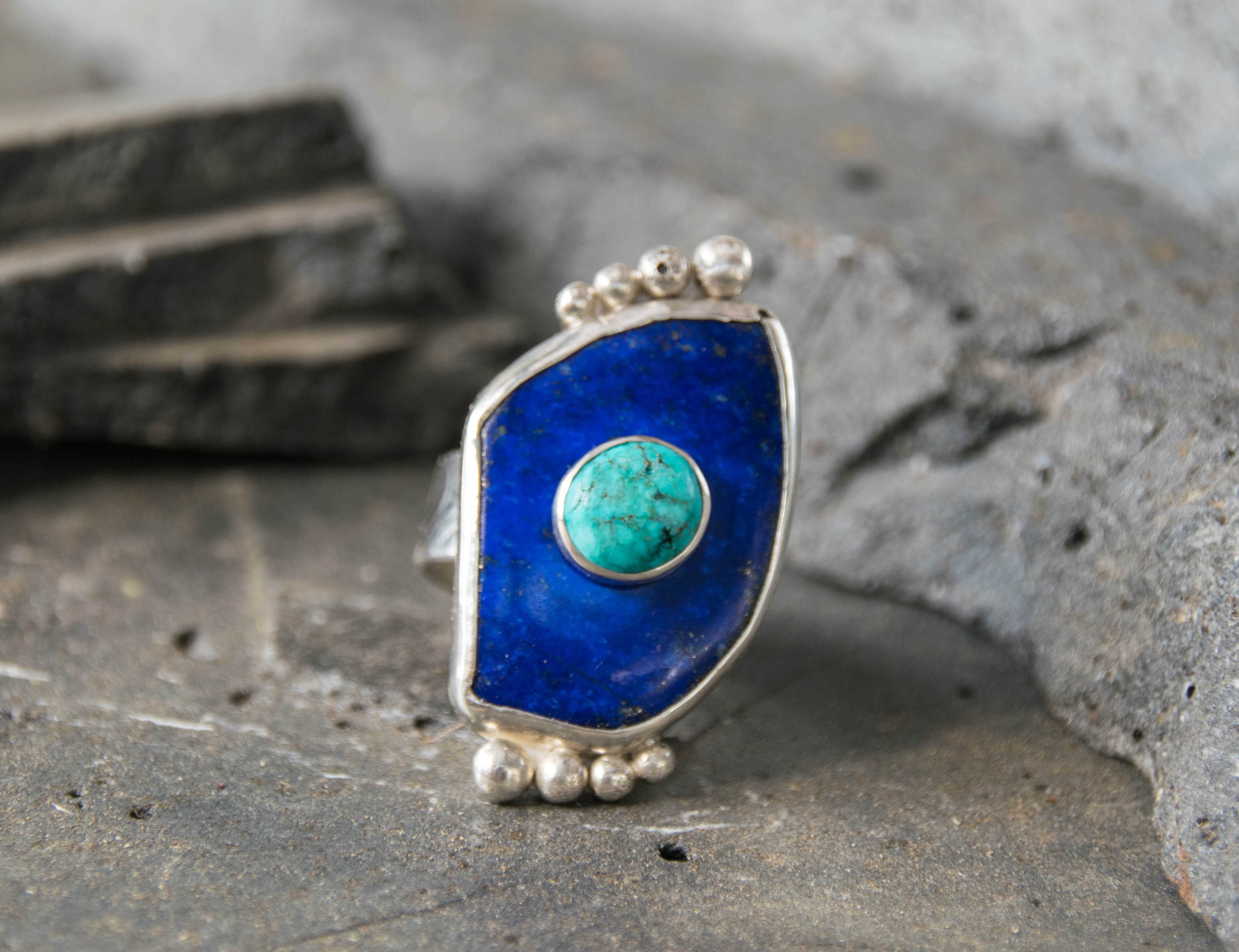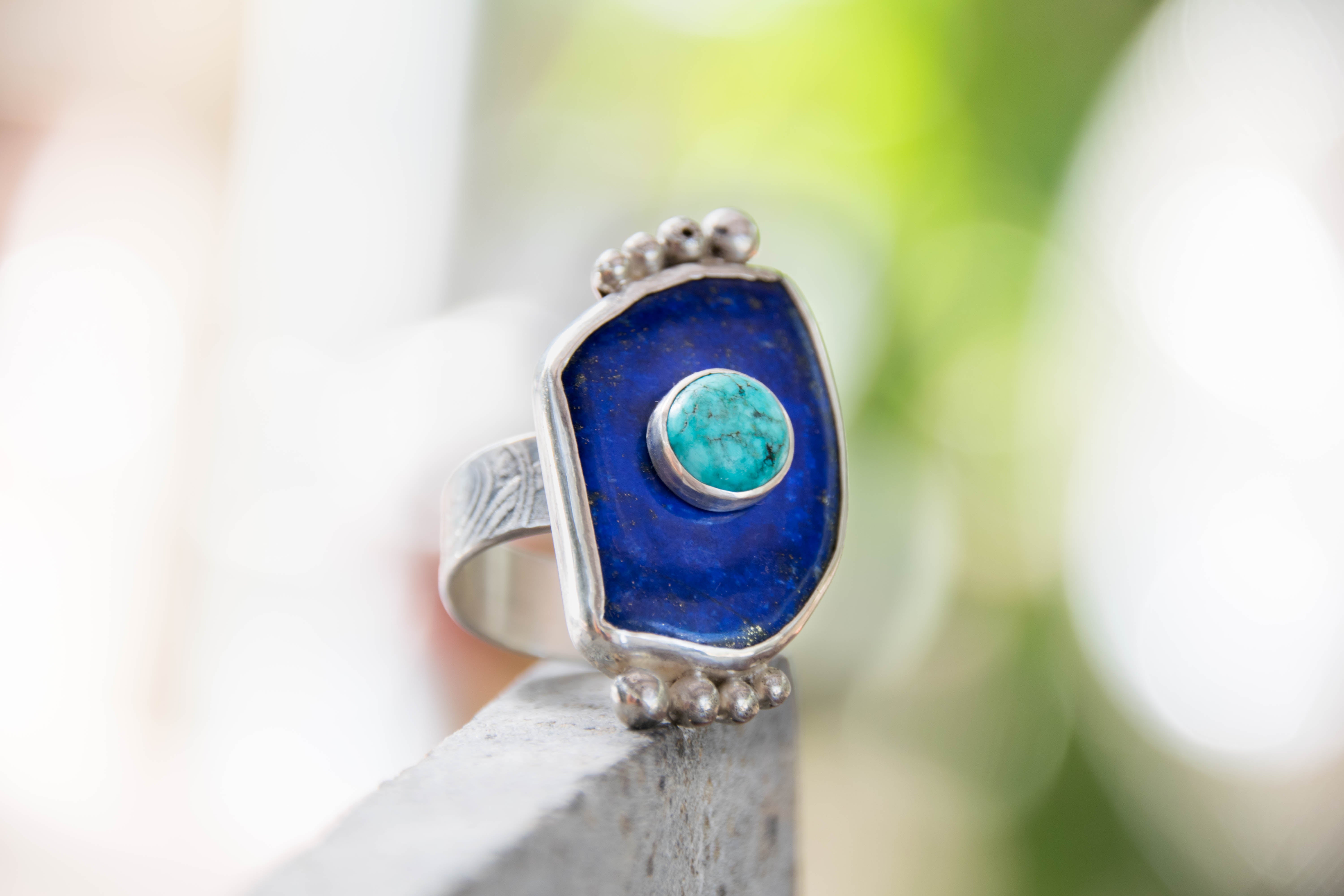 Lapis Lazuli With Turquoise Stone On Stone Ring