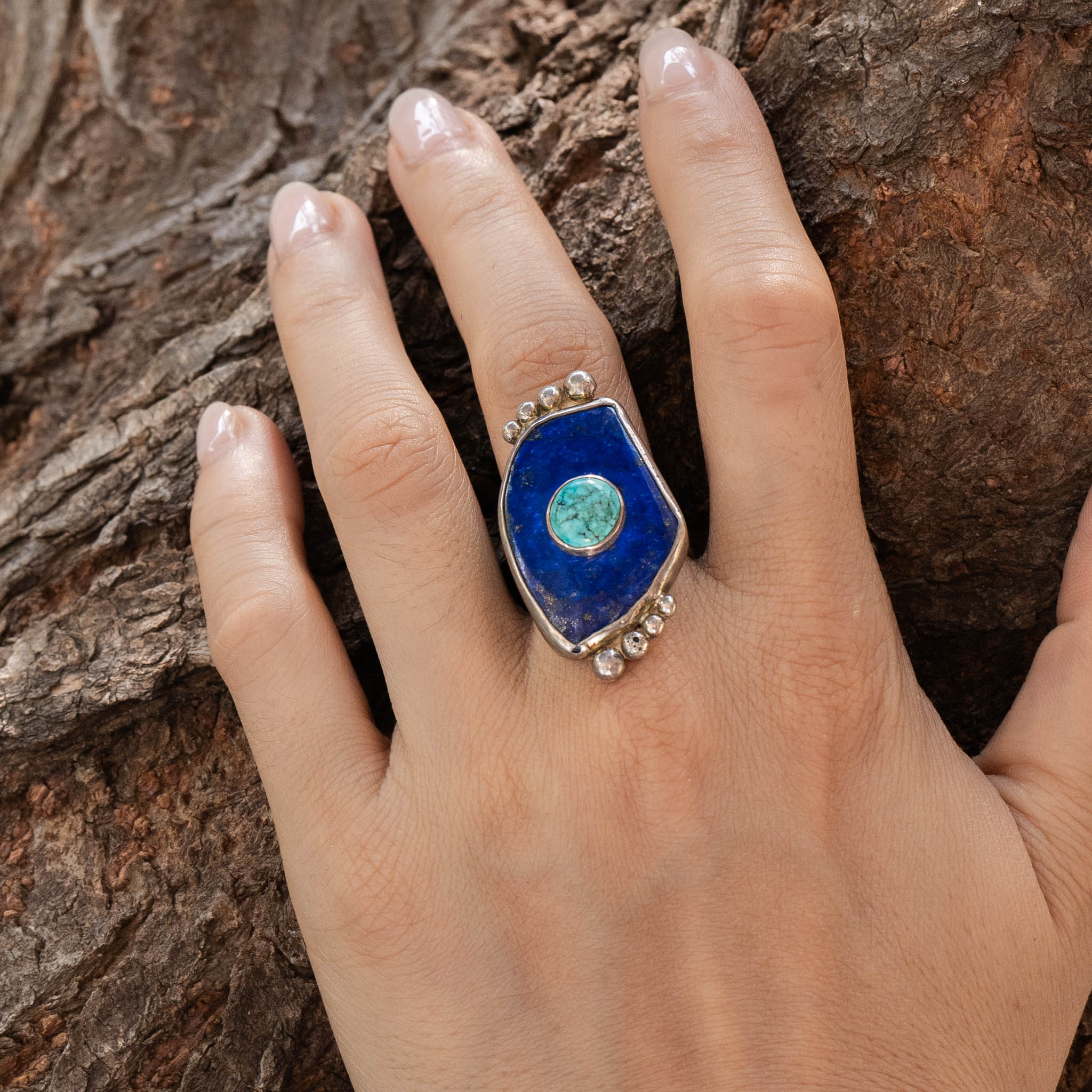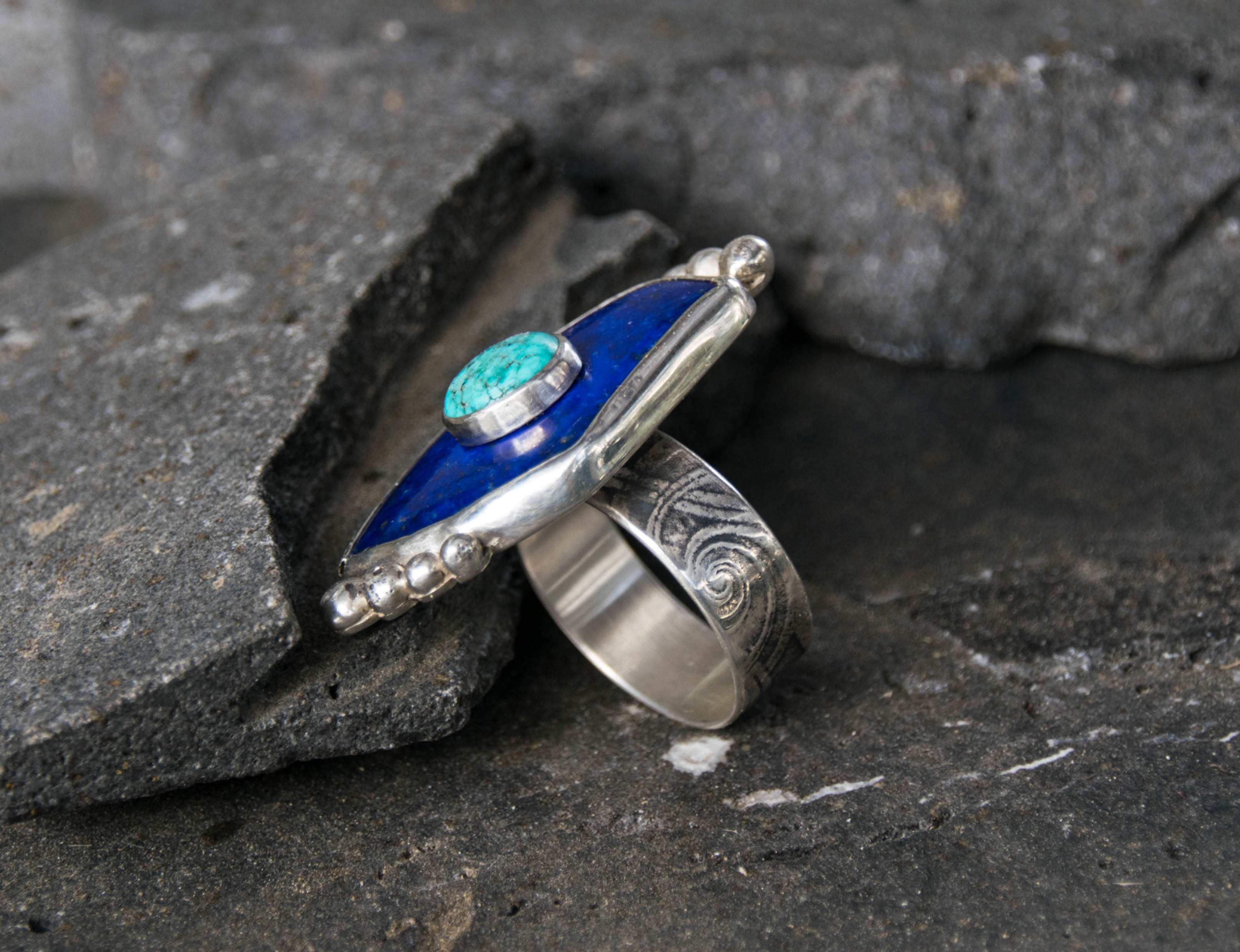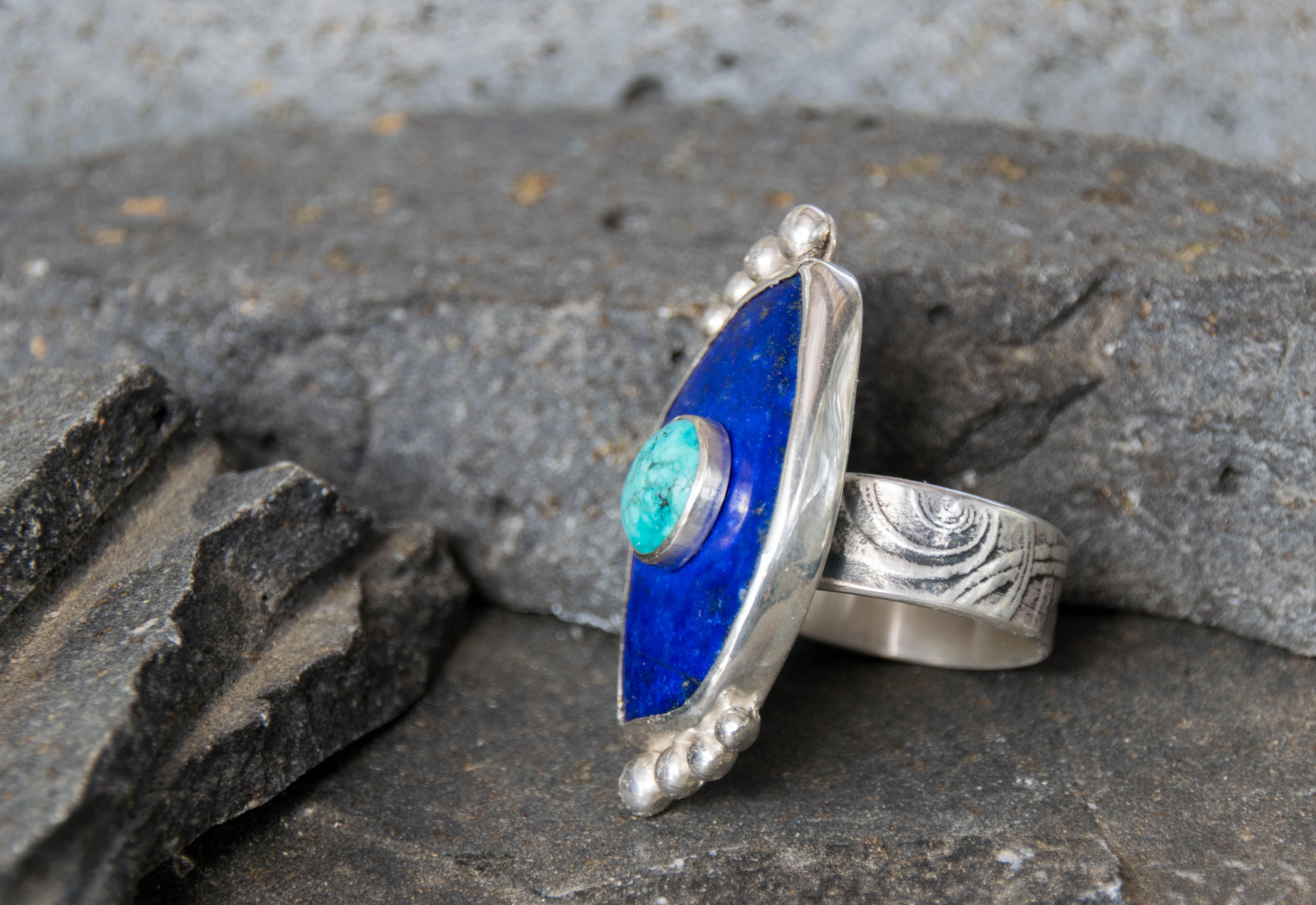Lapis Lazuli With Turquoise Stone On Stone Ring