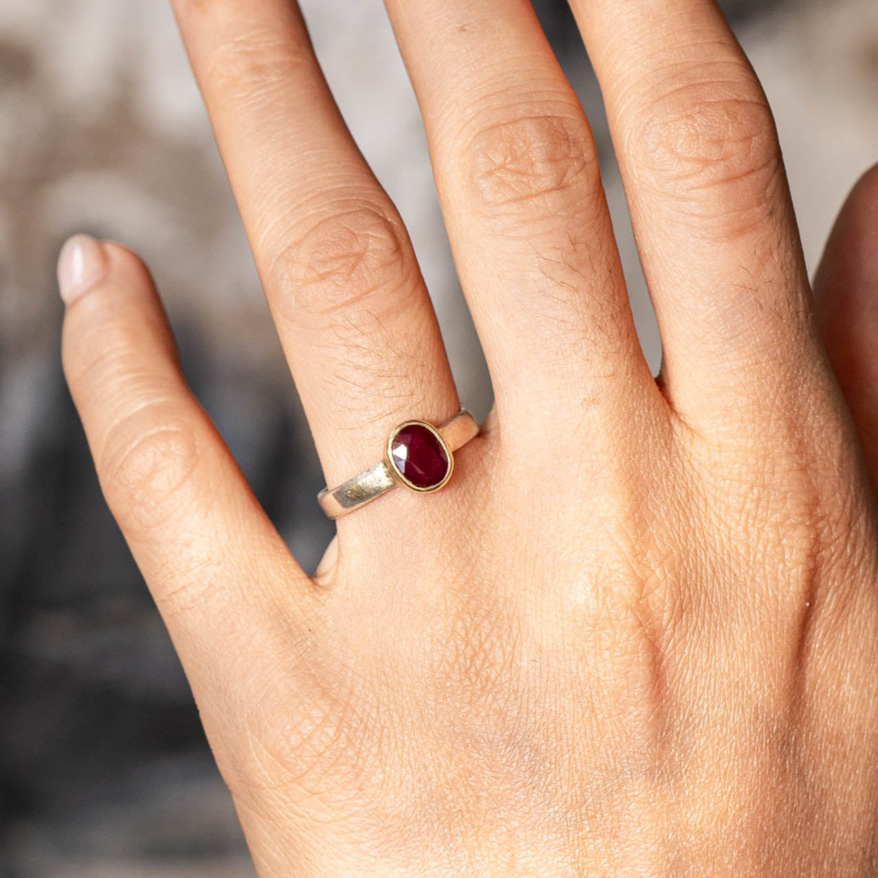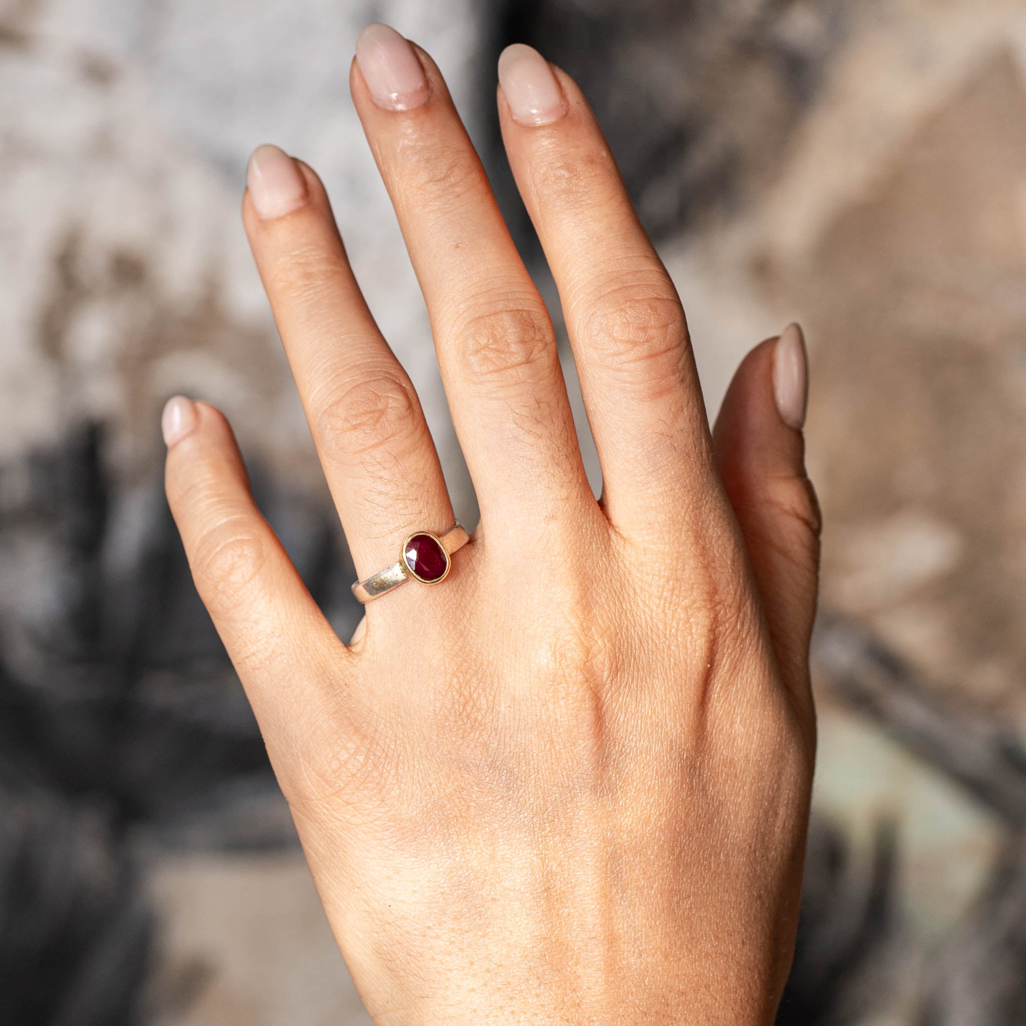 "SUNRISE" Ruby Gold and Silver Ring