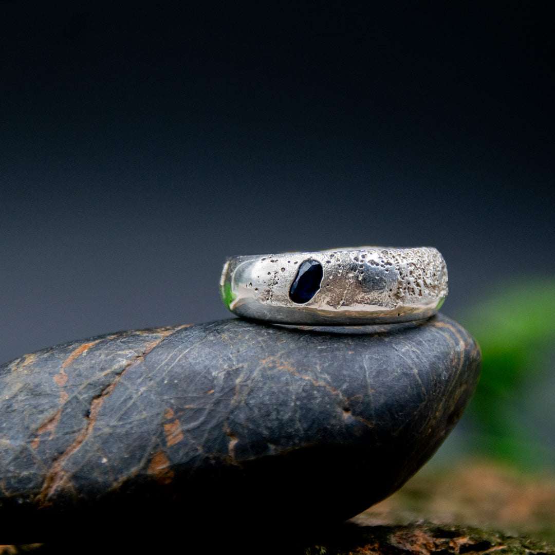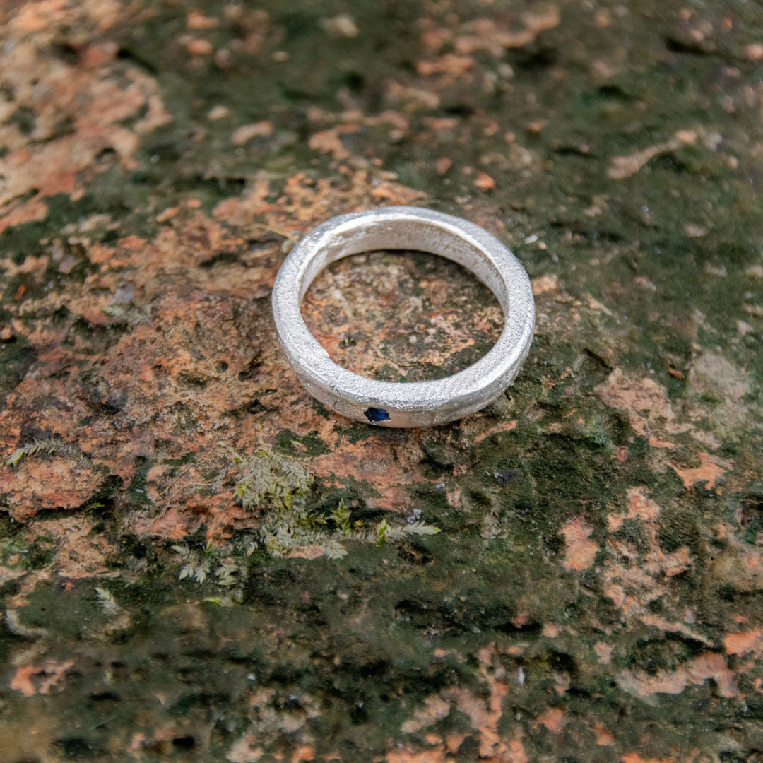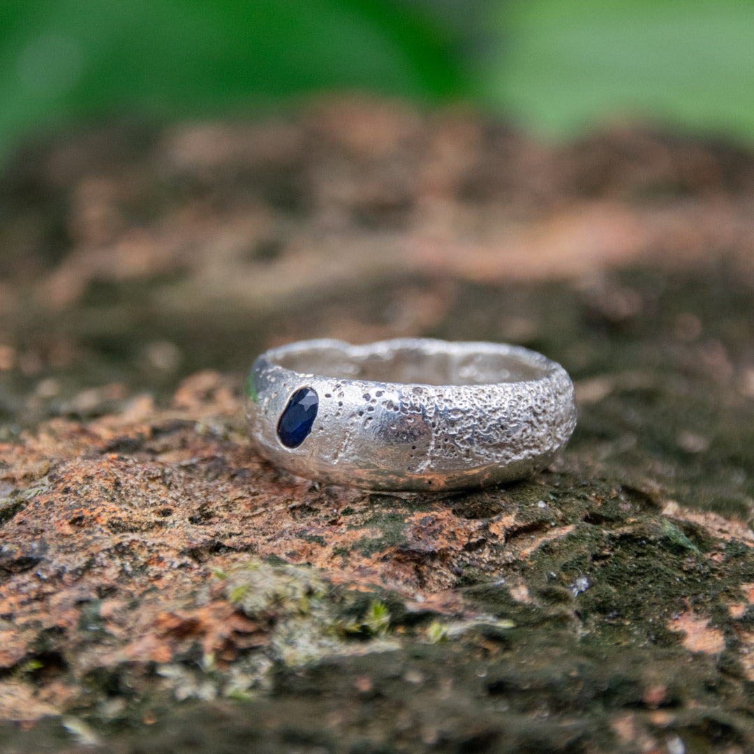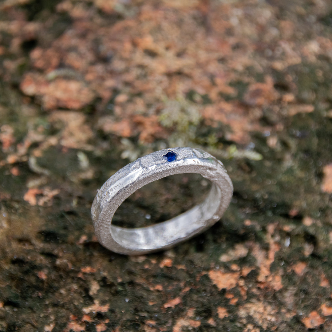 "BLUE STAR" Sandcasted Ring with Sapphire