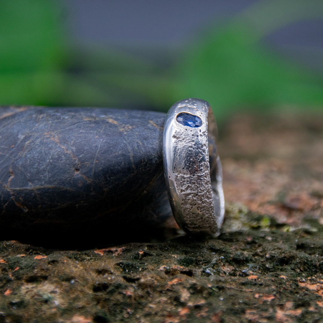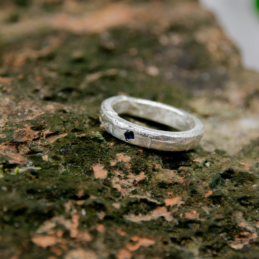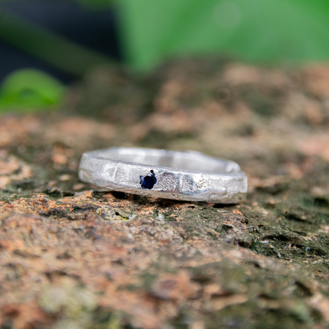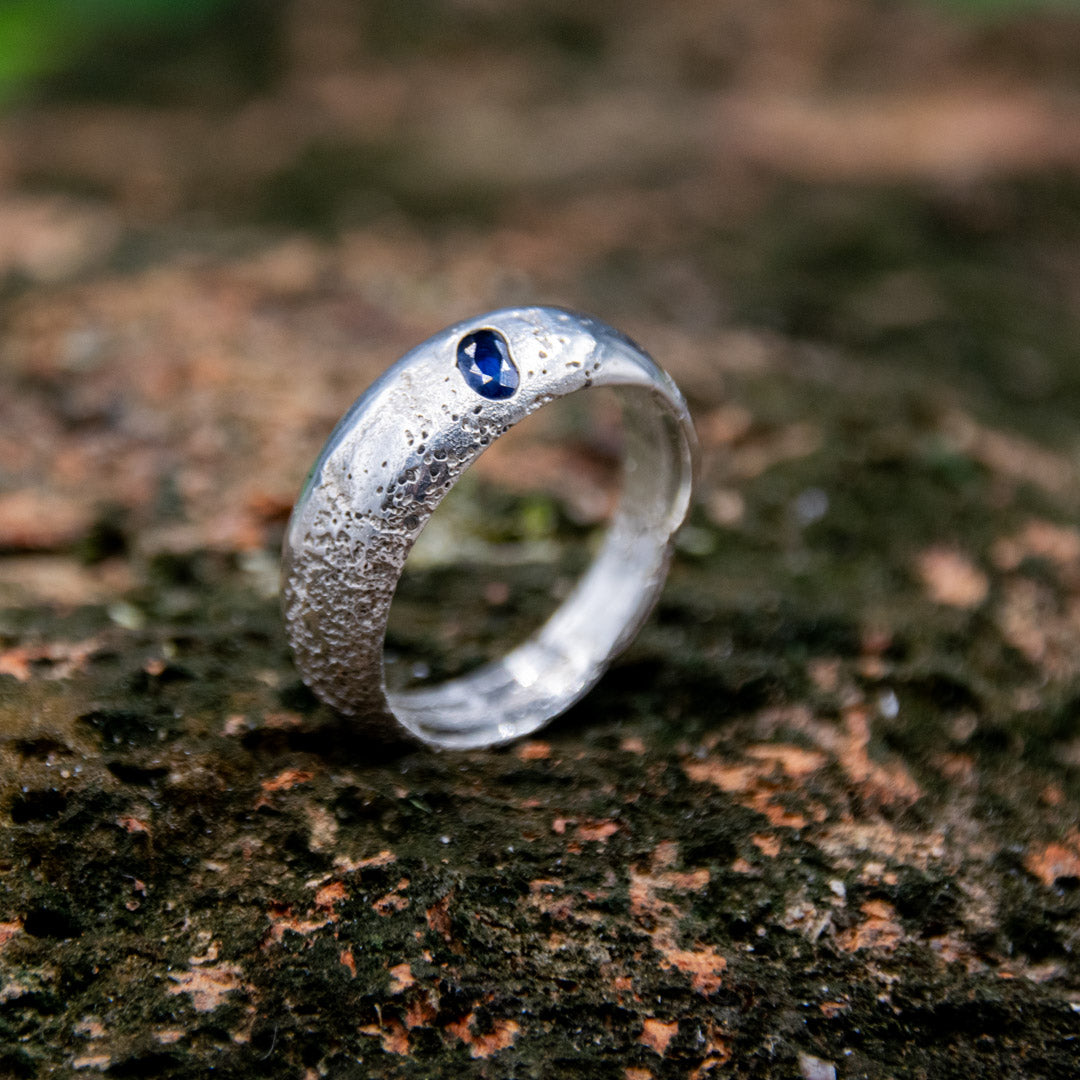"BLUE STAR" Sandcasted Ring with Sapphire