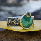Dive into a realm of tactile beauty with our Texture Ring featuring mesmerizing Turquoise reticulation. Crafted with meticulous detail, this ring invites you to explore its unique texture, reminiscent of windswept sands and rippling waters. The Turquoise, with its serene hue, adds a touch of tranquility to the ensemble, creating a captivating contrast against the rugged texture.
