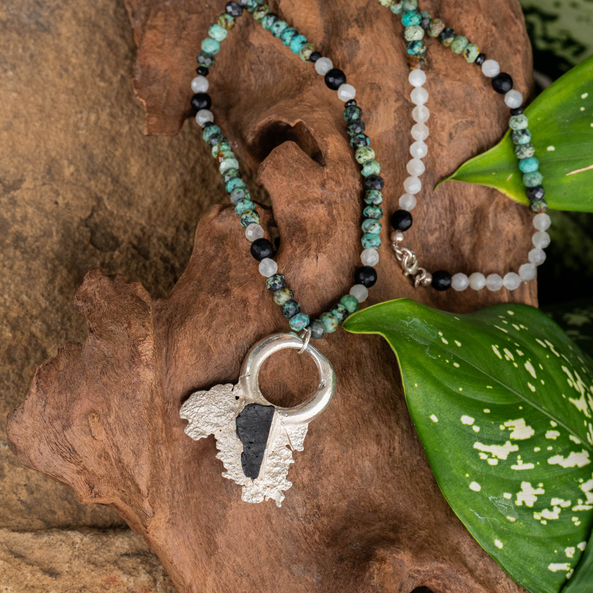 Bazalt Stone Casted in Silver, Turquoise Necklace