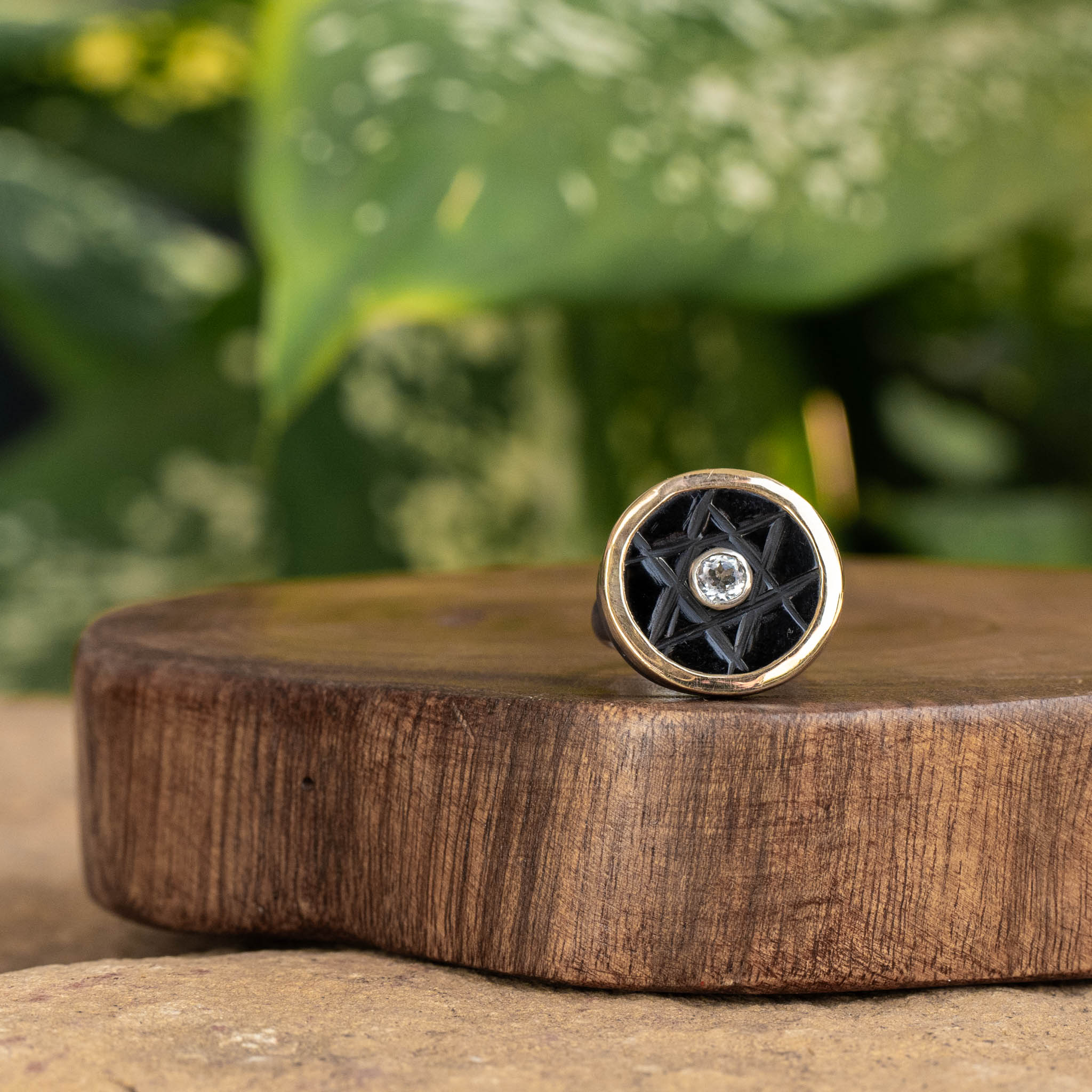 "STAR" Salt & Pepper Diamond and Ruby Gold Ring