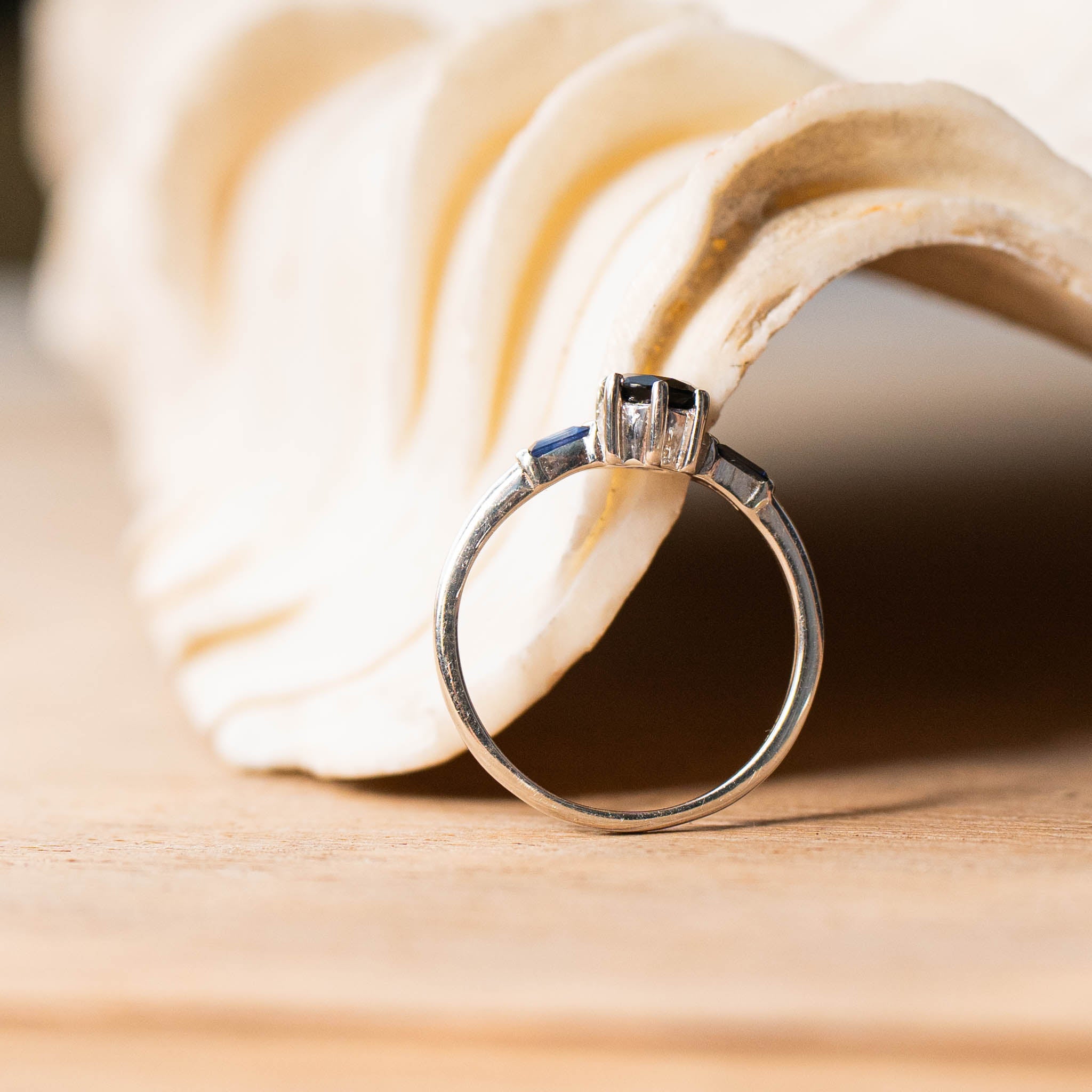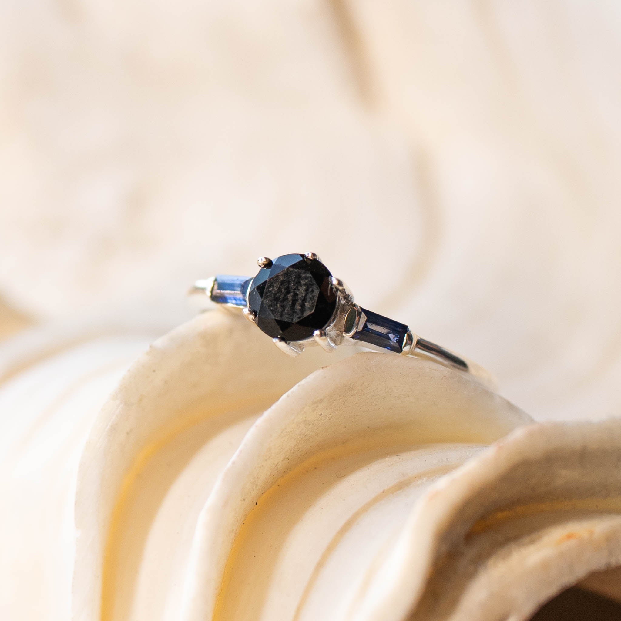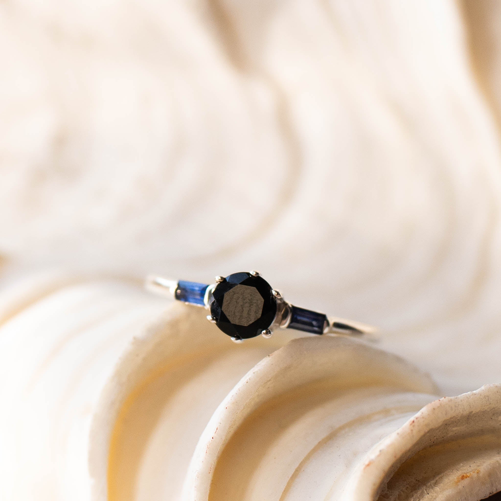 "NIGHT" Black Onyx and Blue Sapphire Gold Ring or Sterling Silver