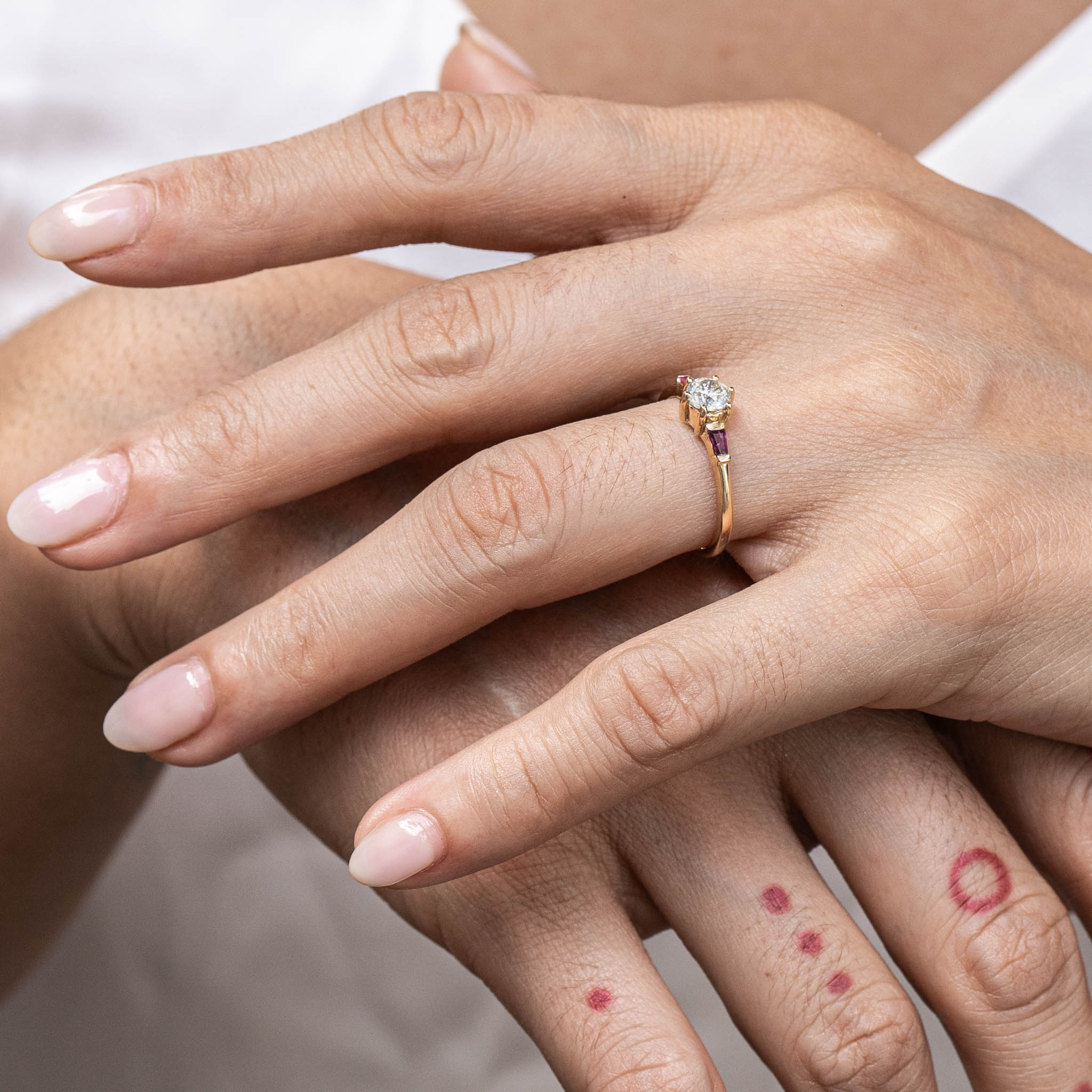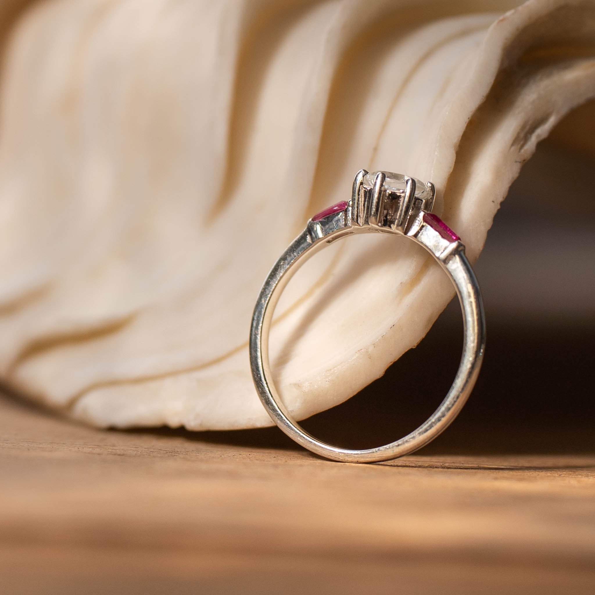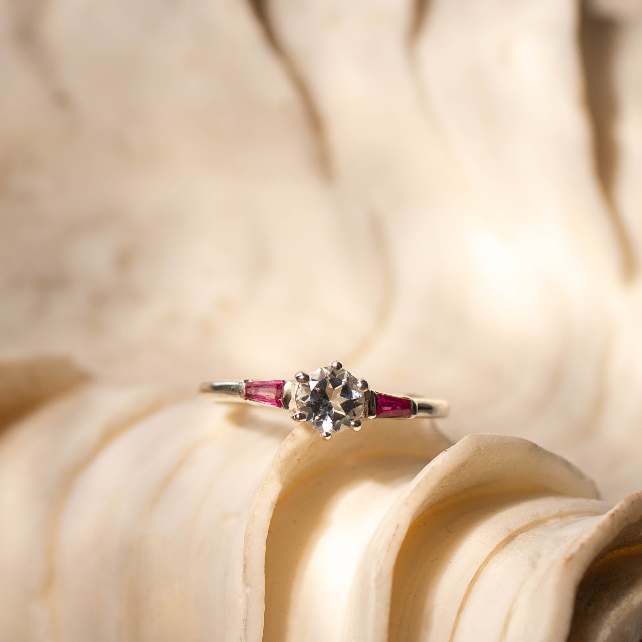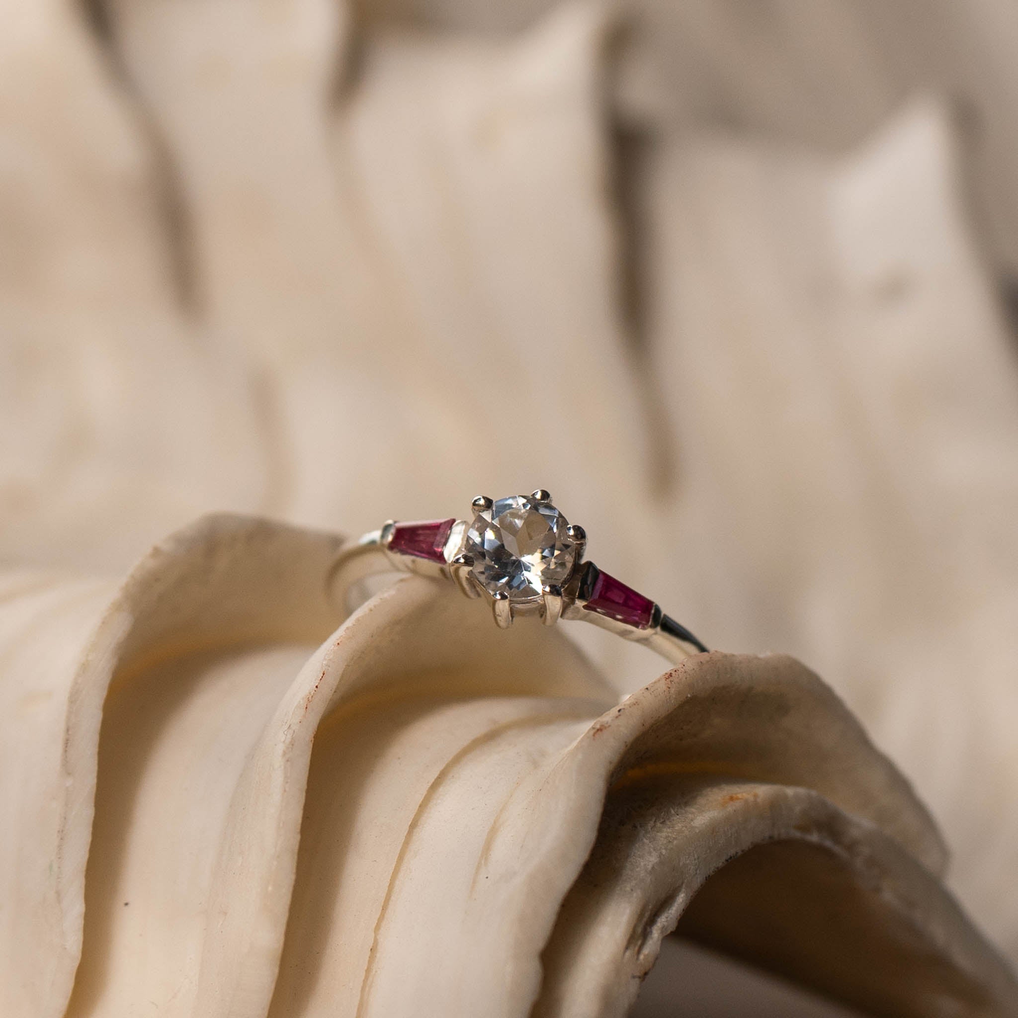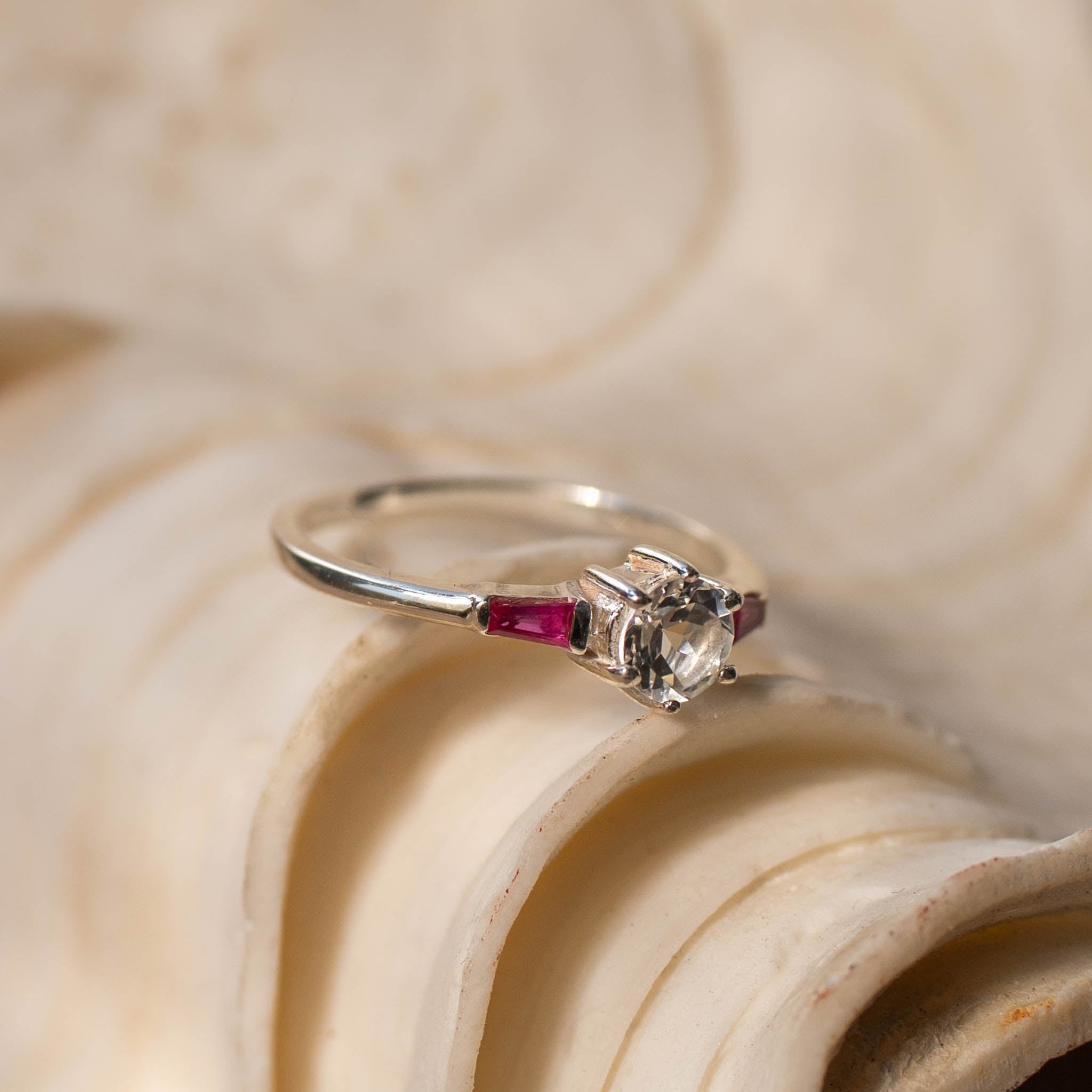 "LUNA" White Topaz and Ruby Gold Ring or Sterling Silver