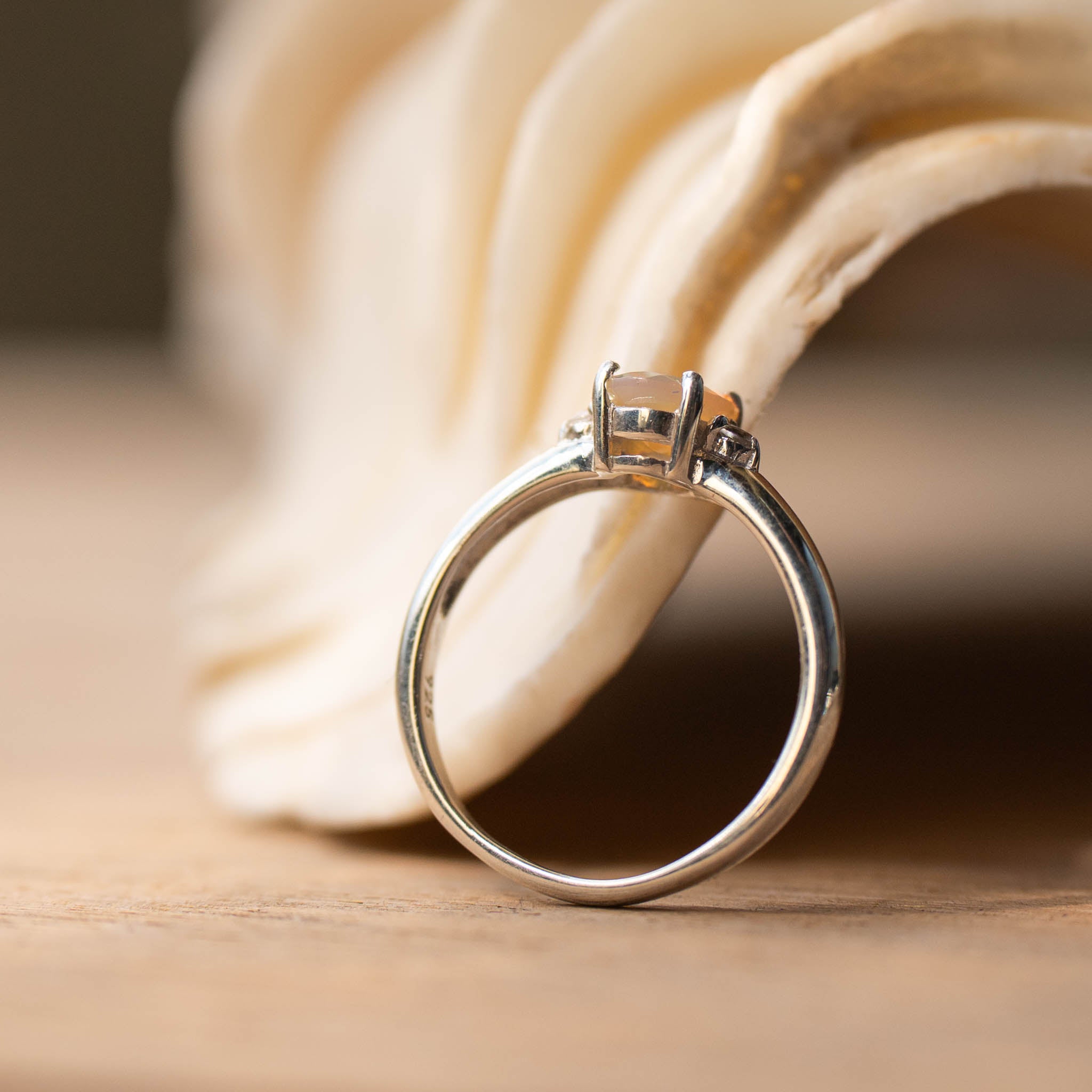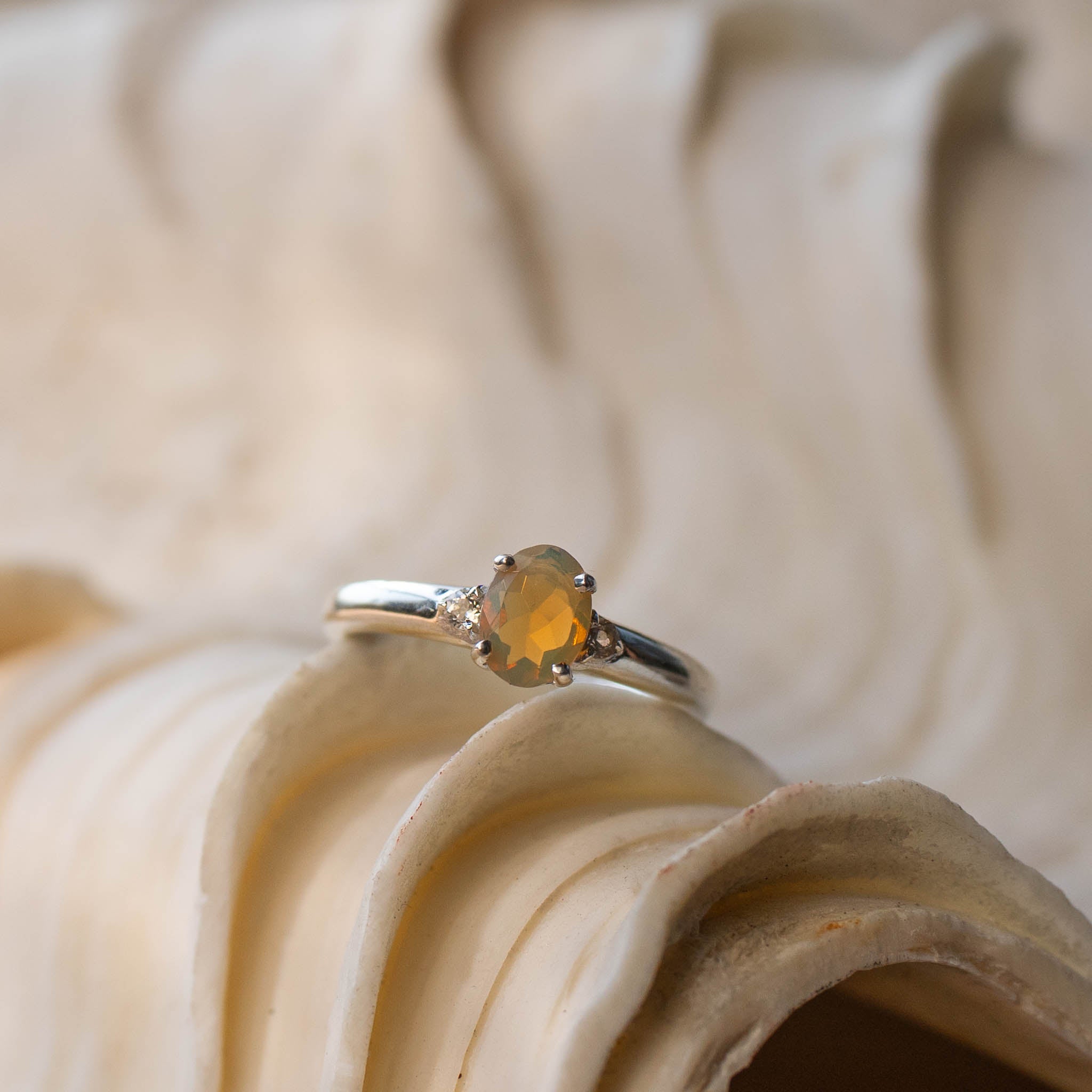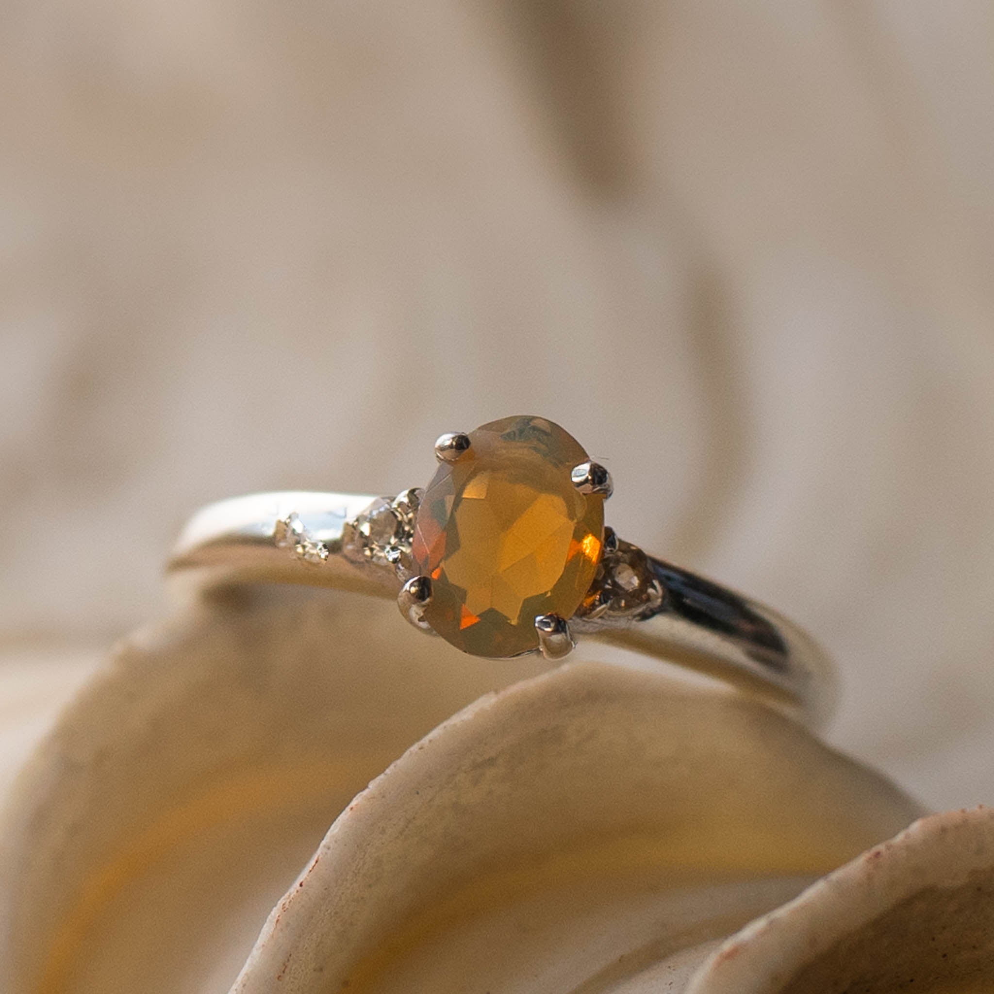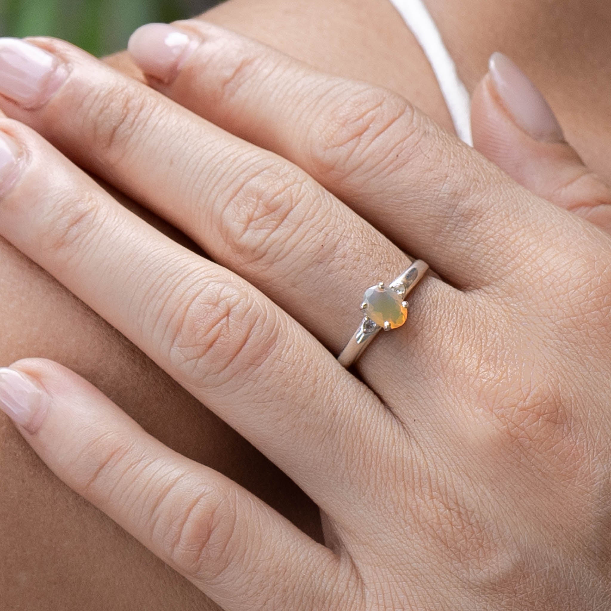 "SUNNY" Opal & White Topaz Gold Ring or Sterling Silver