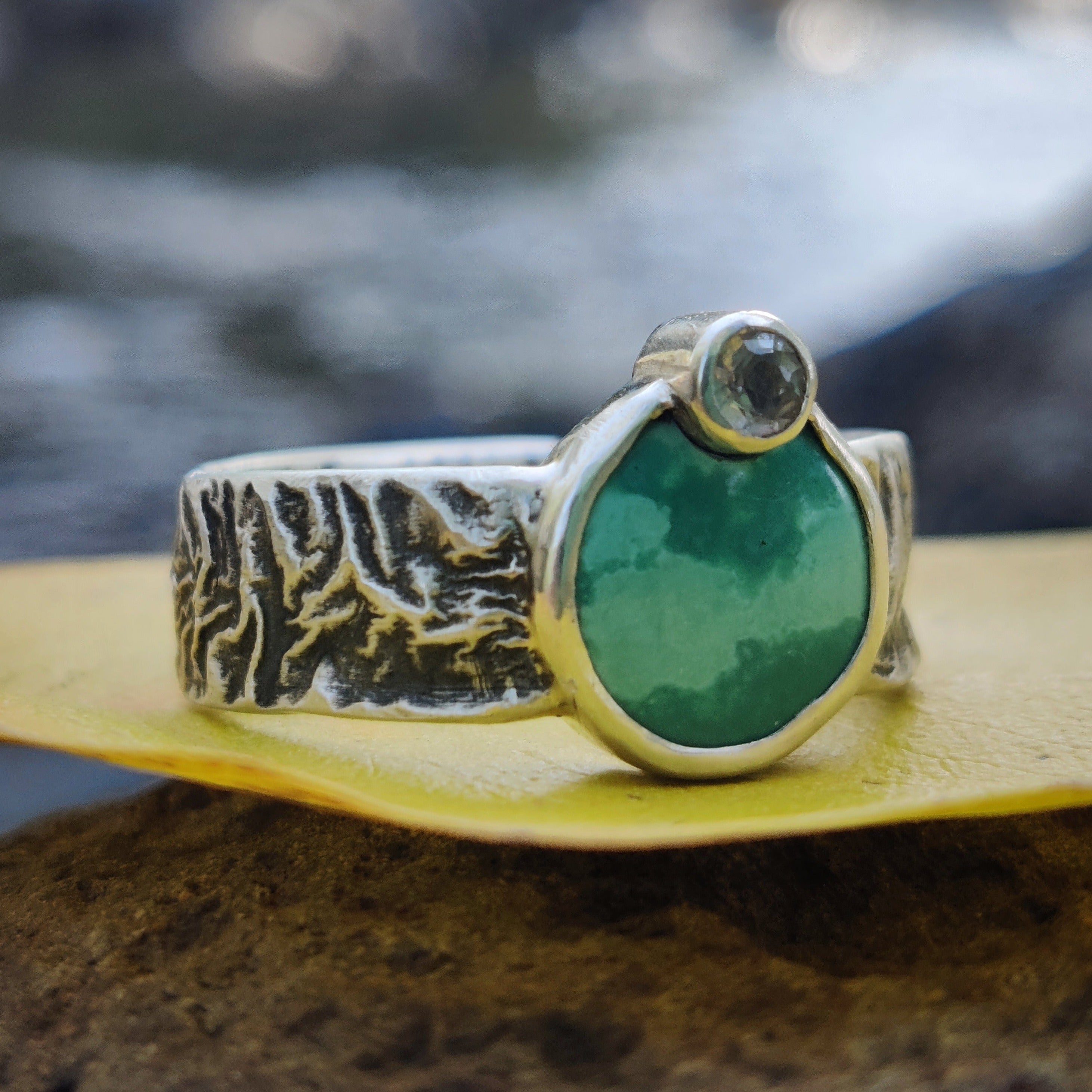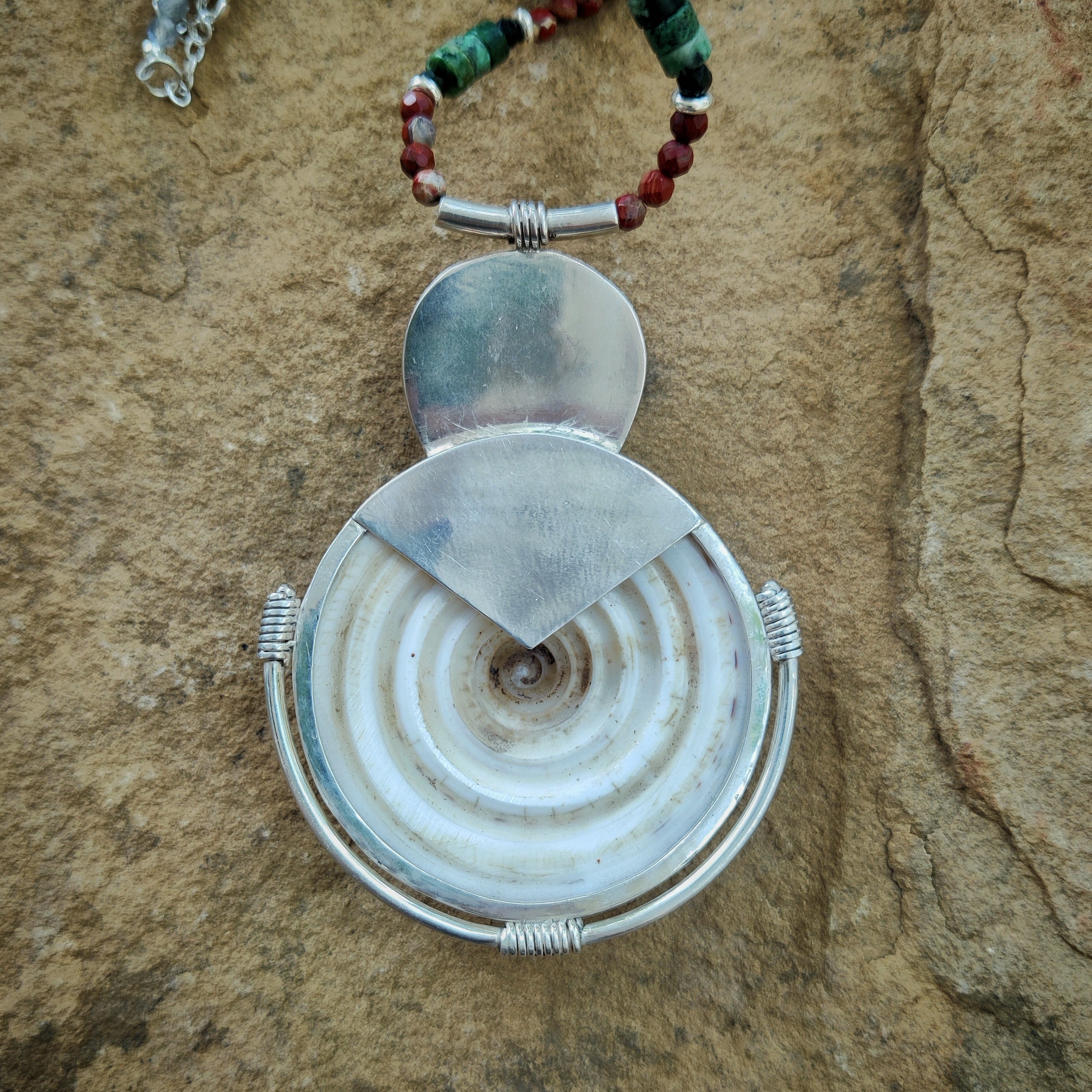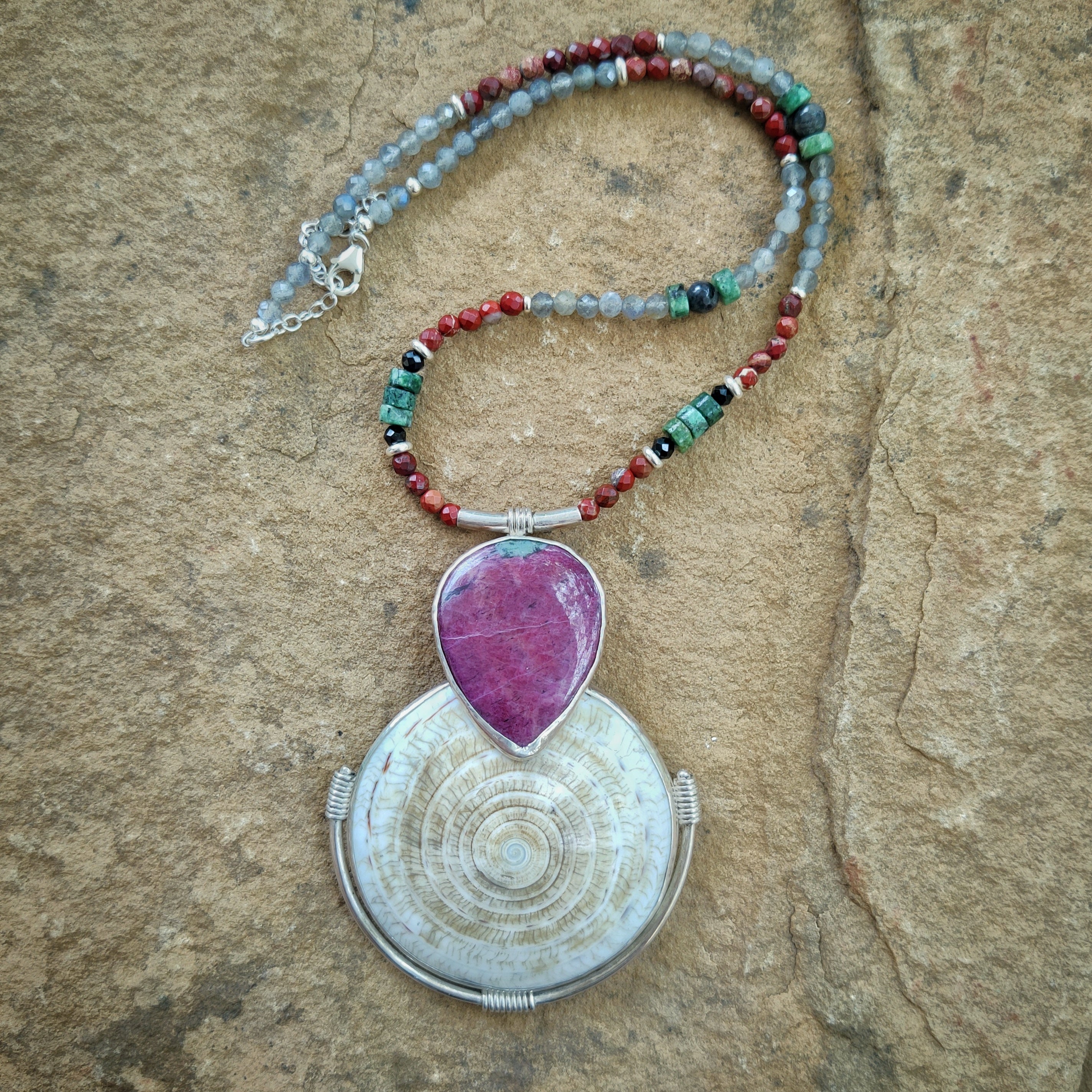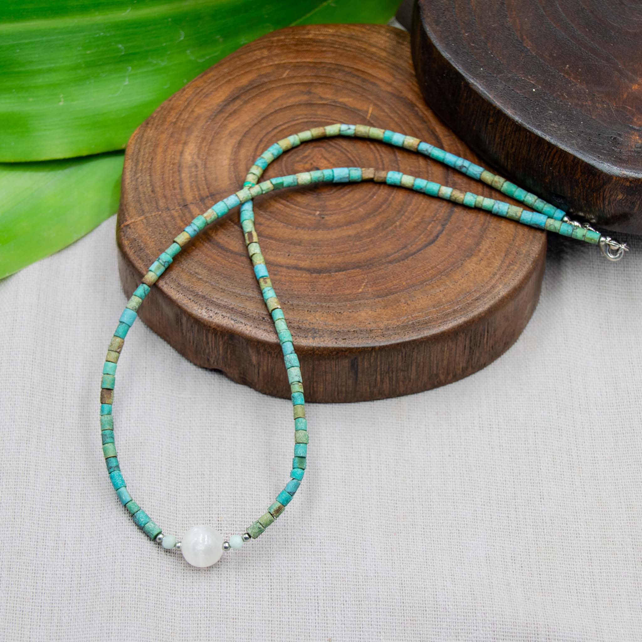 Bazalt Stone Casted in Silver, Turquoise Necklace
