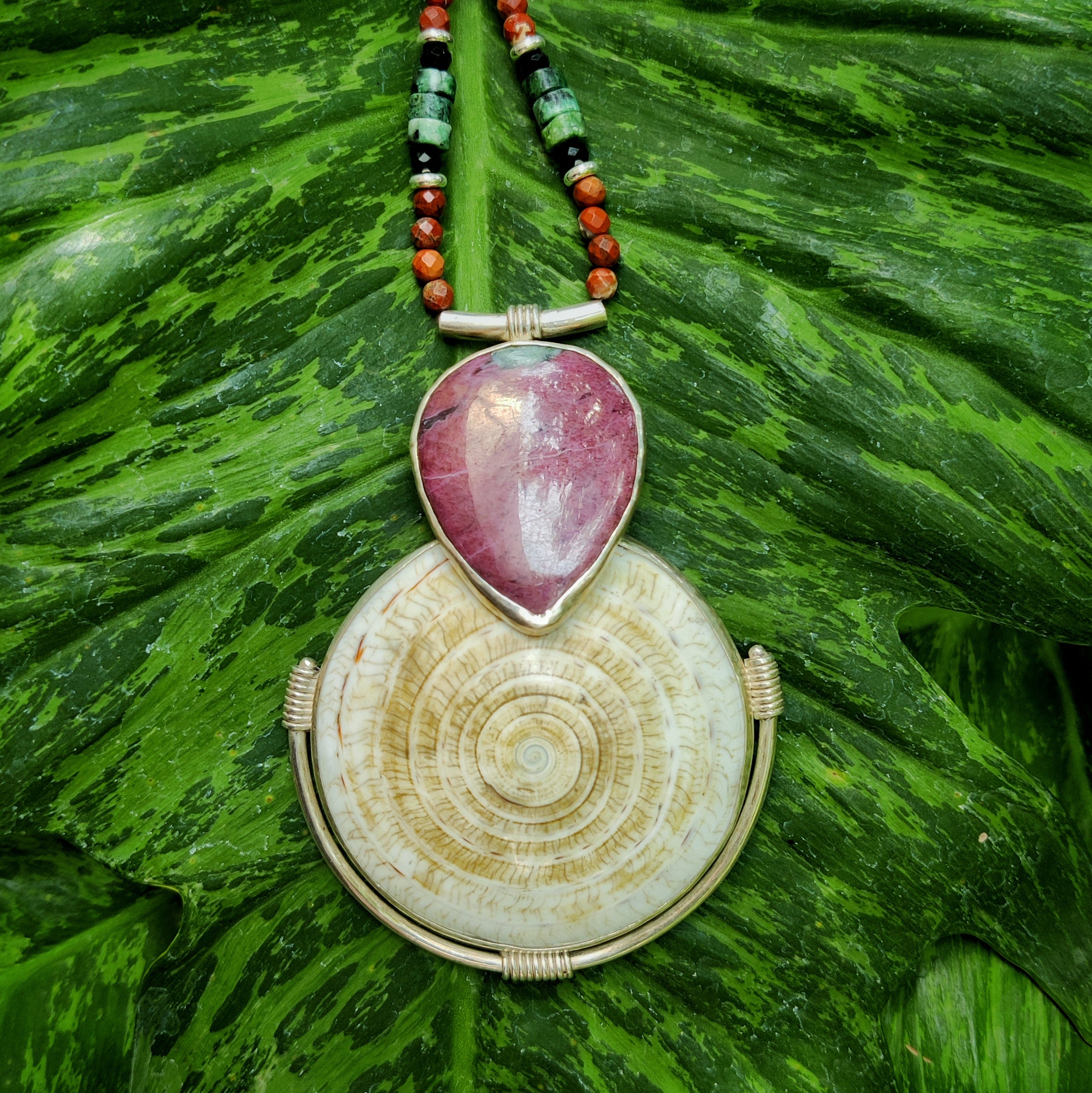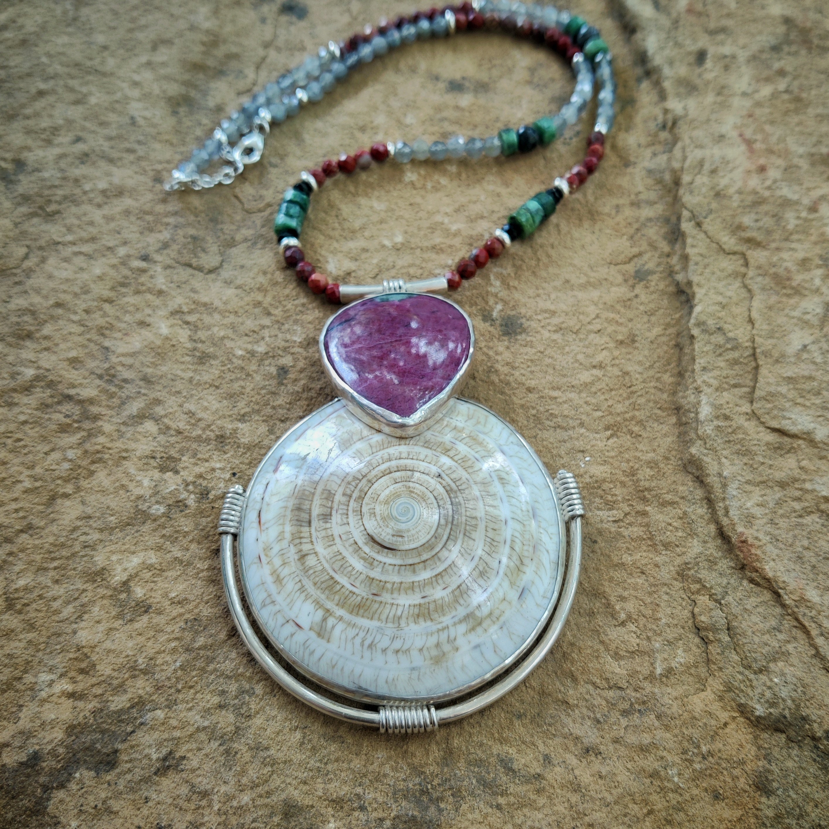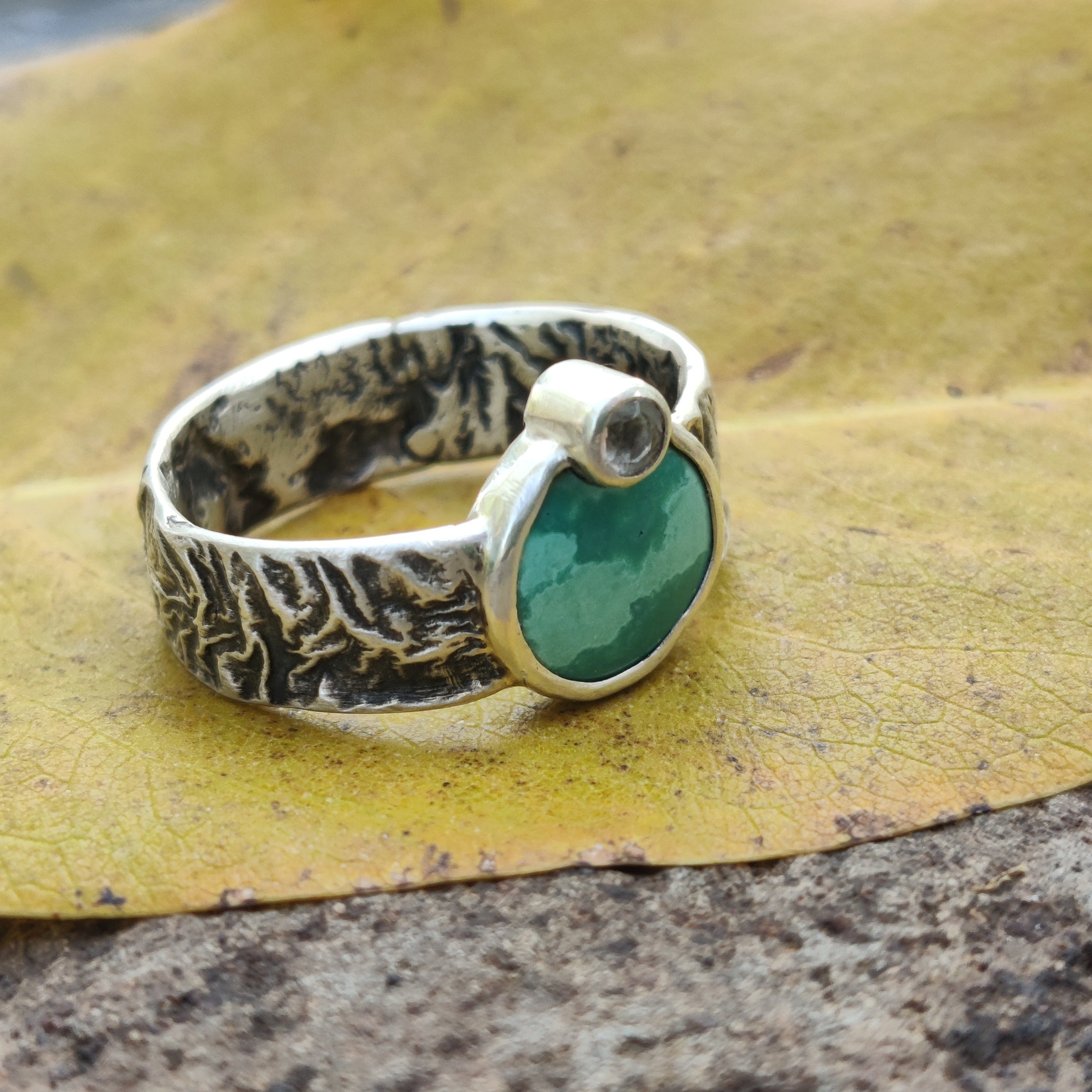 Bazalt Stone Casted in Silver, Turquoise Necklace