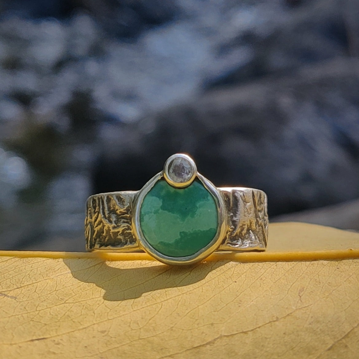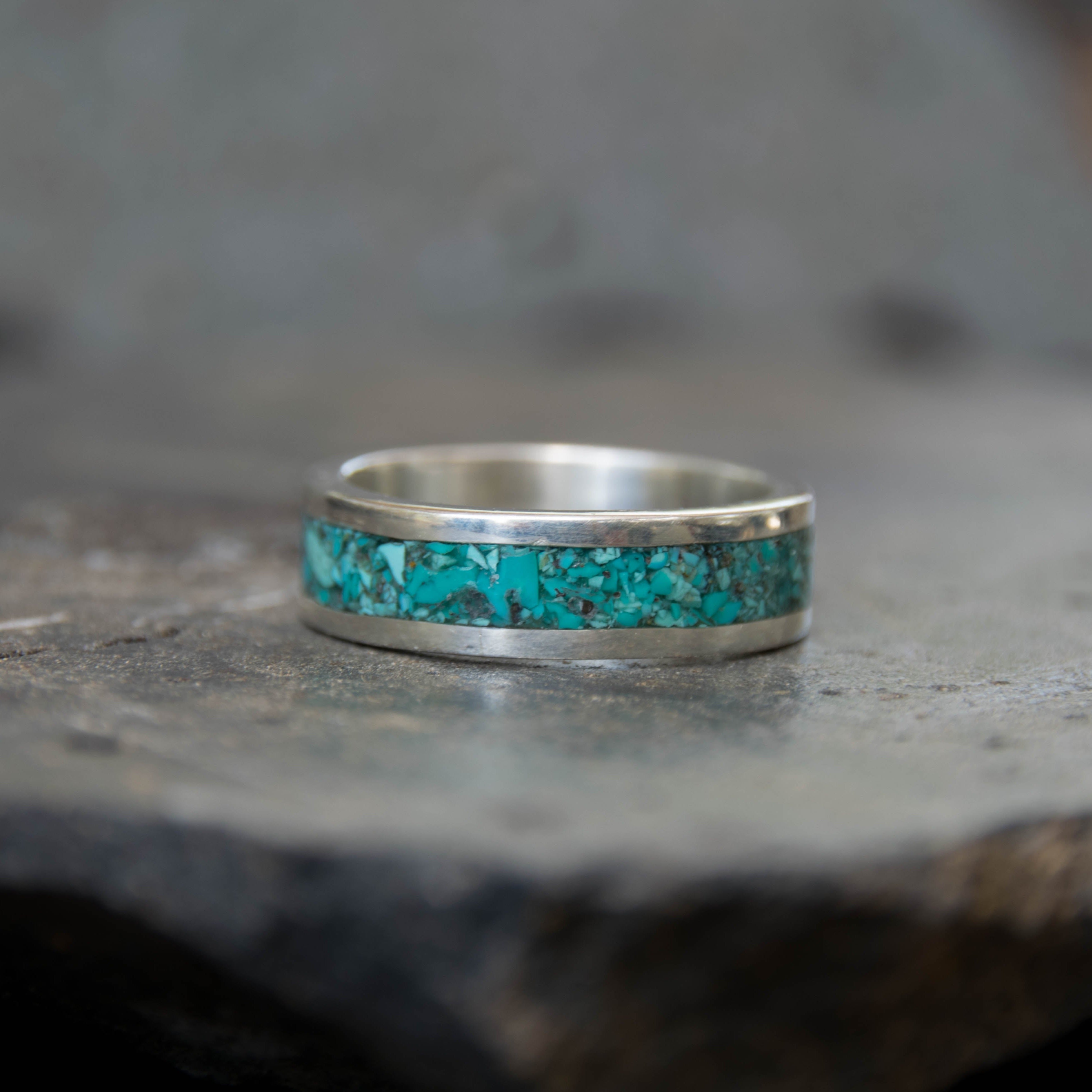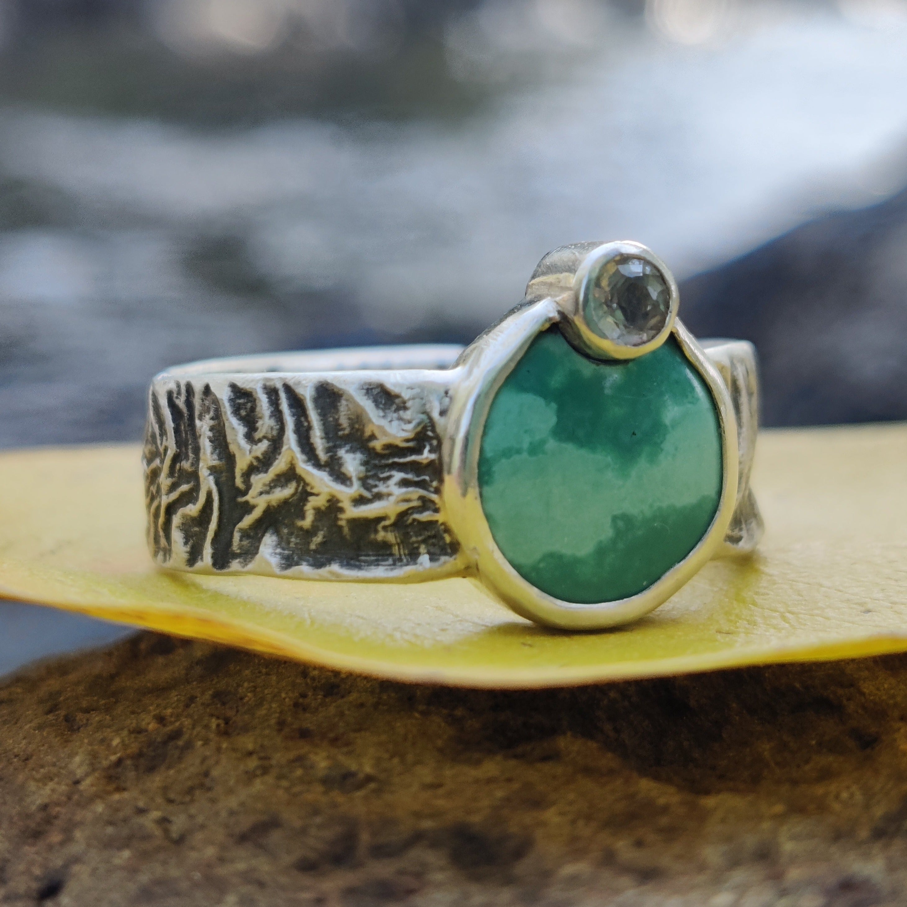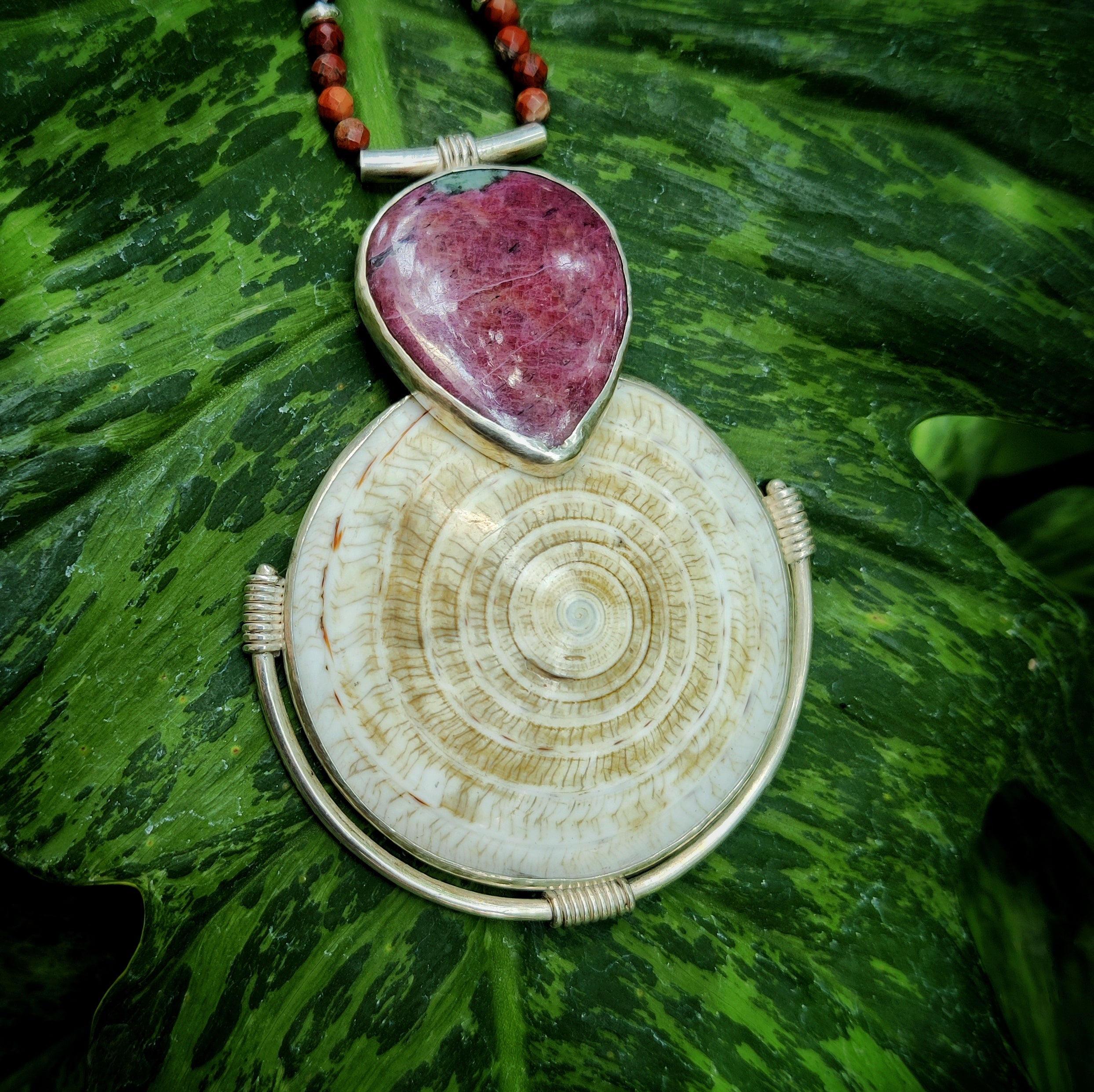 Bazalt Stone Casted in Silver, Turquoise Necklace