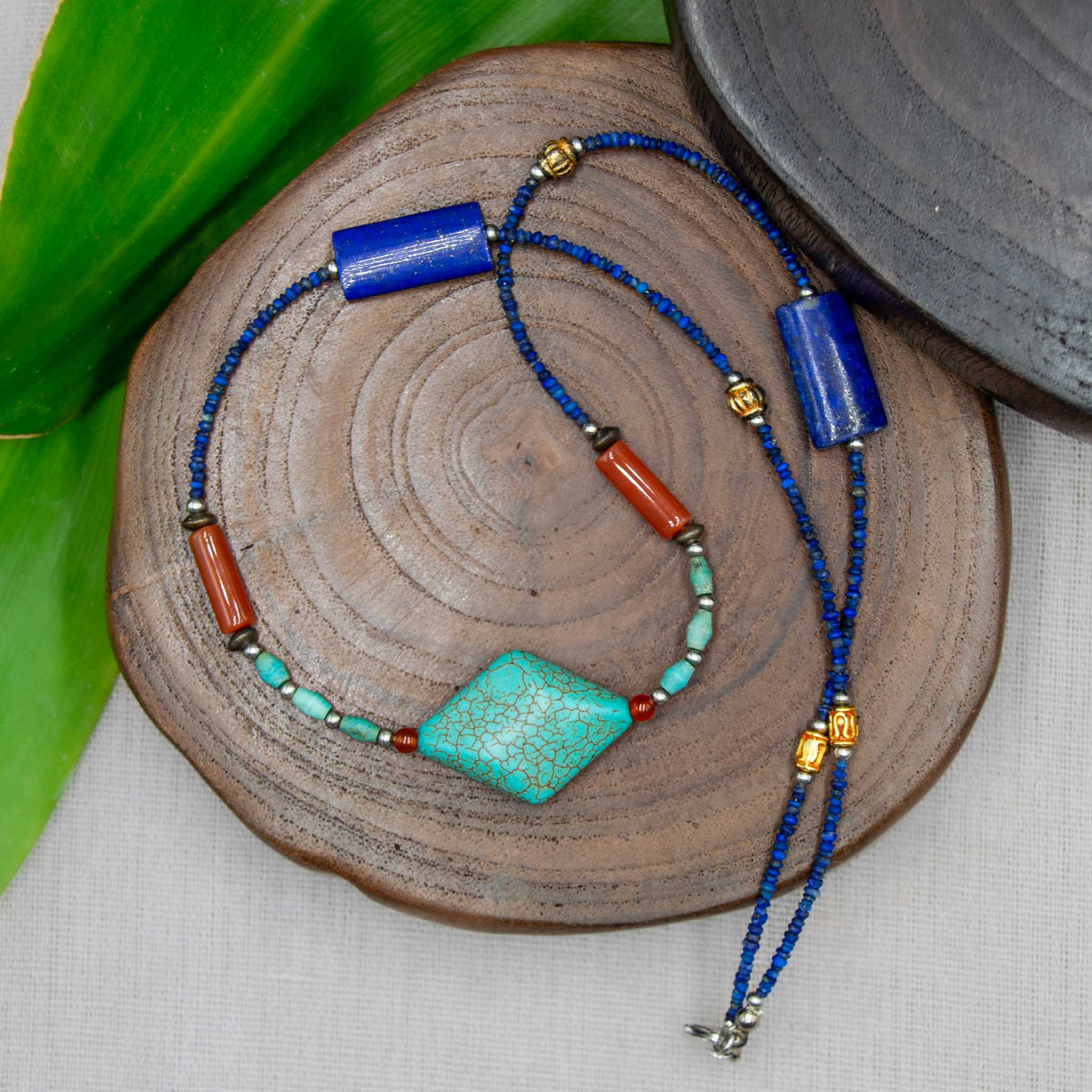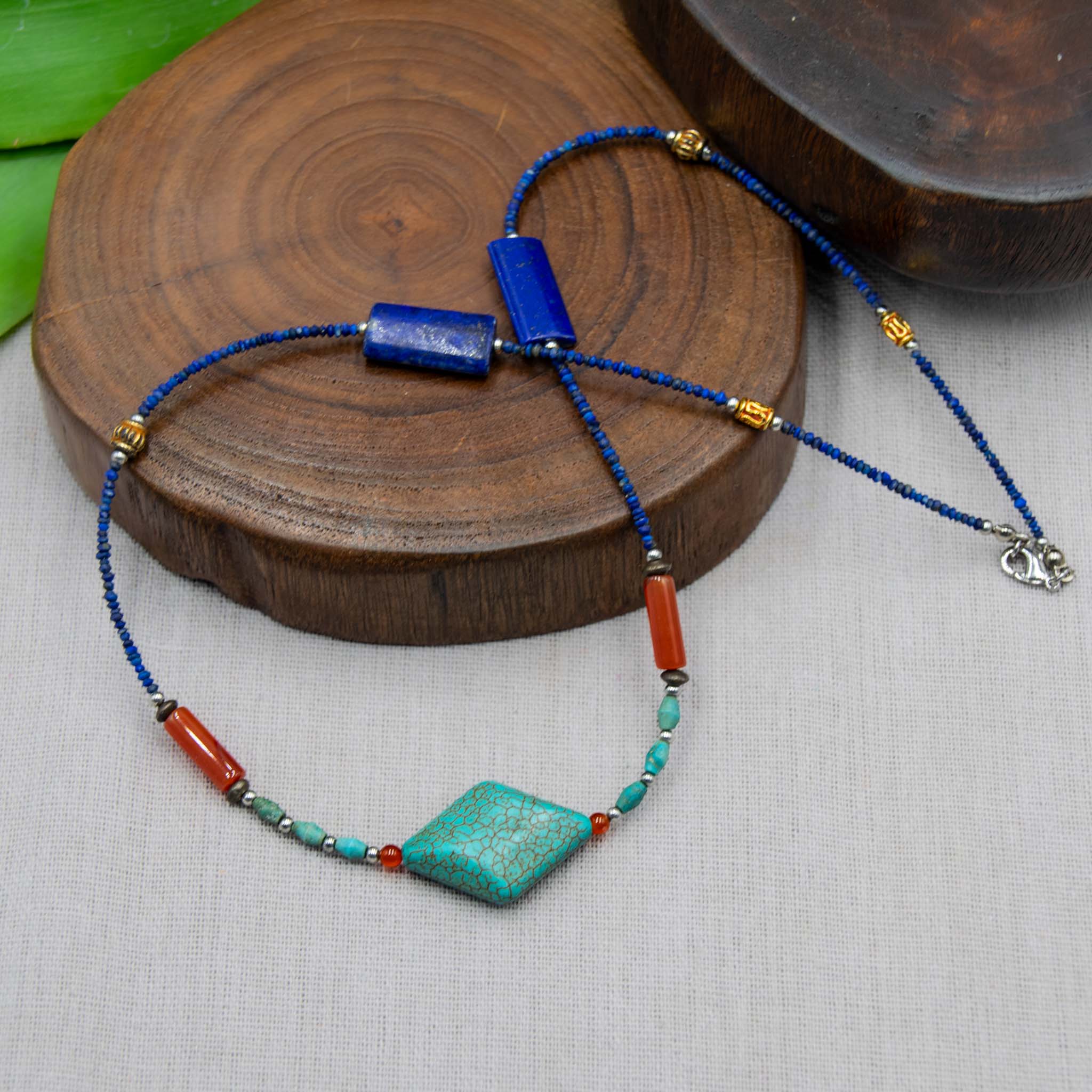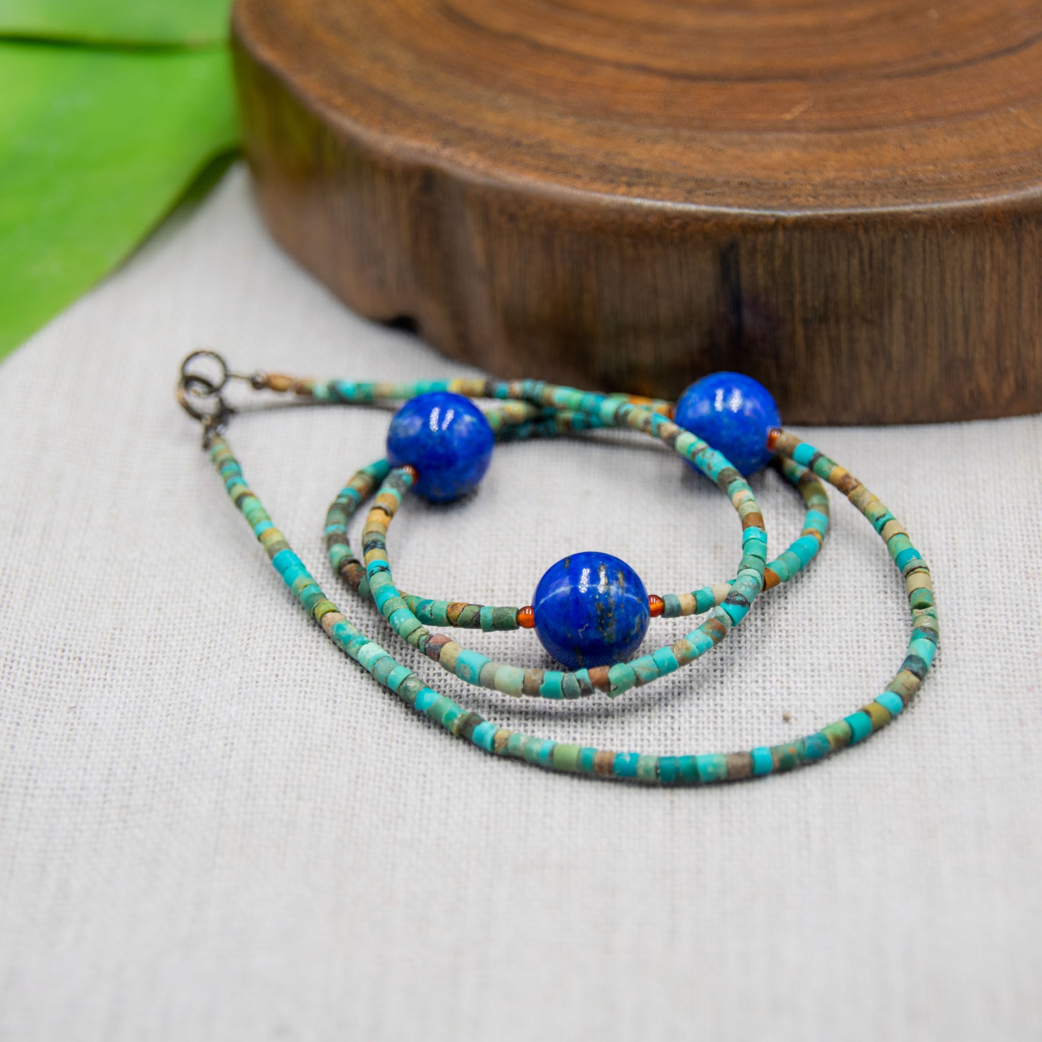 Delicate Turquoise & Lapis Lazuli Beads Necklace