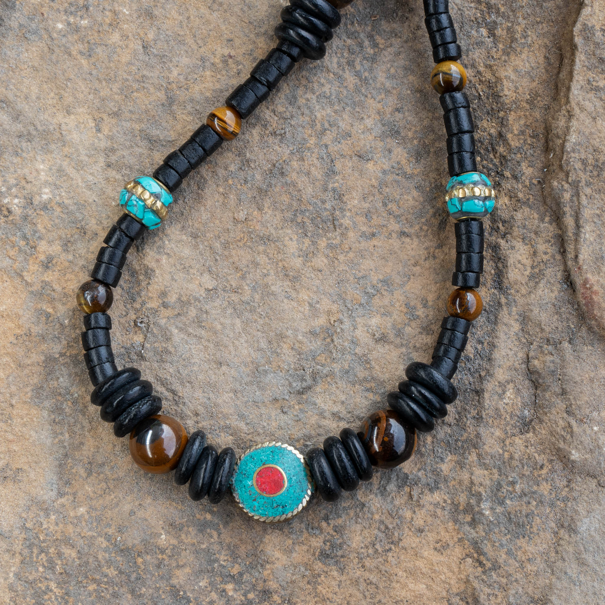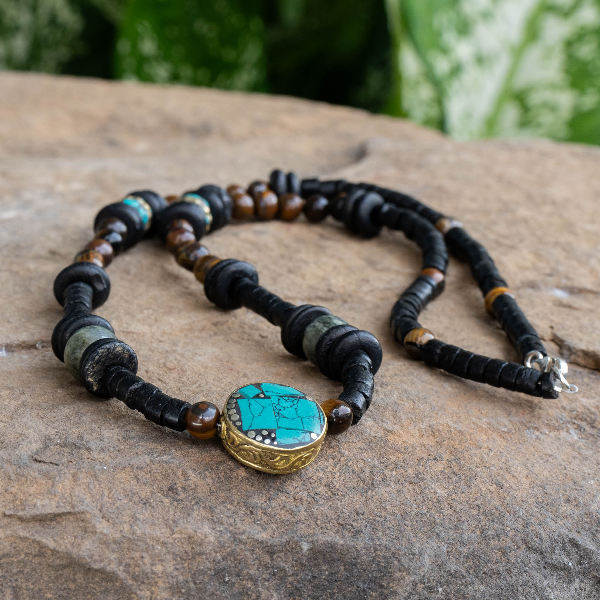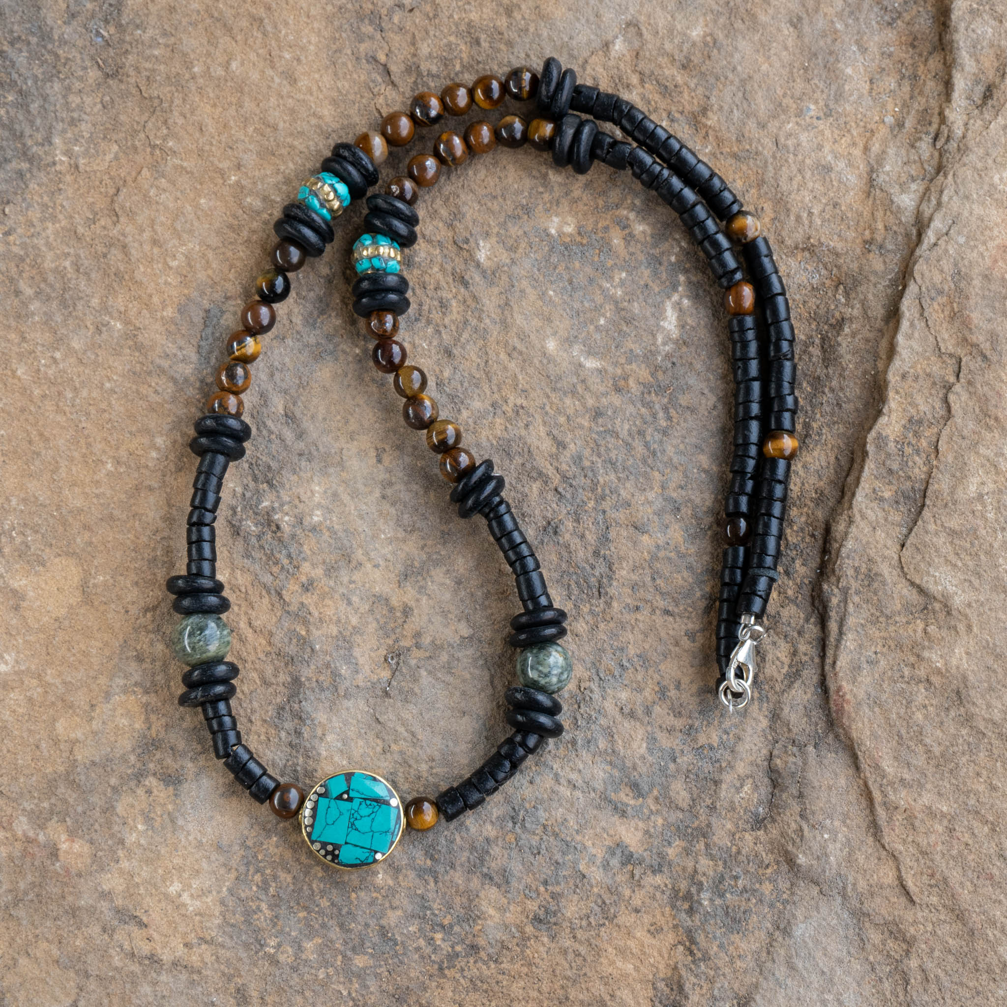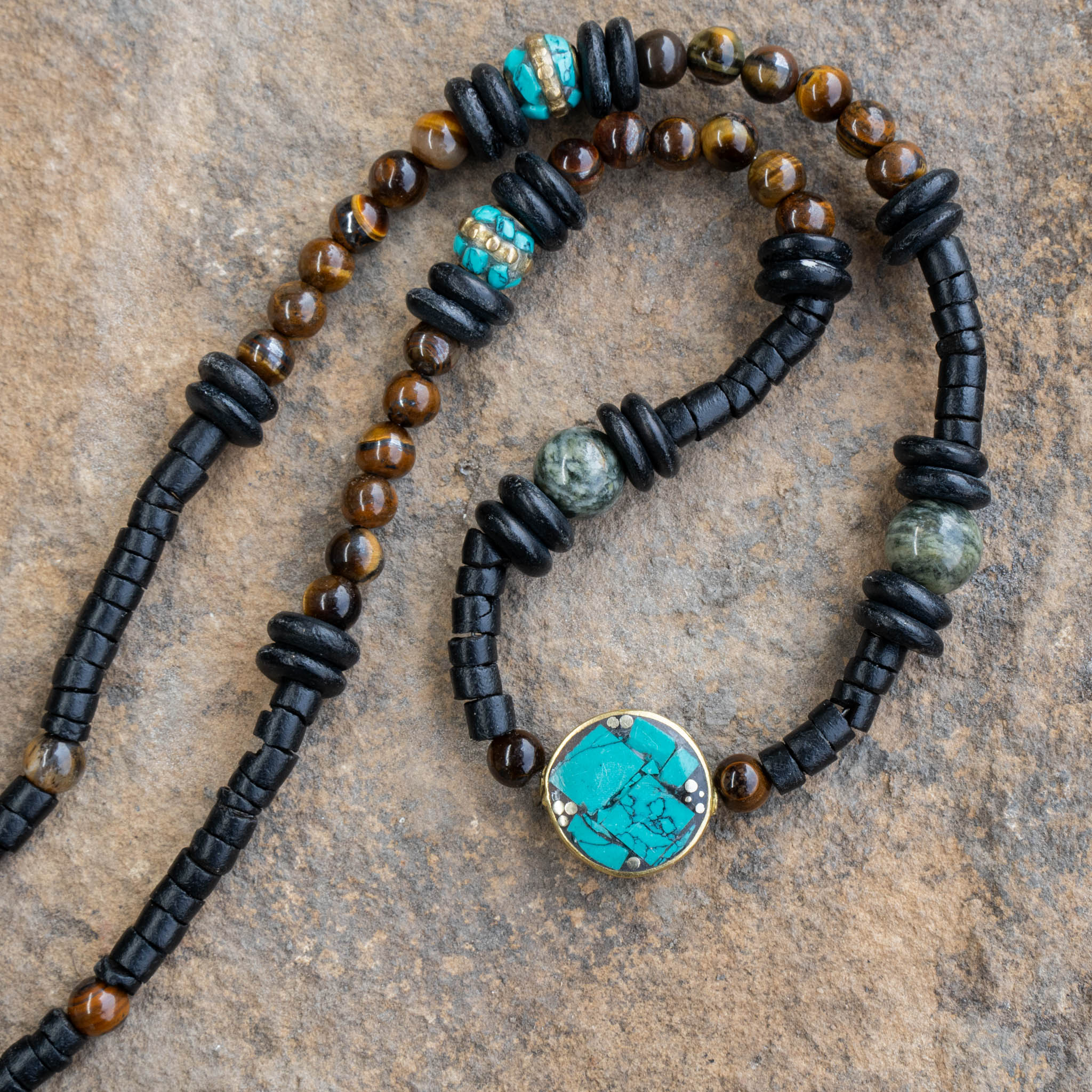 Tiger Eye, Turquoise, Coconut And Bone Necklace