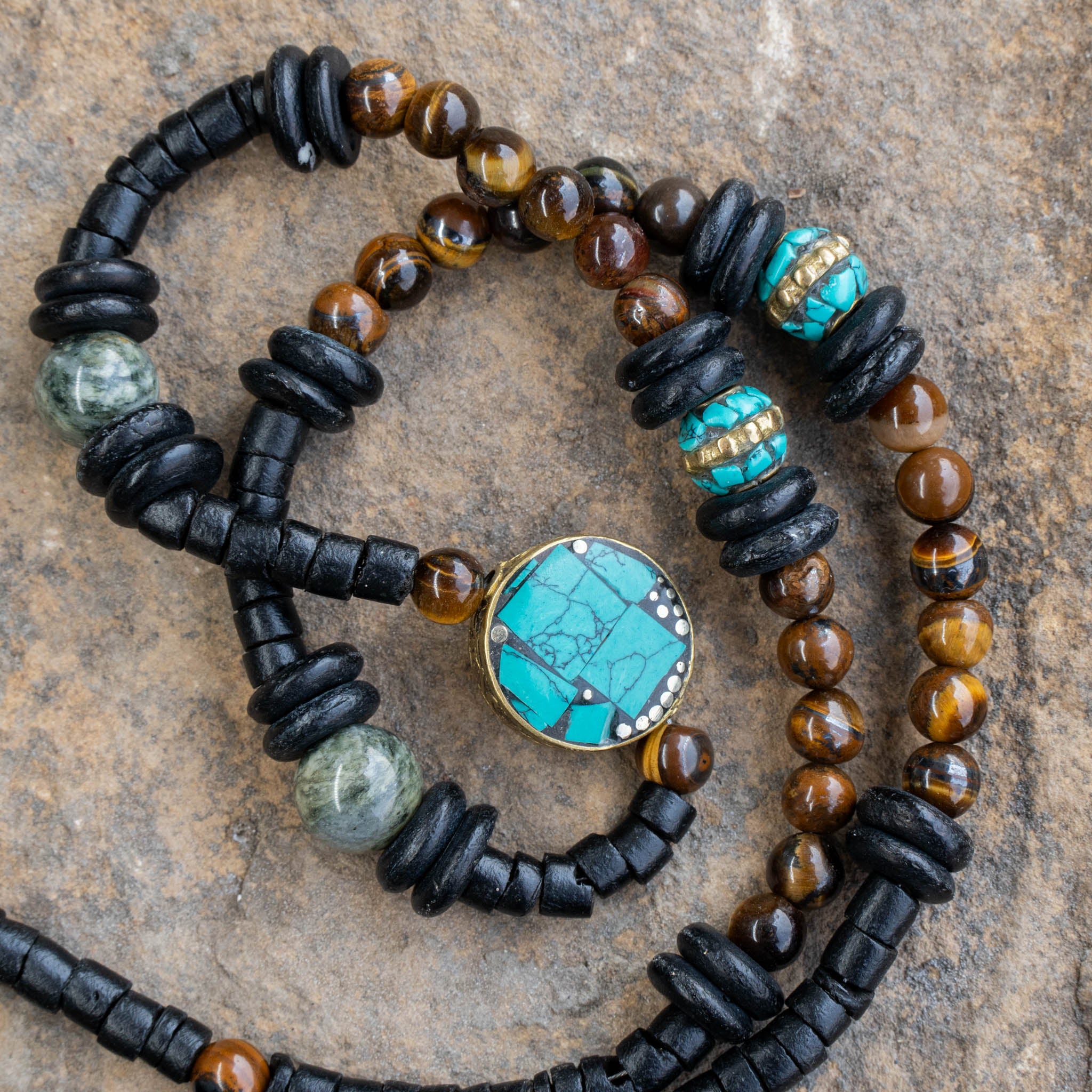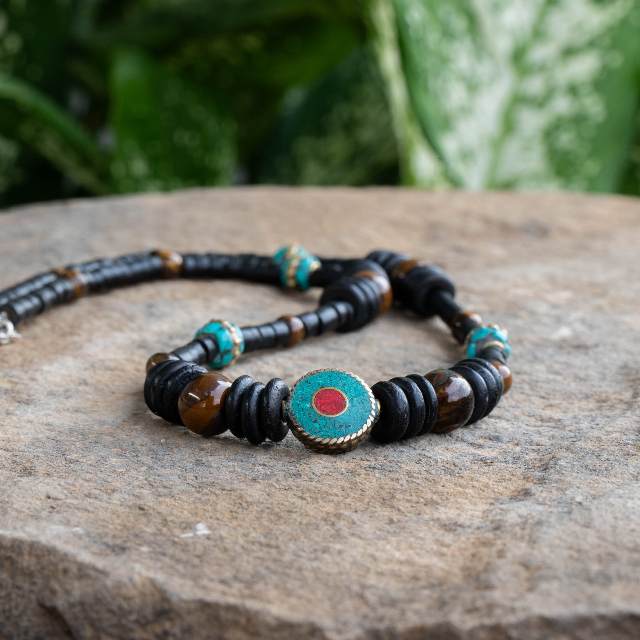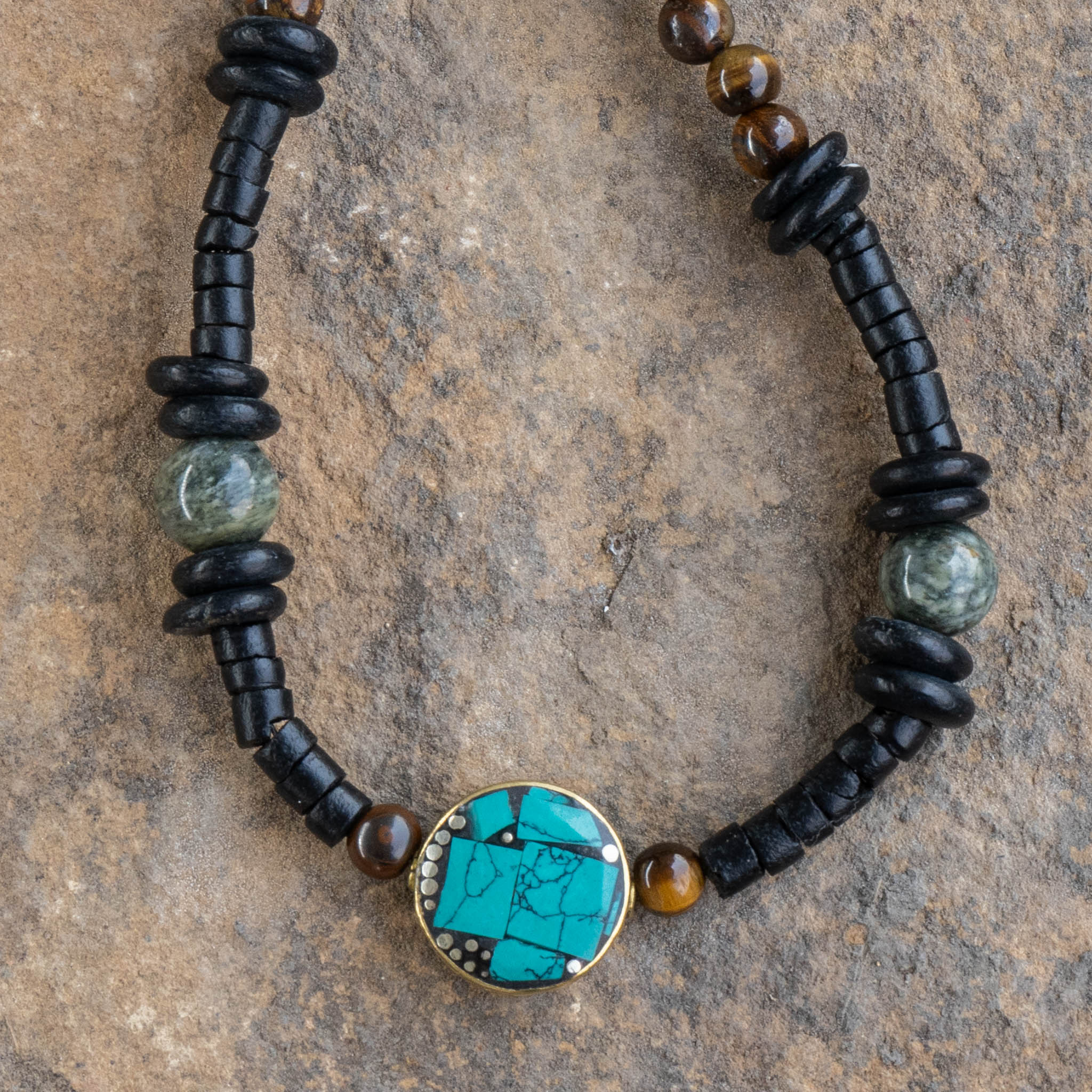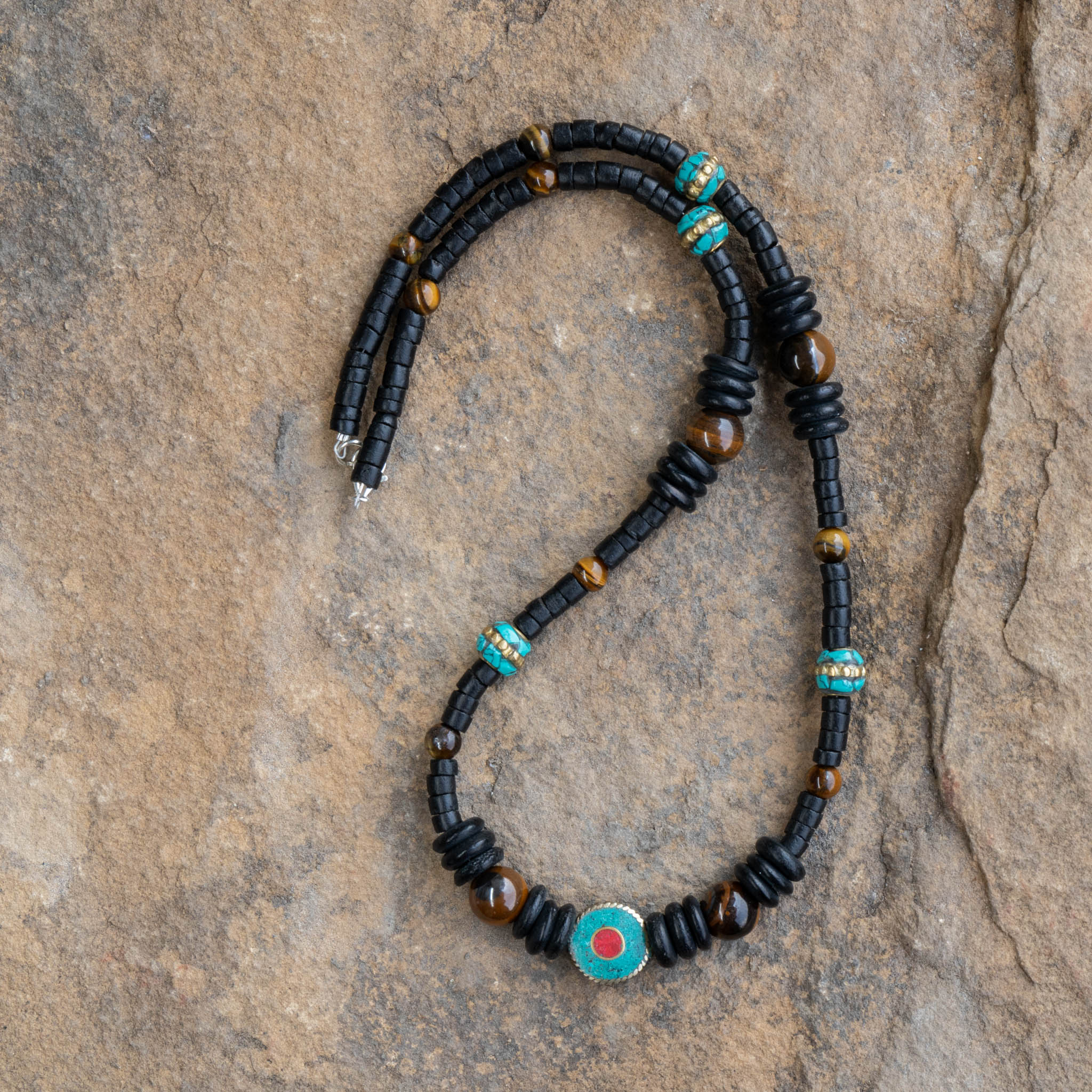 Tiger Eye, Turquoise, Coconut And Bone Necklace