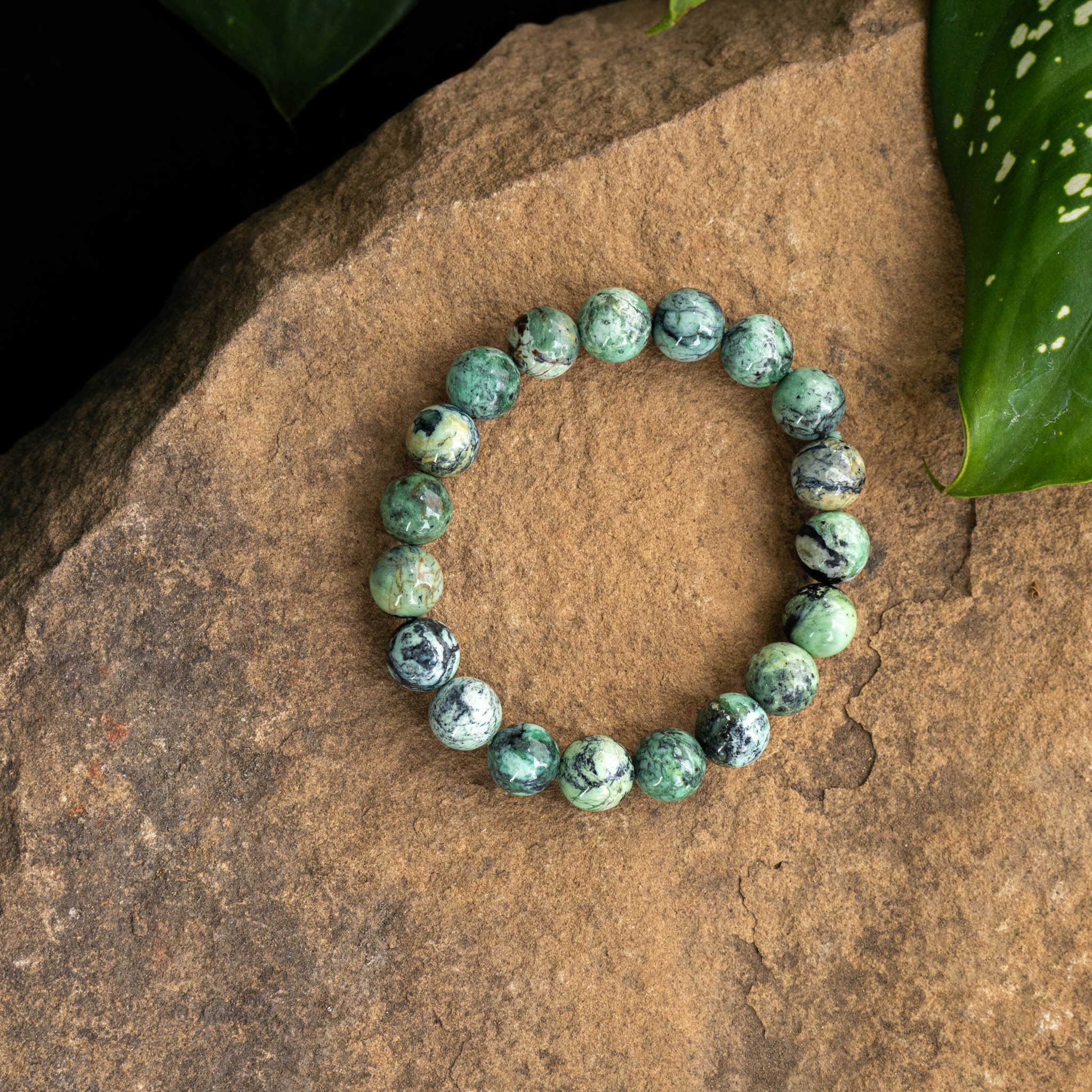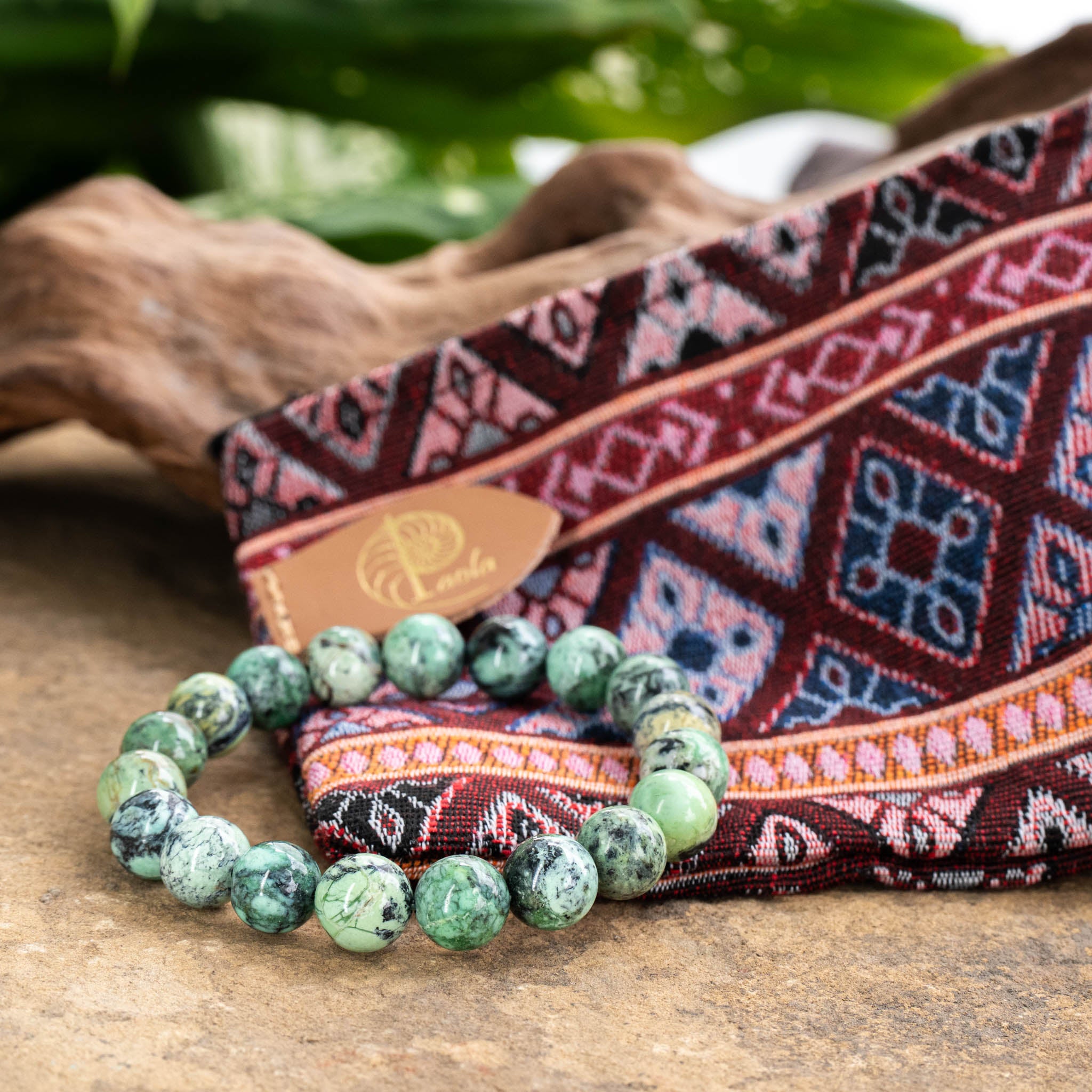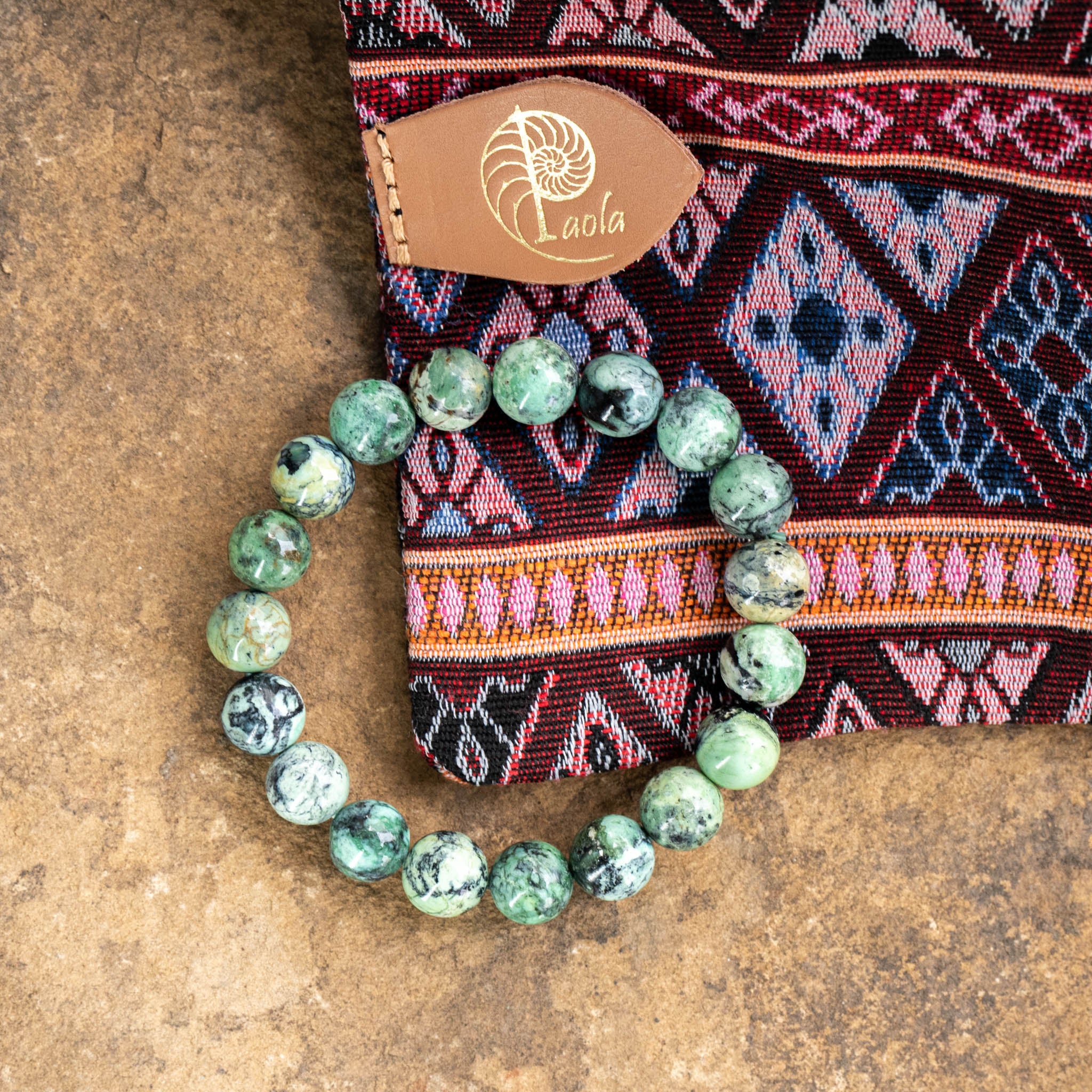 Men Leather Bracelet with Gemstones & Stainless Steel Closure / Turquoise