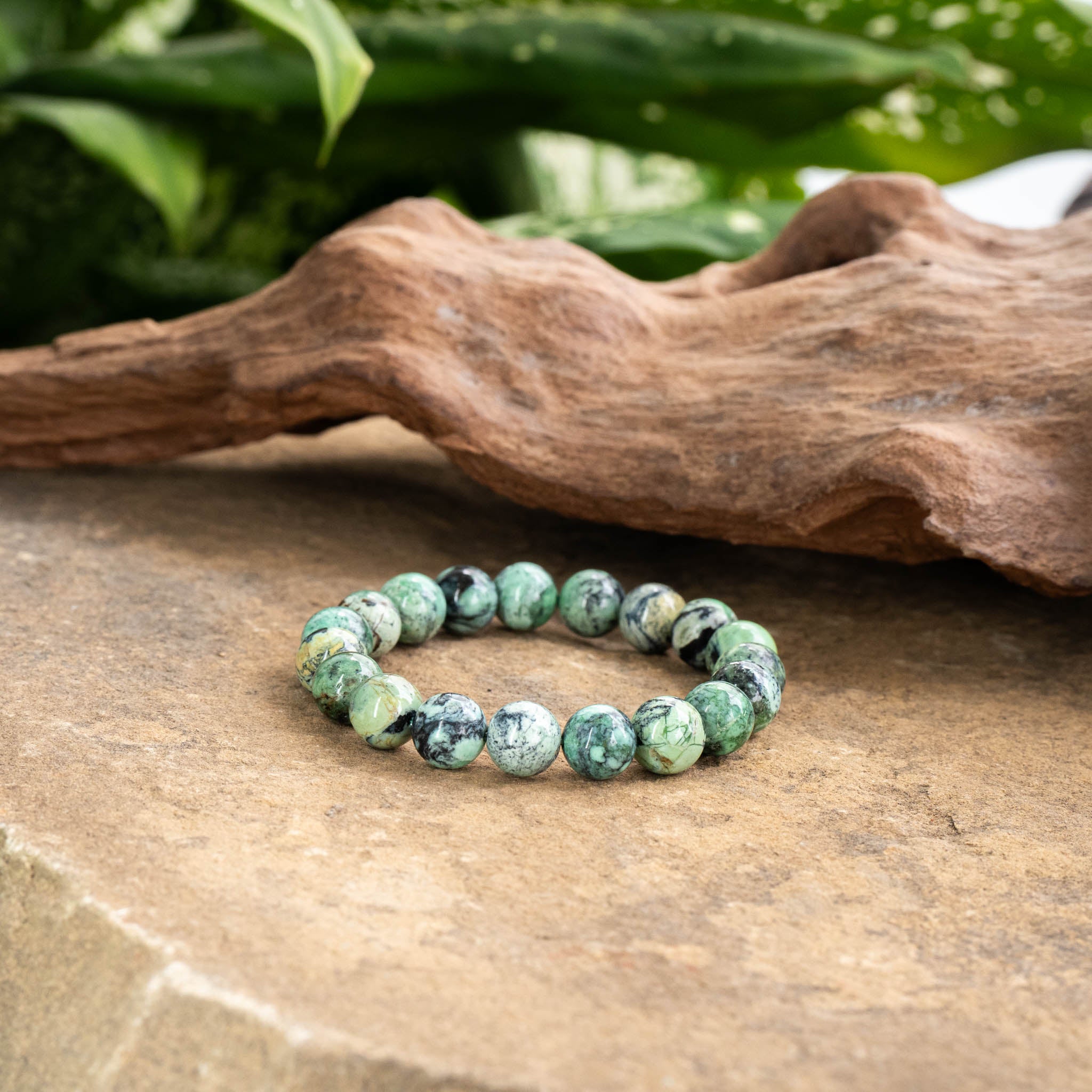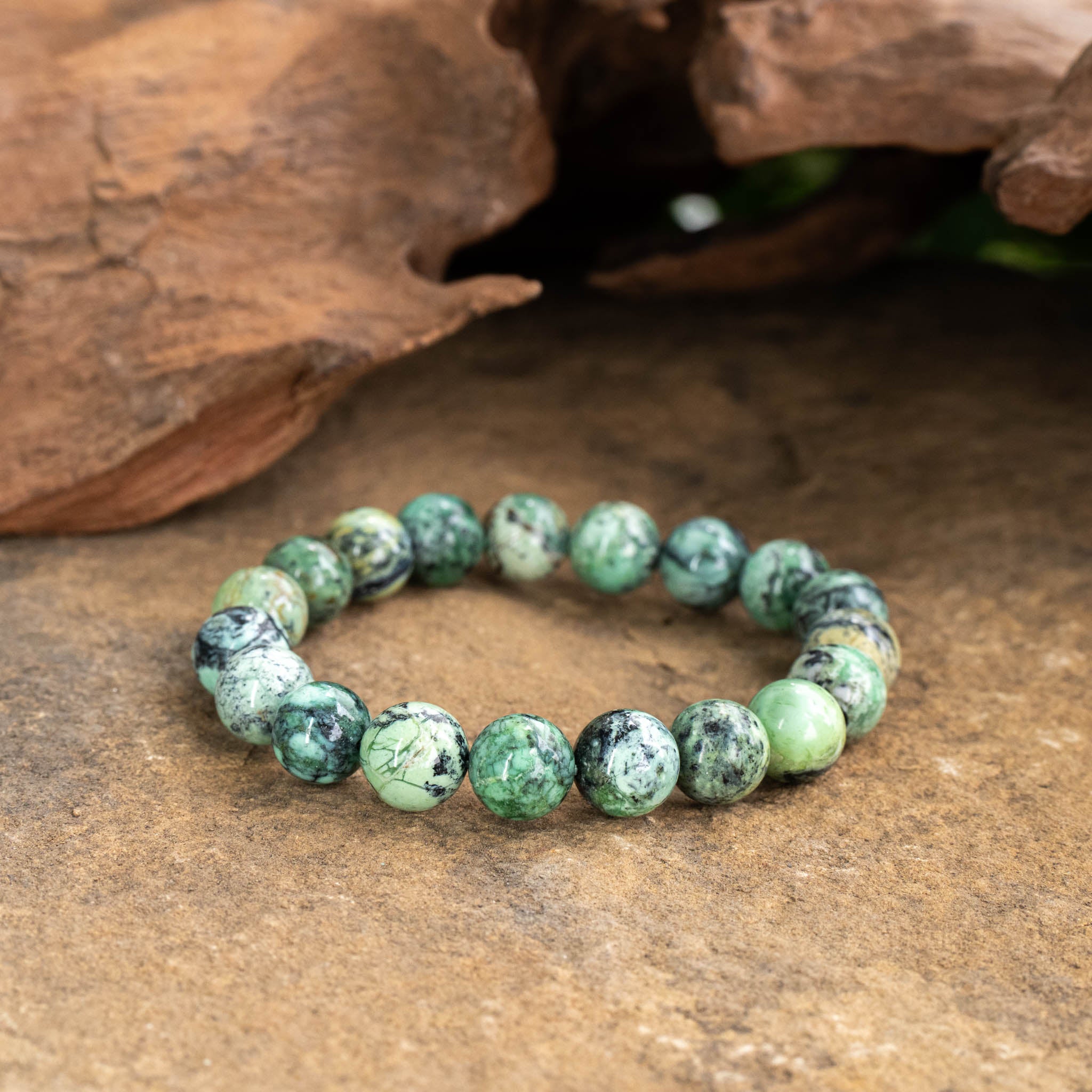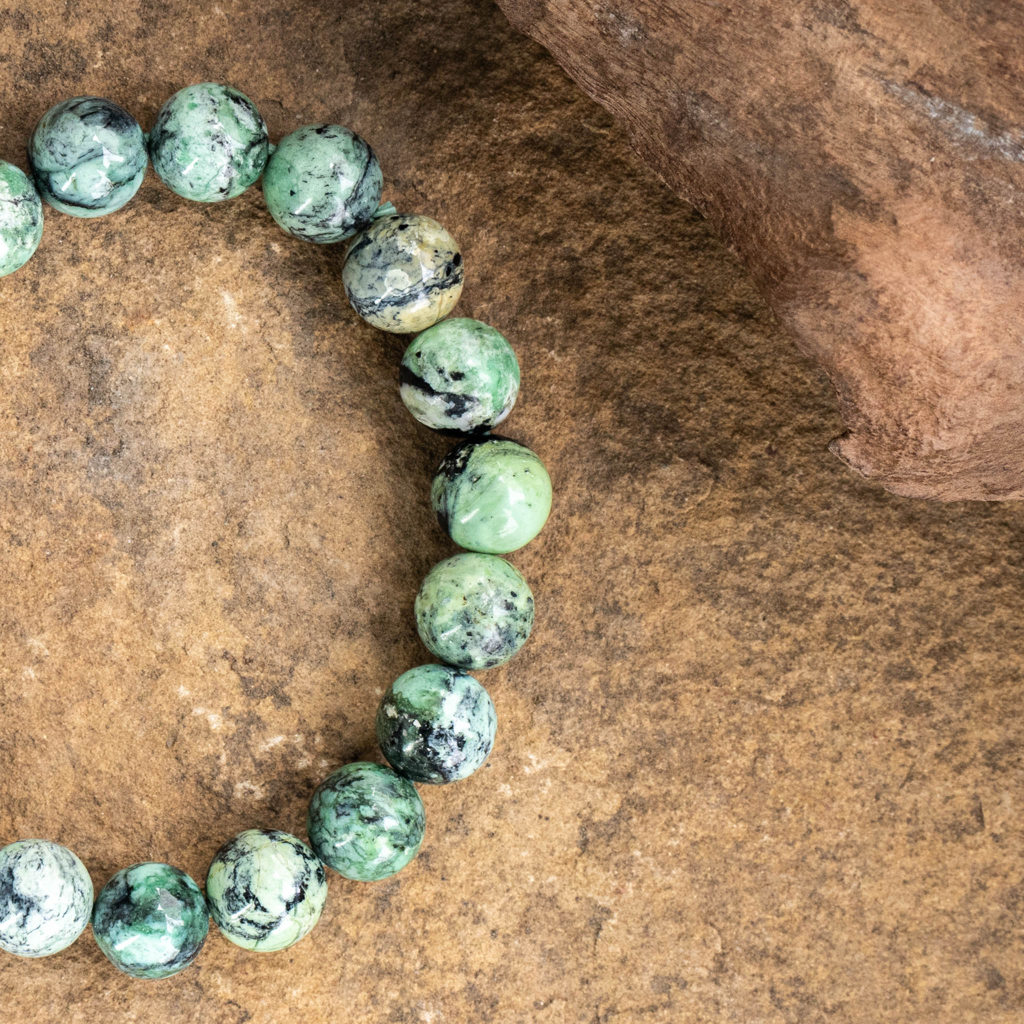 Men Leather Bracelet with Gemstones & Stainless Steel Closure / Turquoise